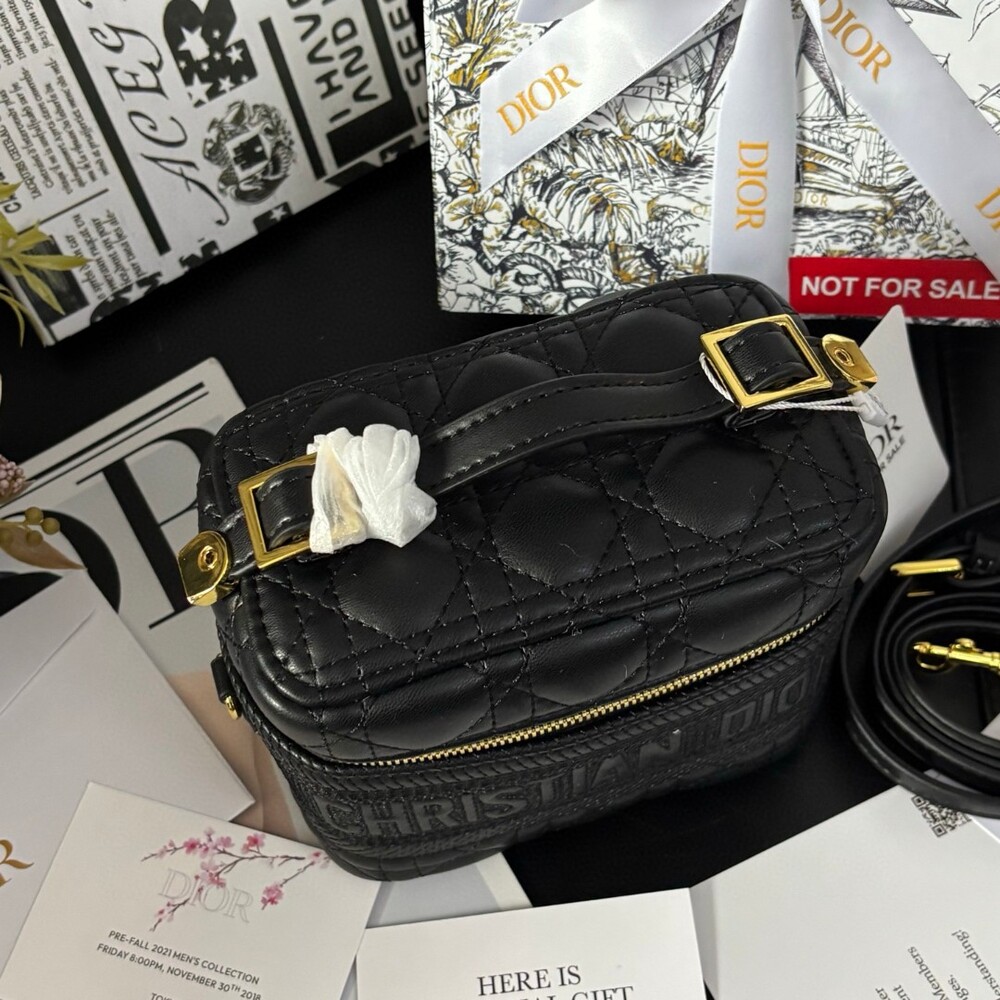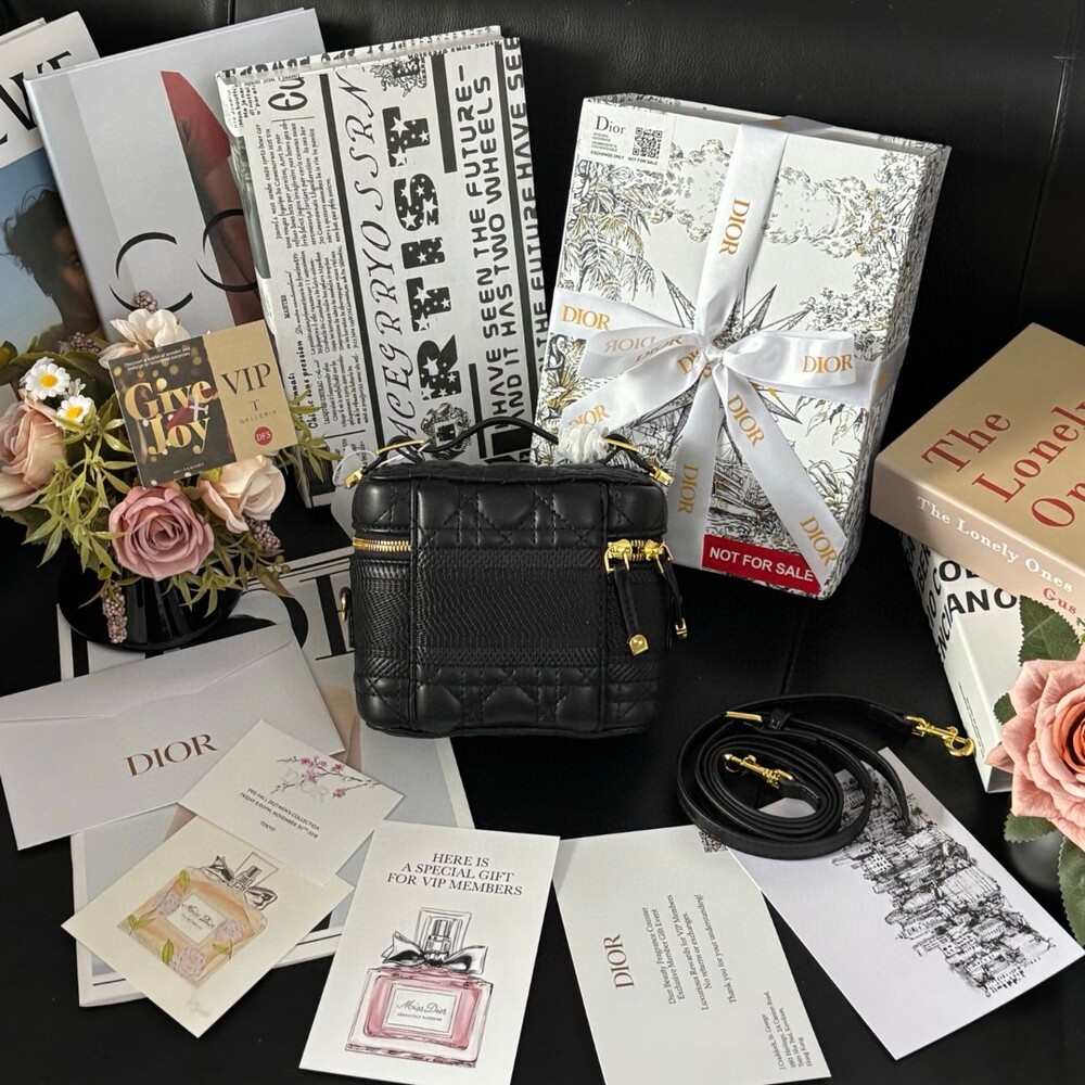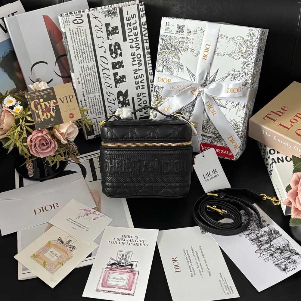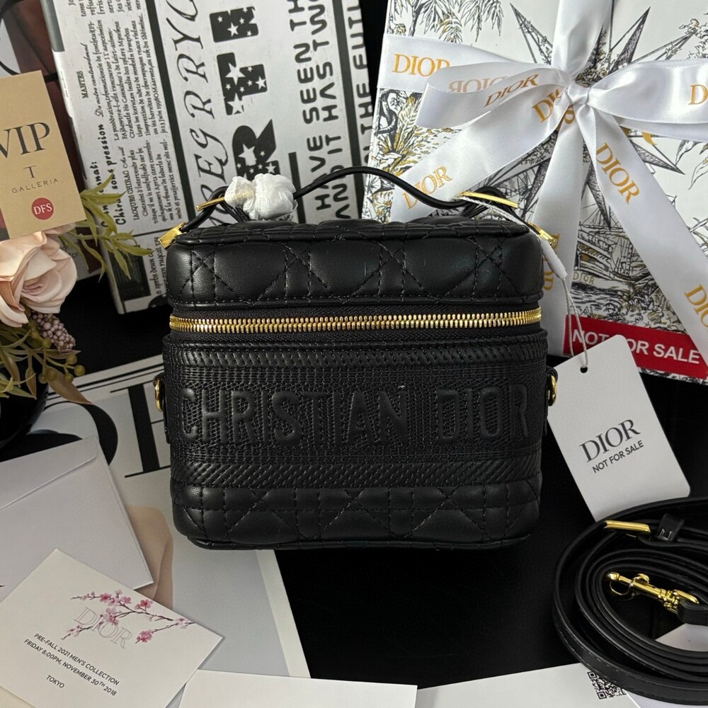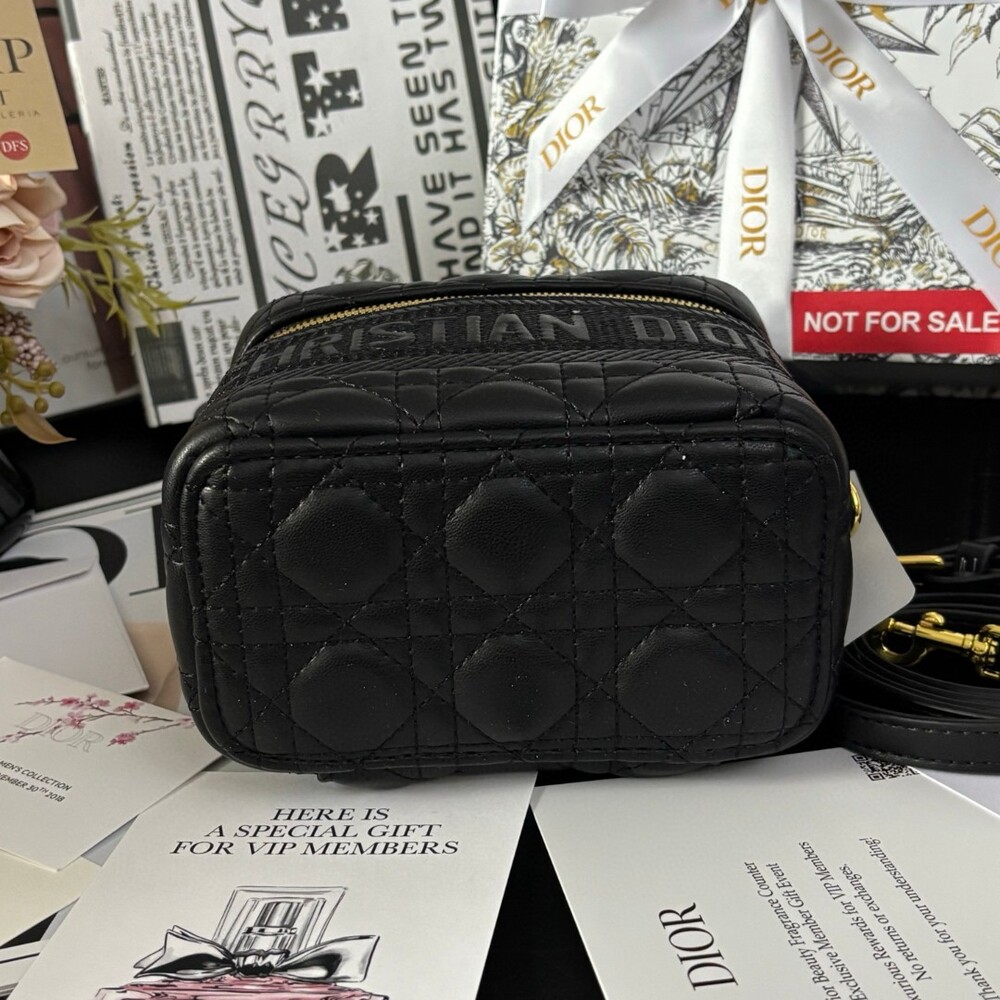 A compact vanity-style bag featuring Dior’s signature cannage quilting.