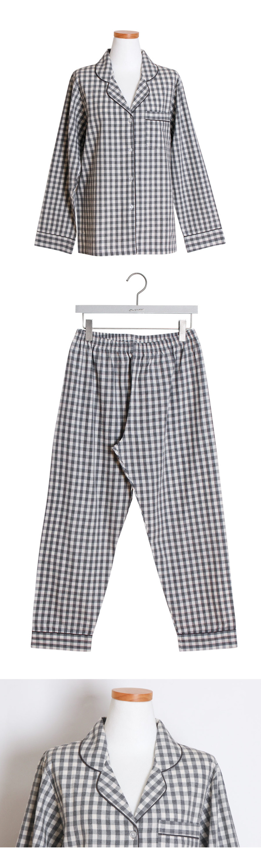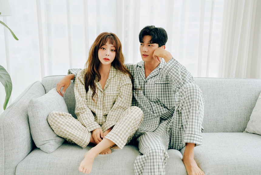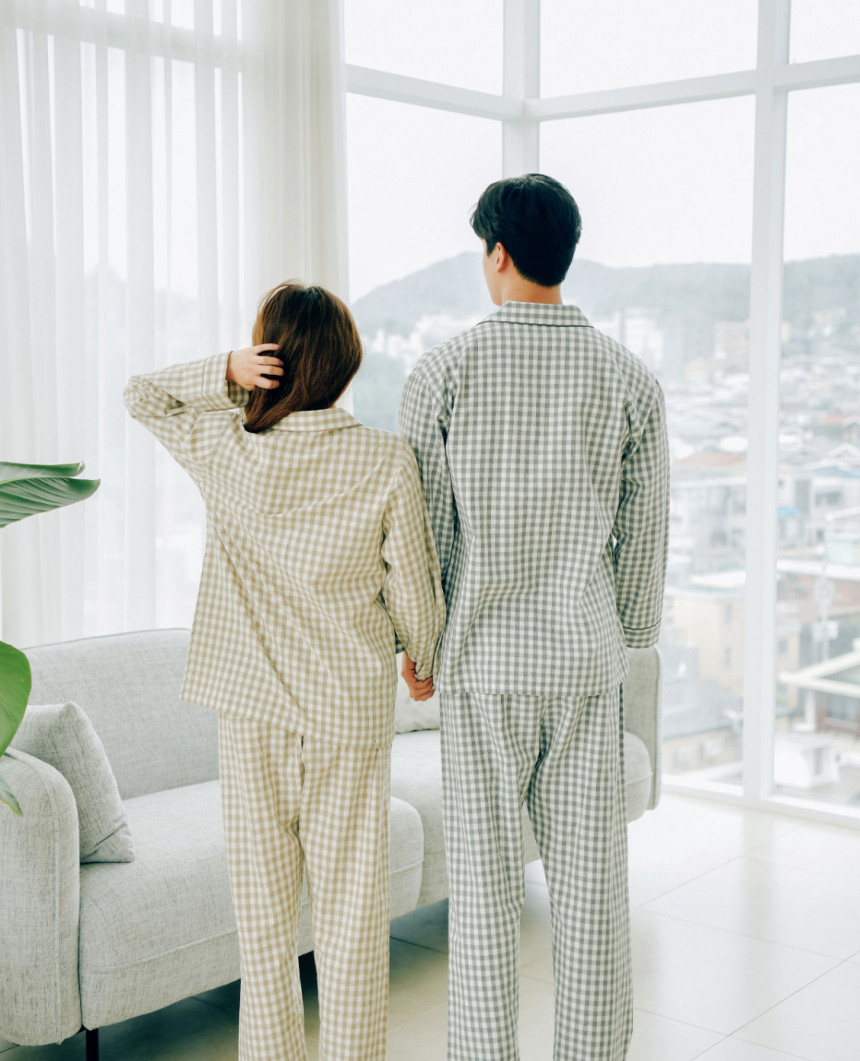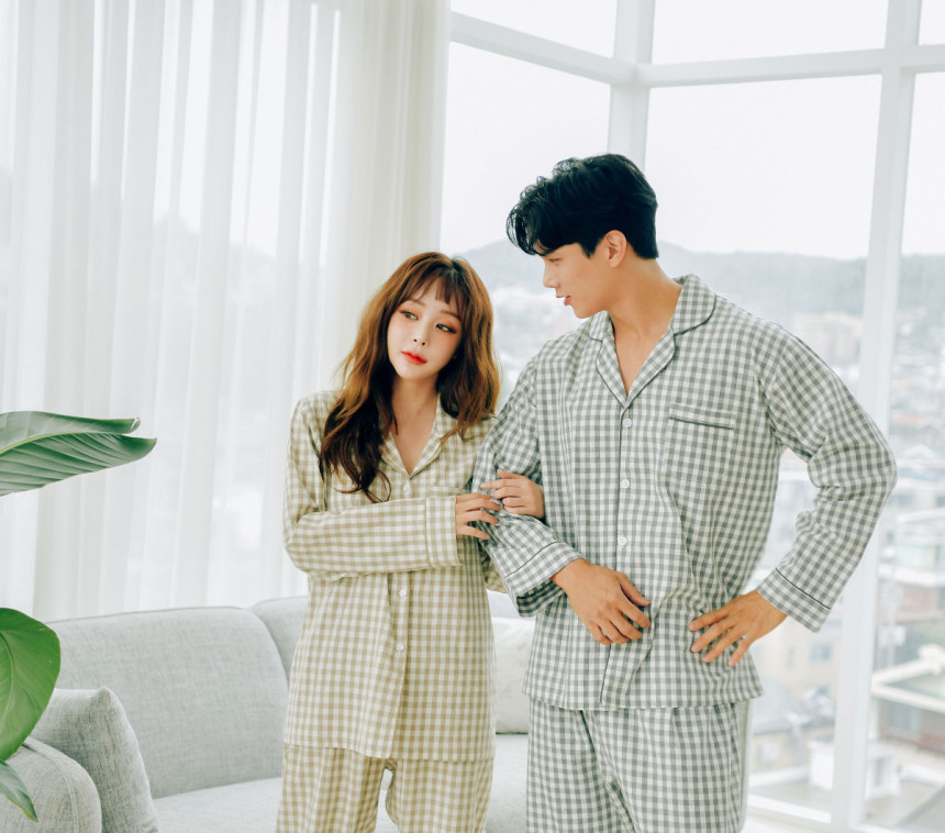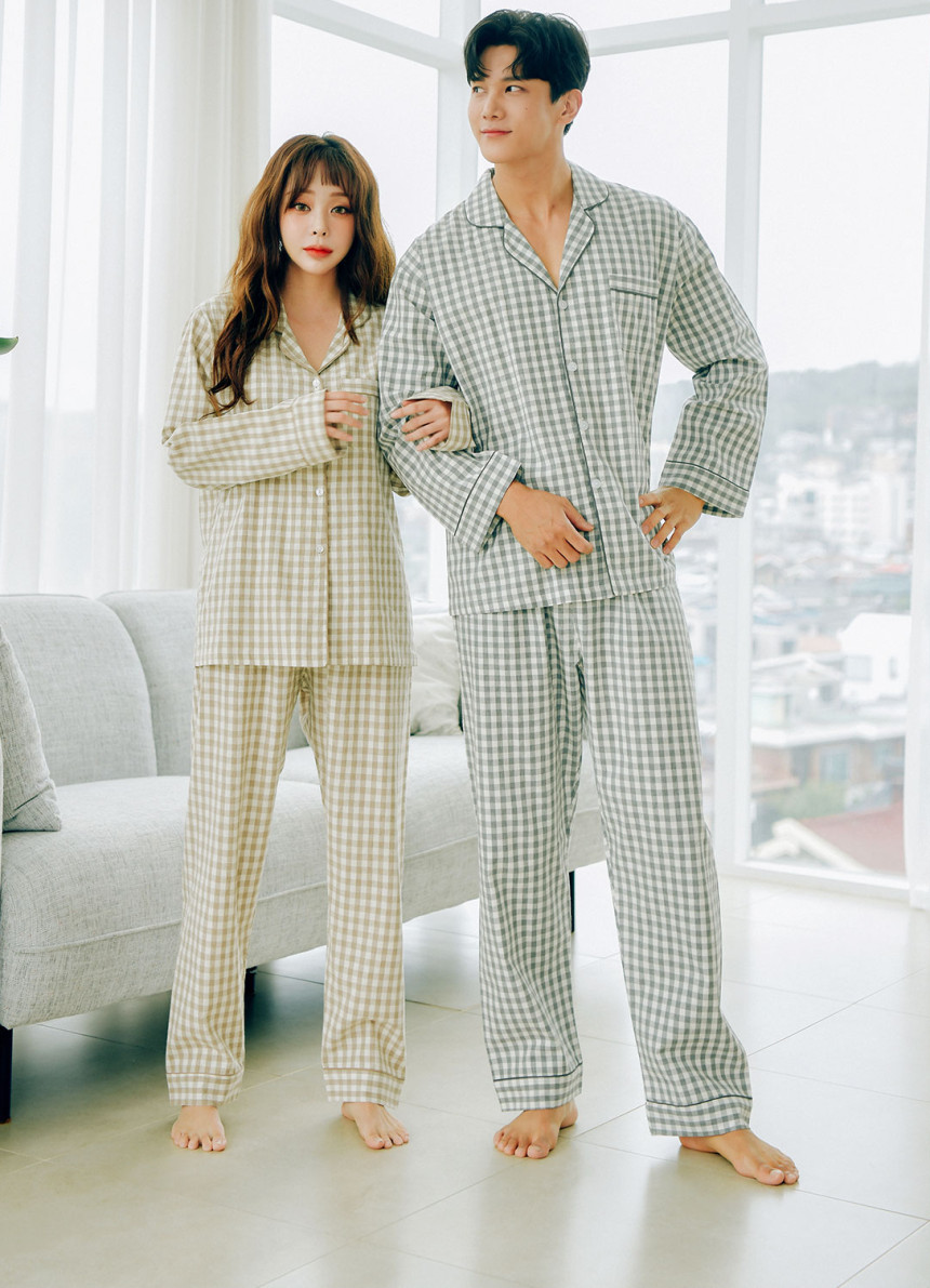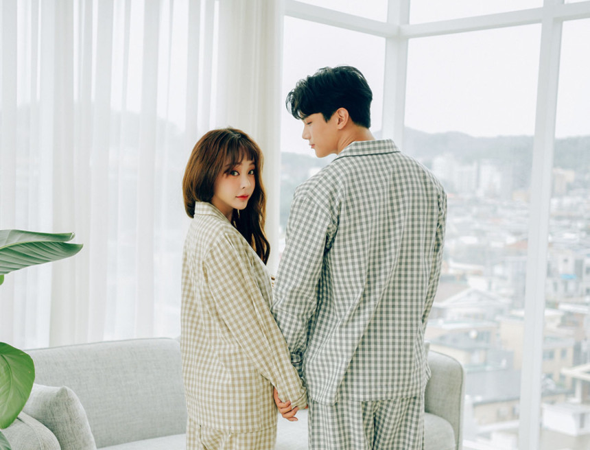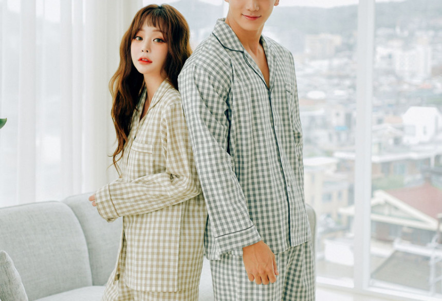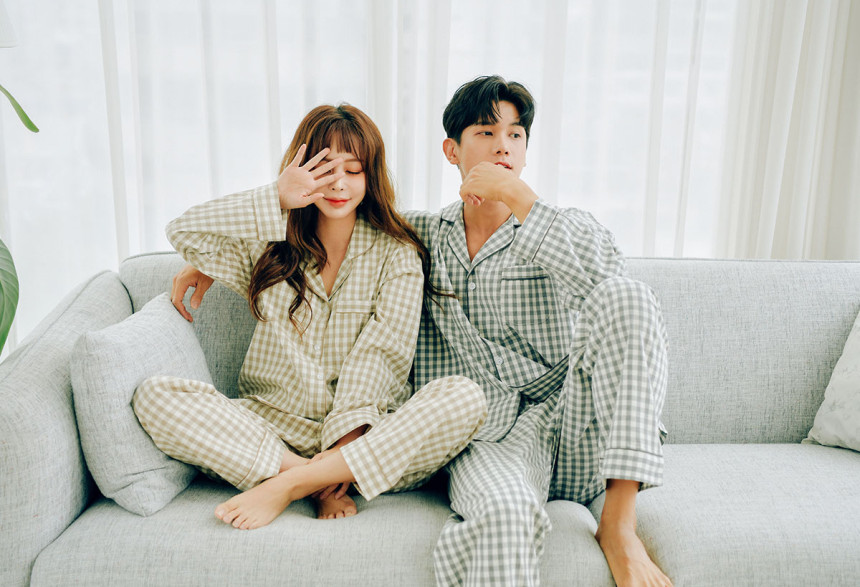 여성 남성 커플 클래식체크 투피스 수면 잠옷