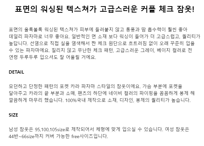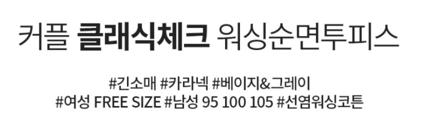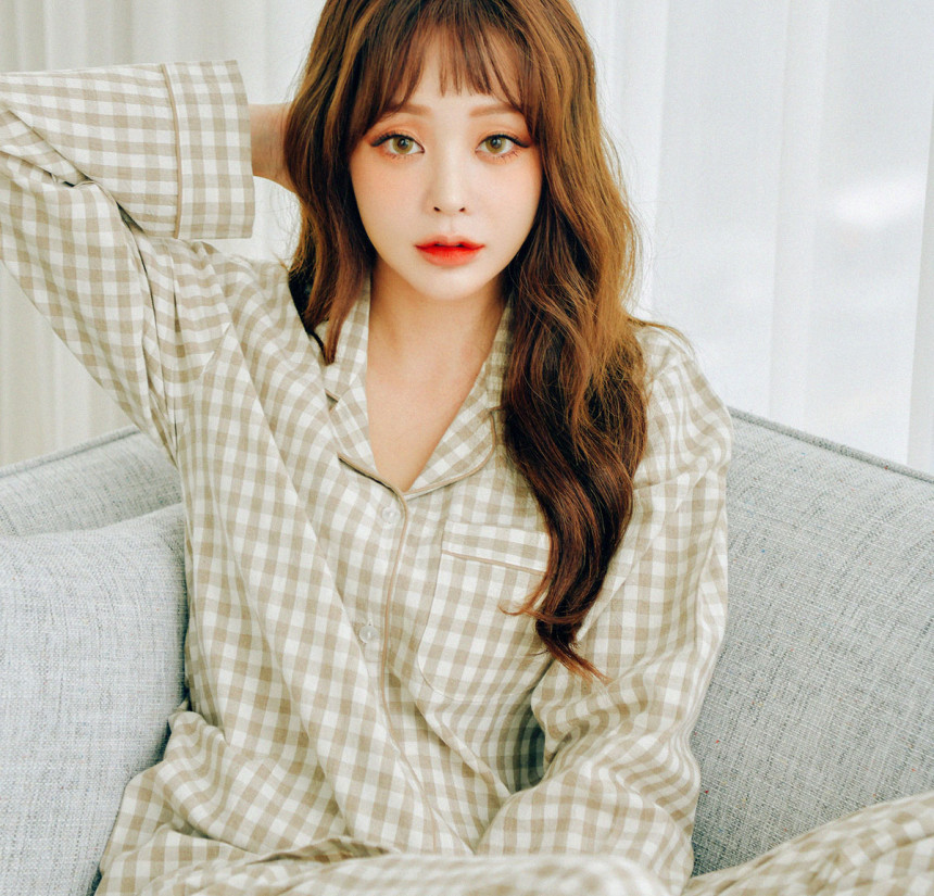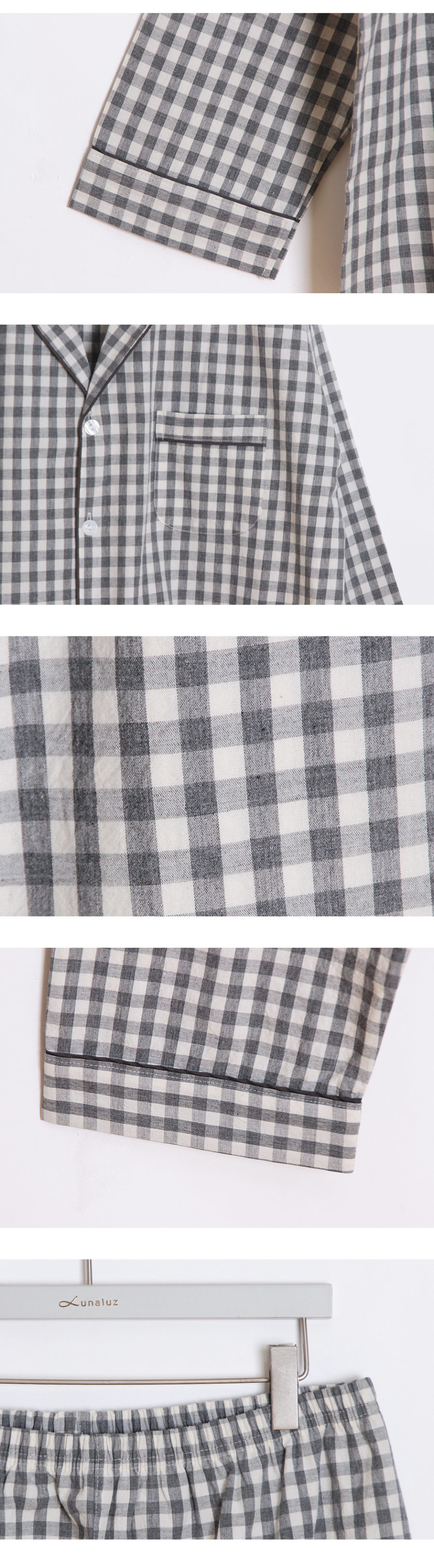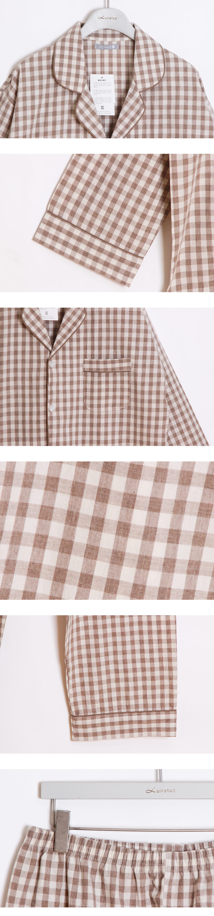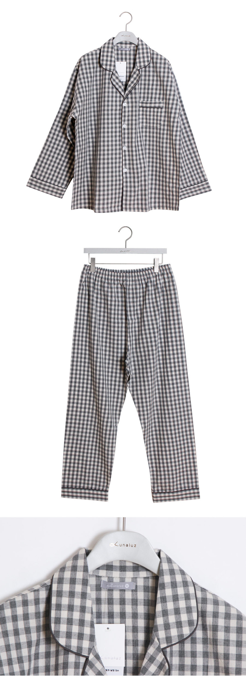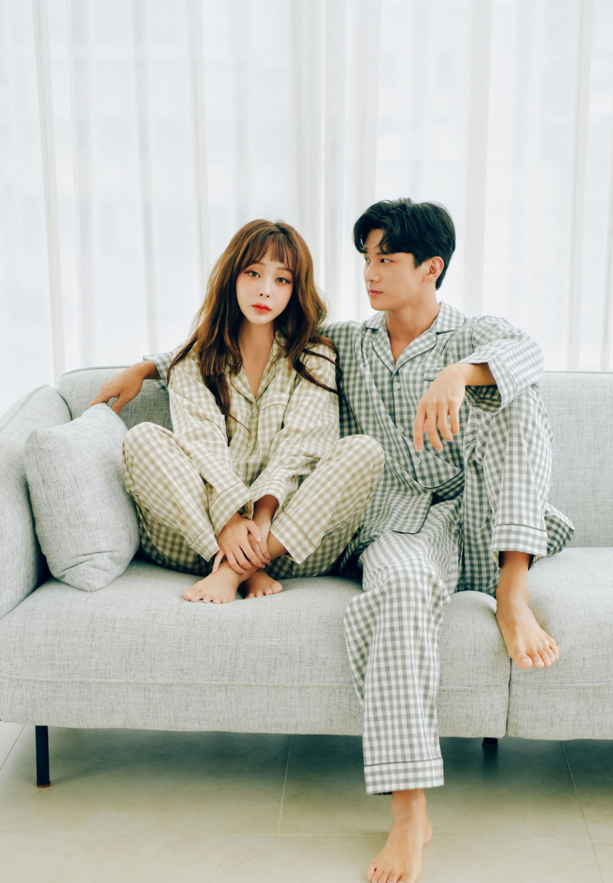 여성 남성 커플 클래식체크 투피스 수면 잠옷