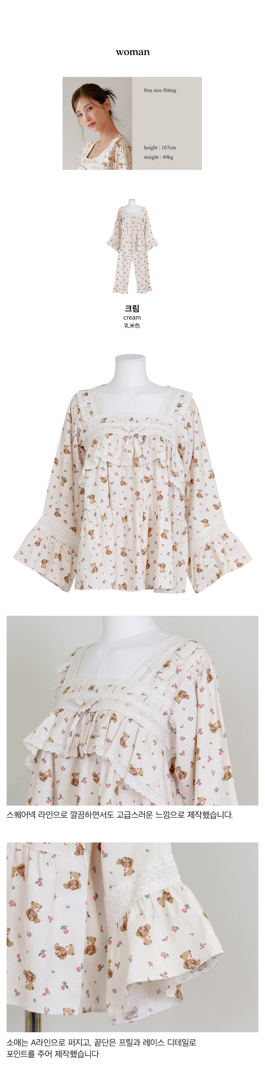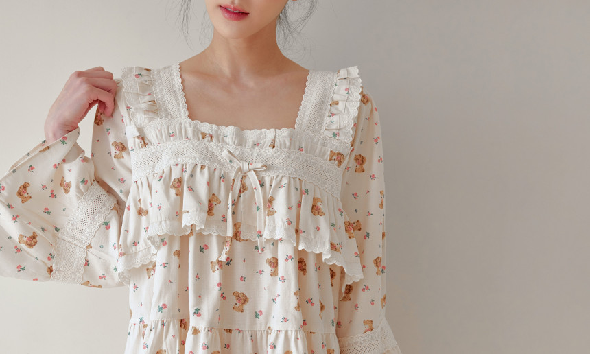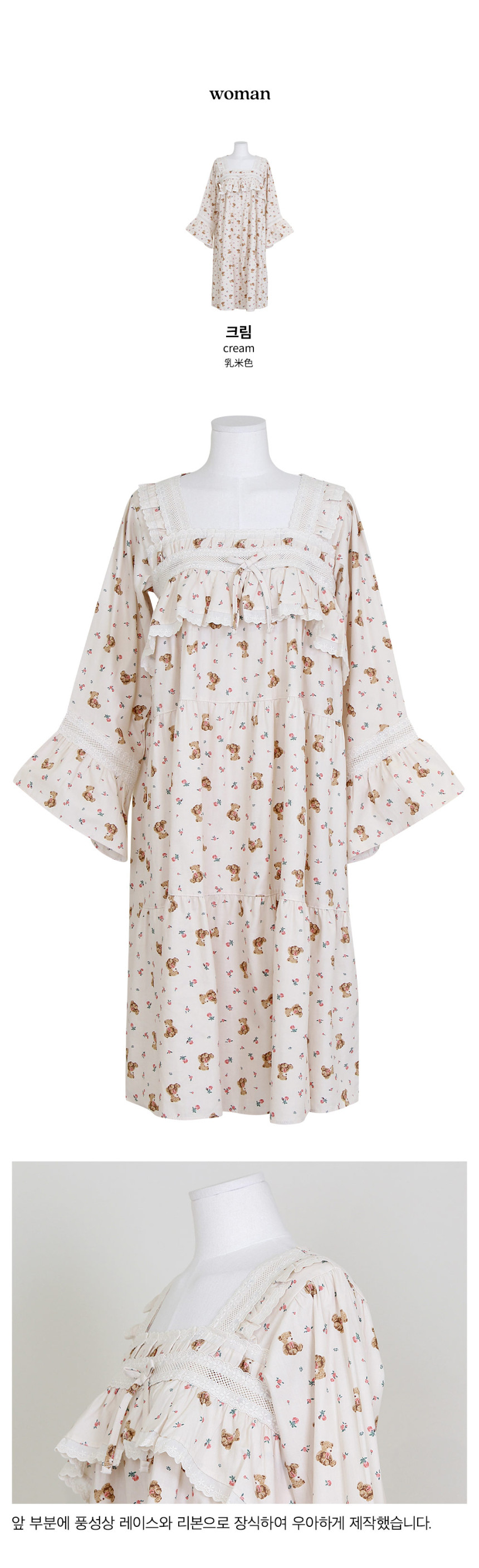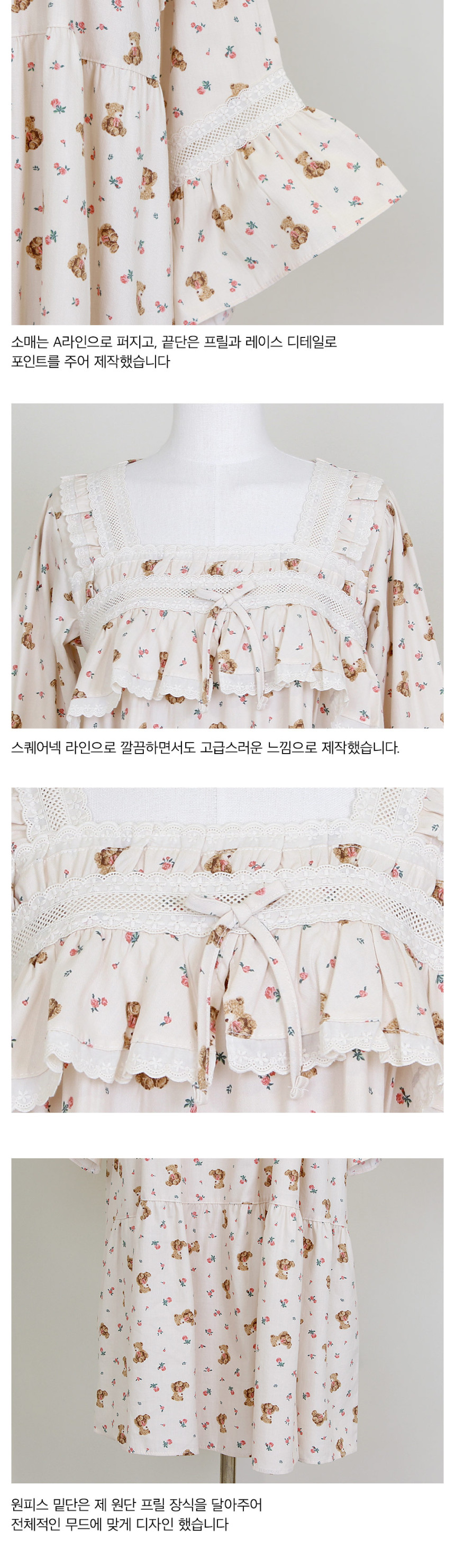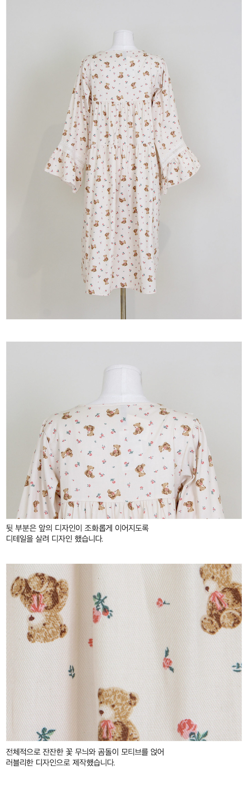 여성 플라워베어 원피스 투피스 수면 잠옷