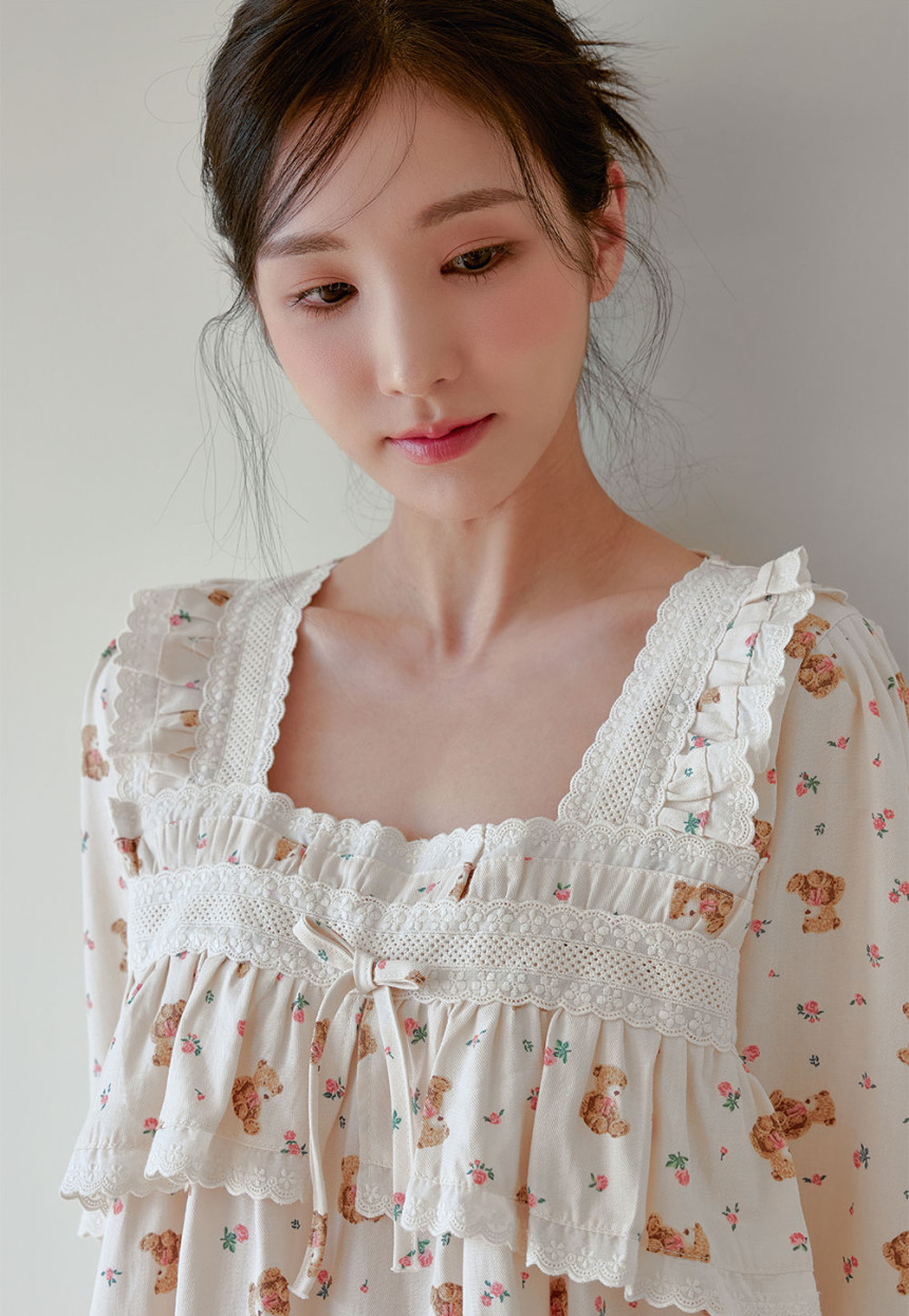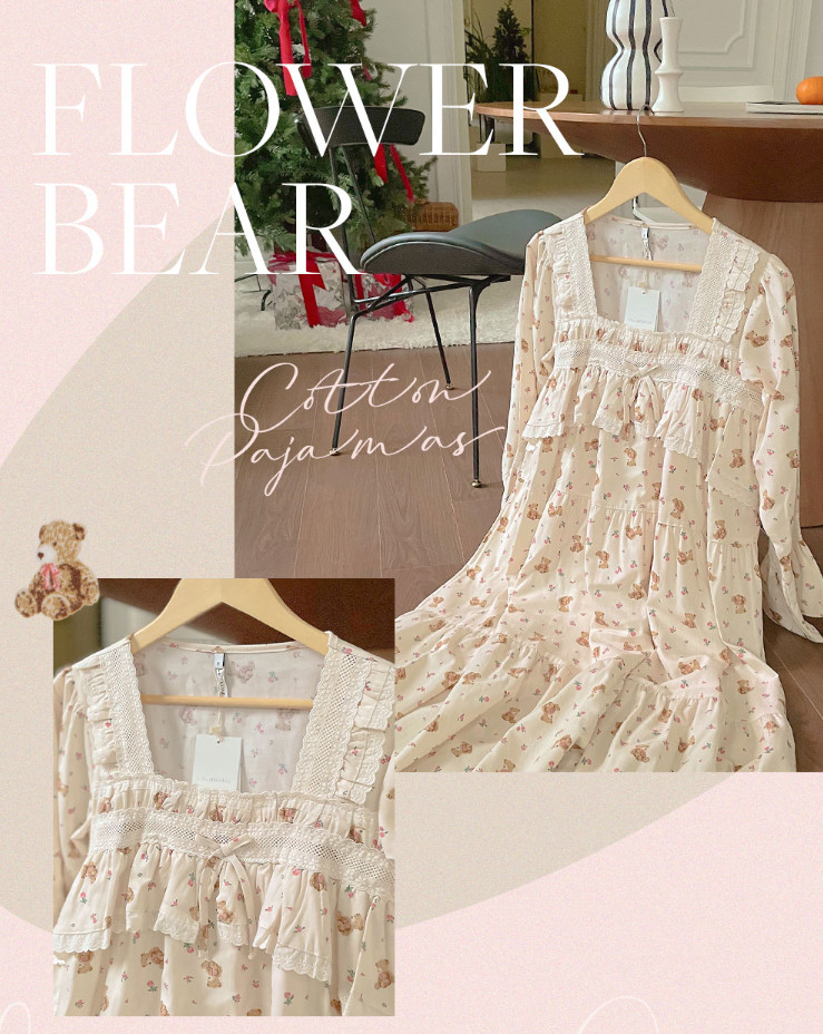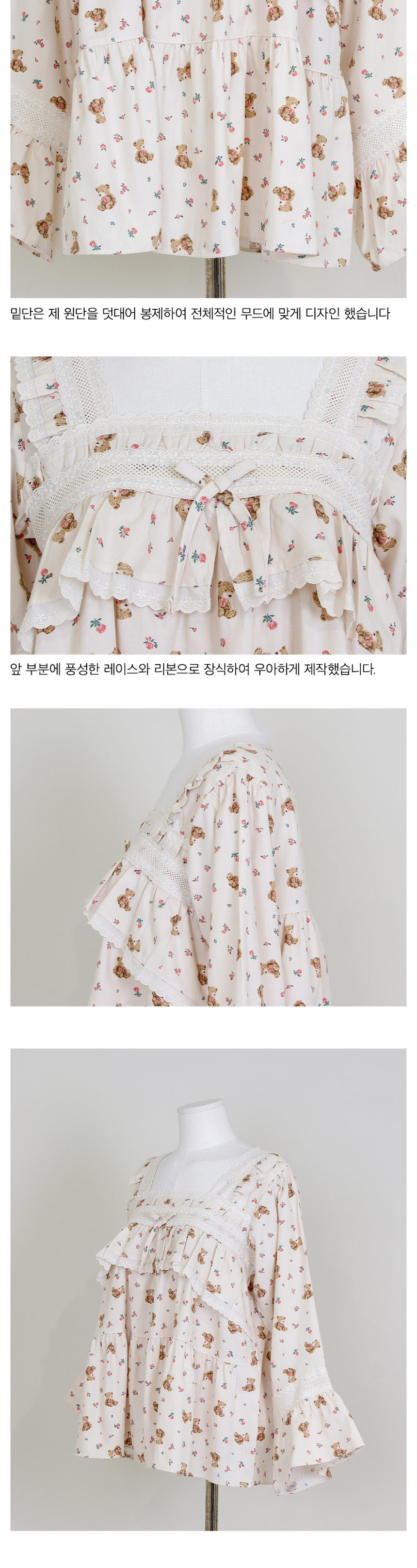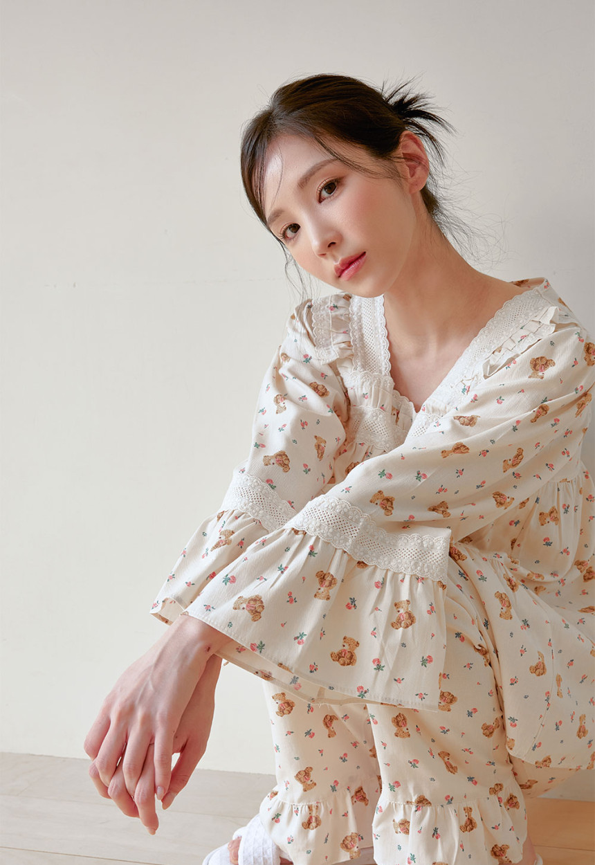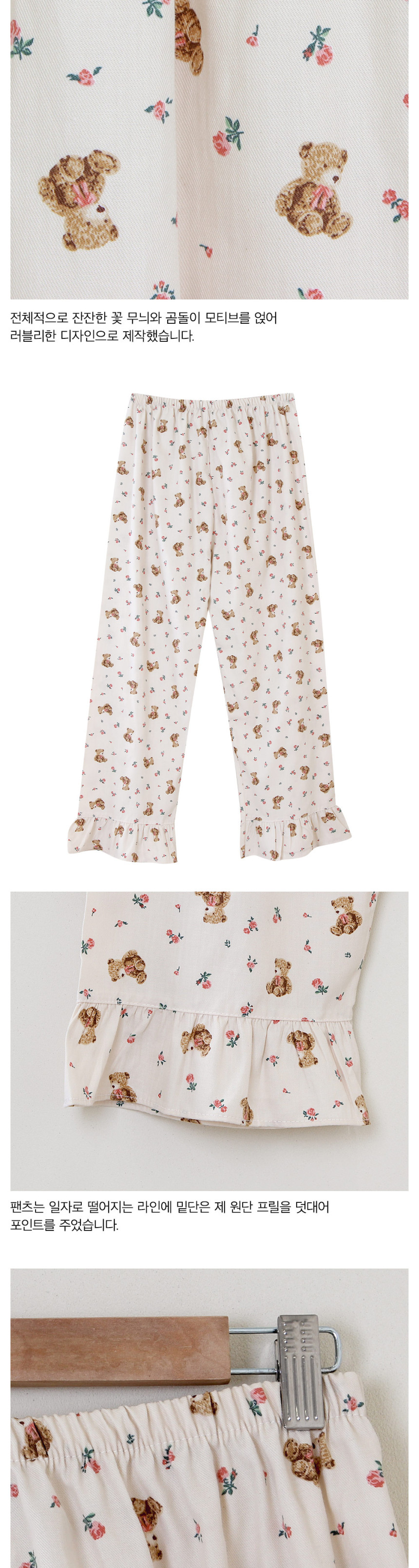 여성 플라워베어 원피스 투피스 수면 잠옷