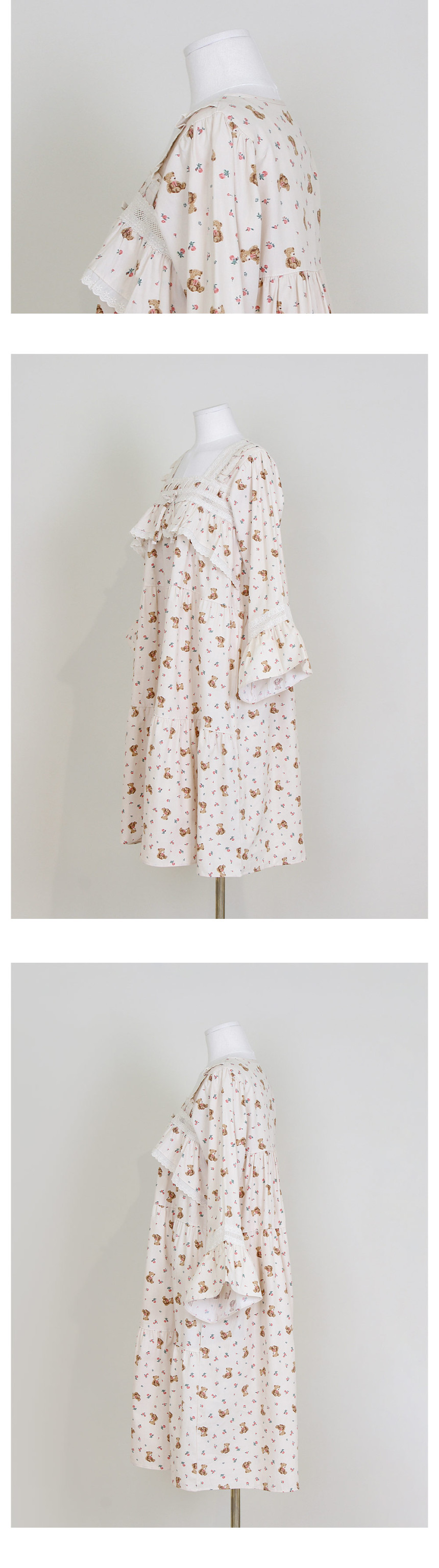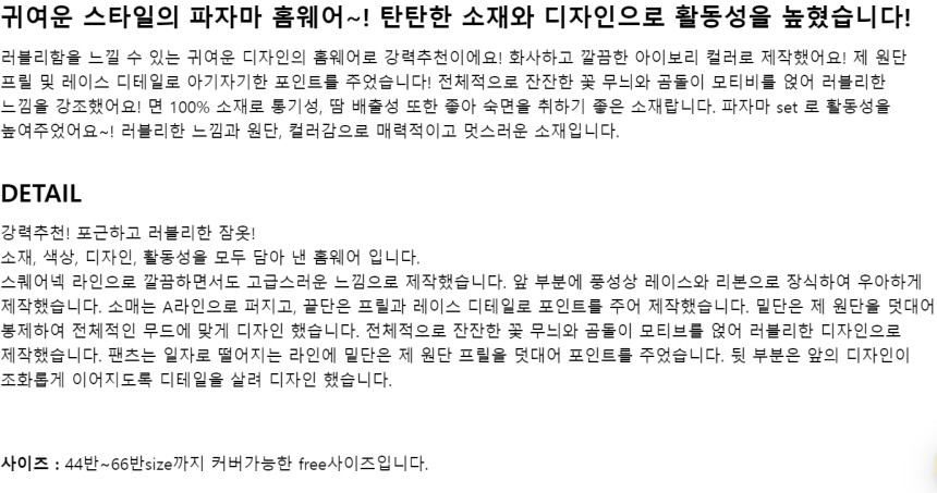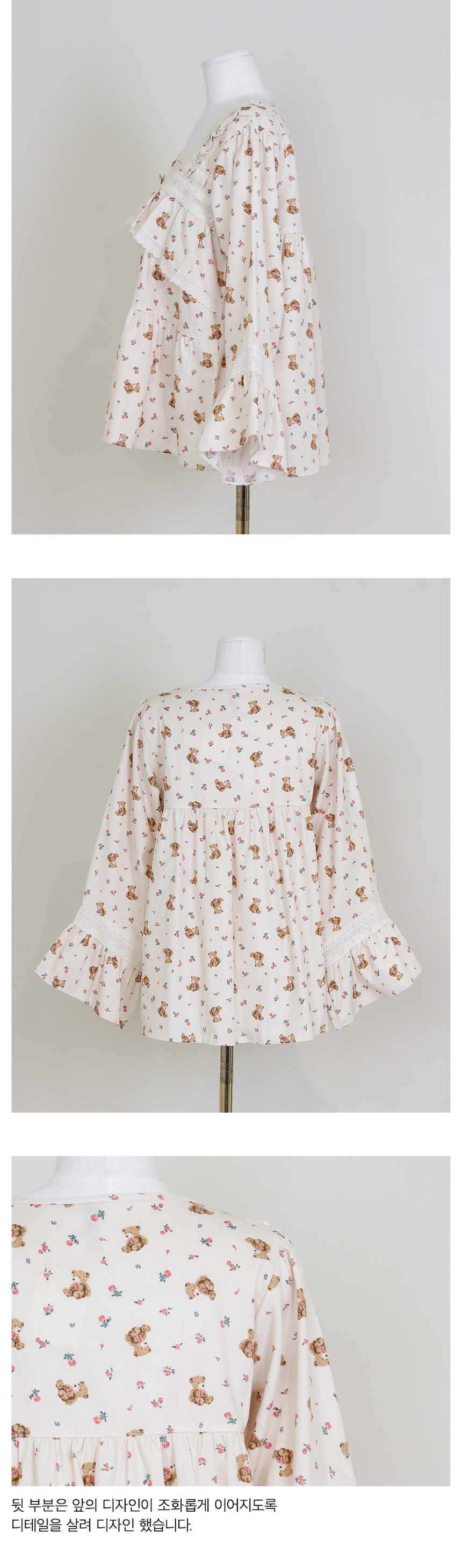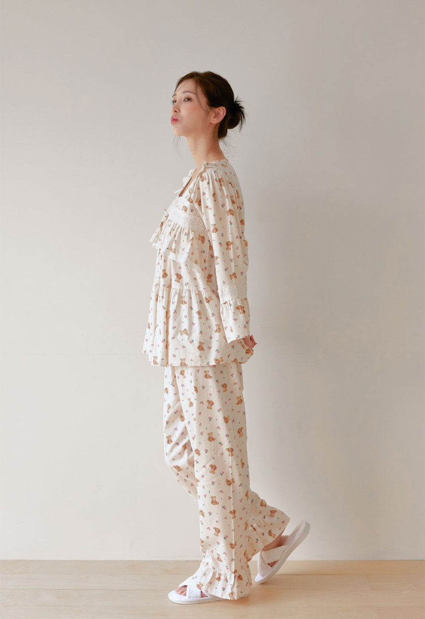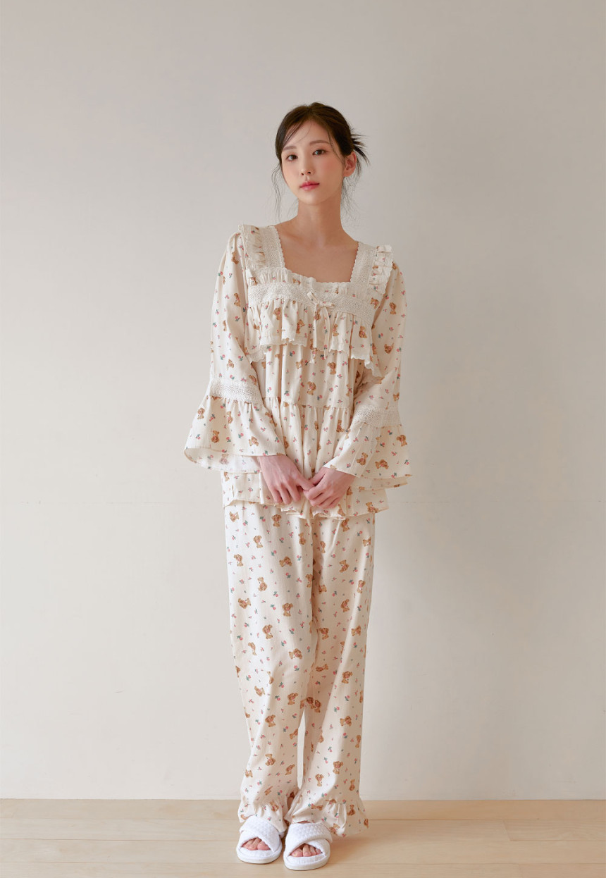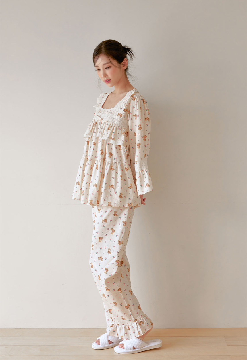 여성 플라워베어 원피스 투피스 수면 잠옷