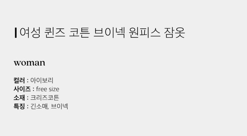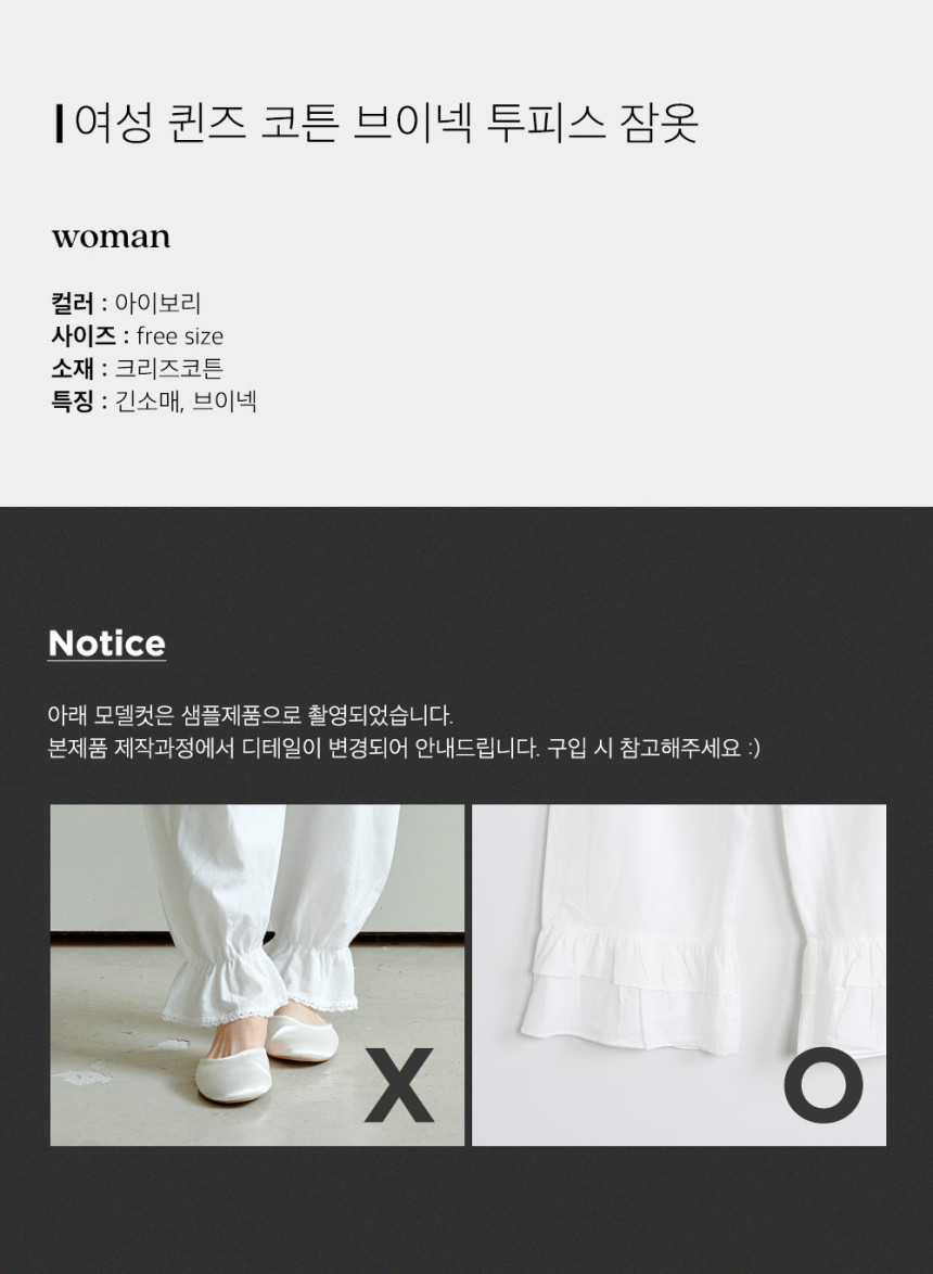 여성 퀸즈 원피스 투피스 수면 잠옷