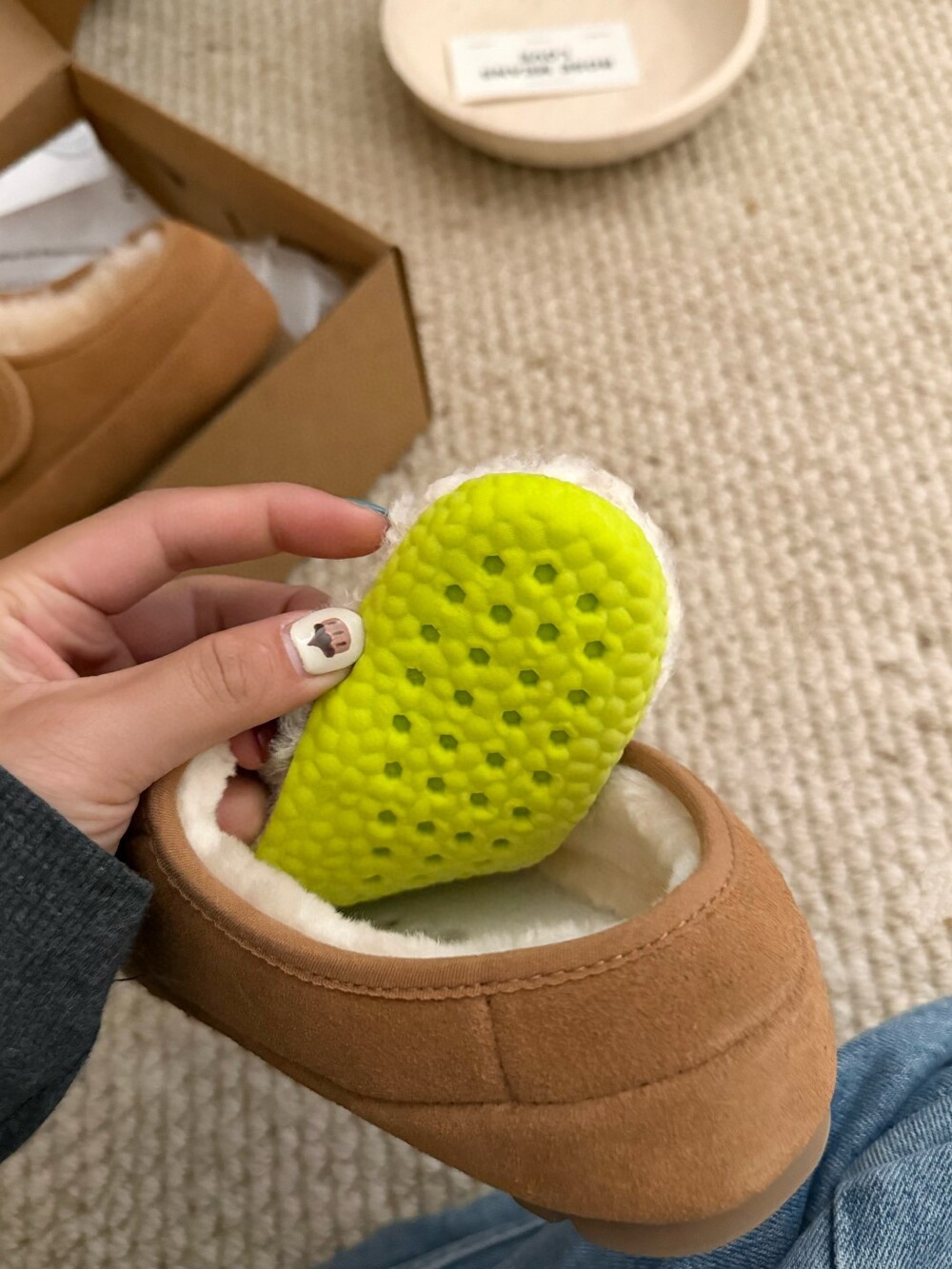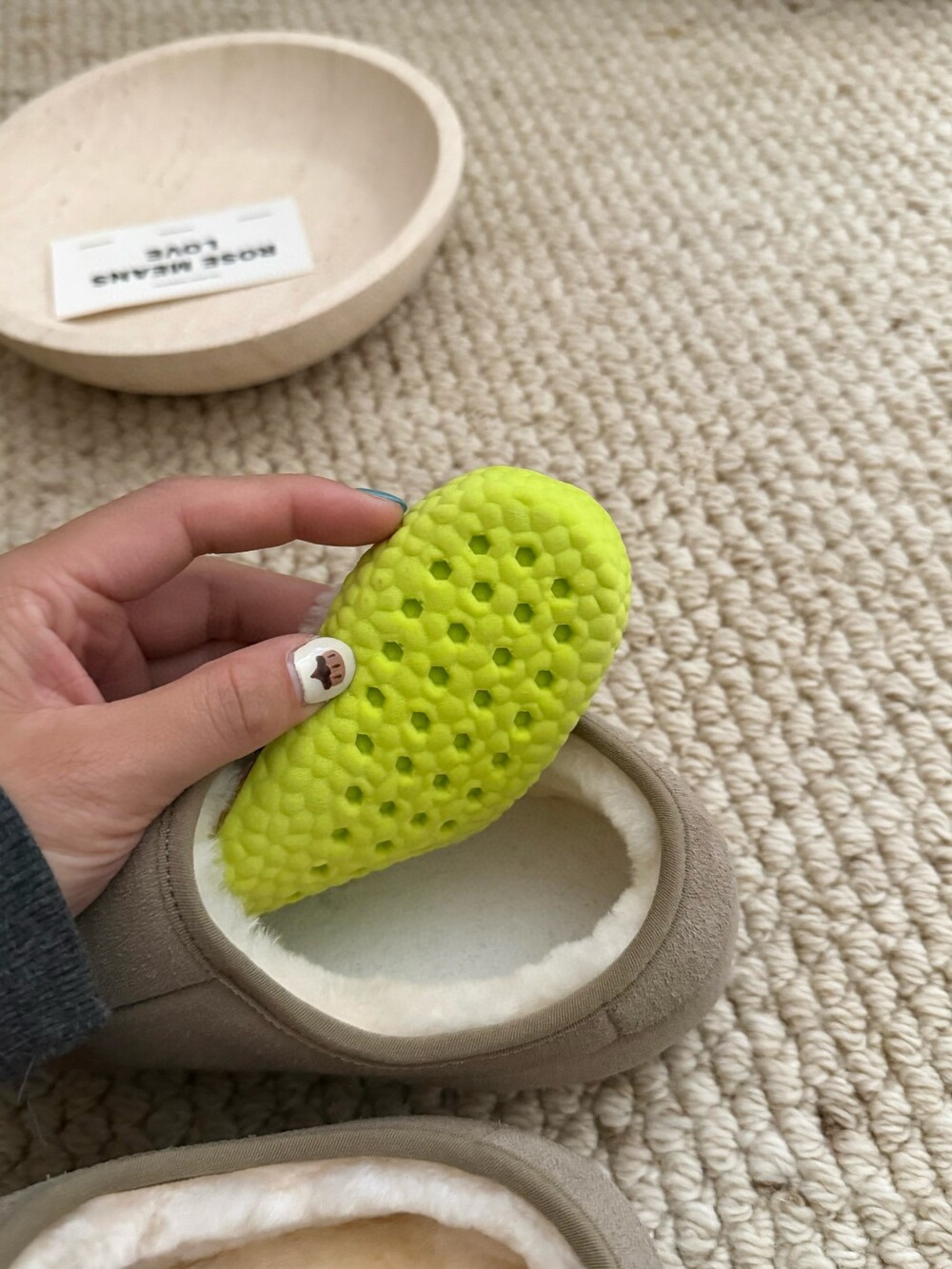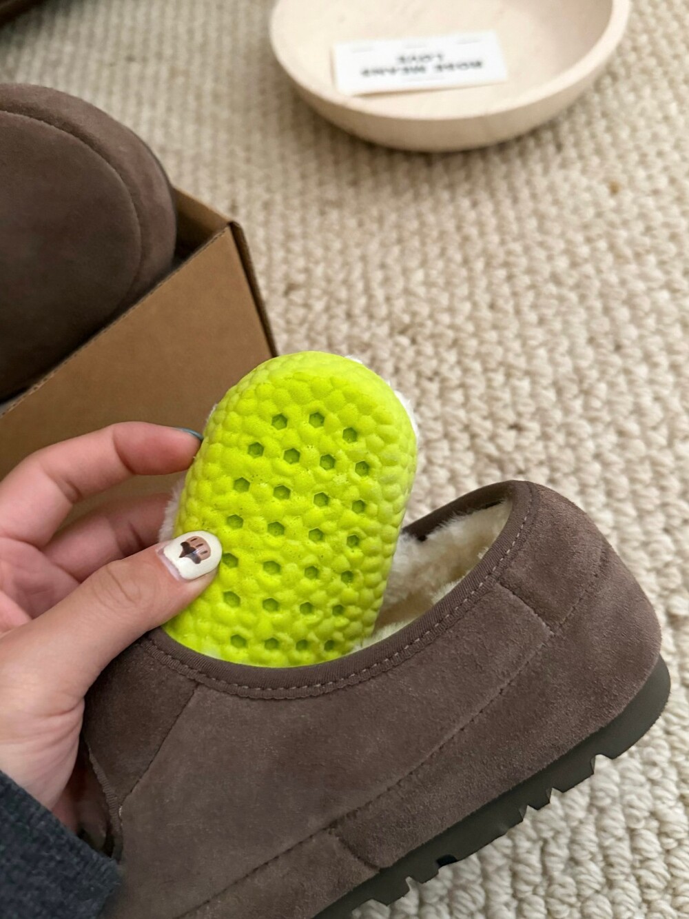 두툼한 퍼 안감으로 맨발에도 포근하고,