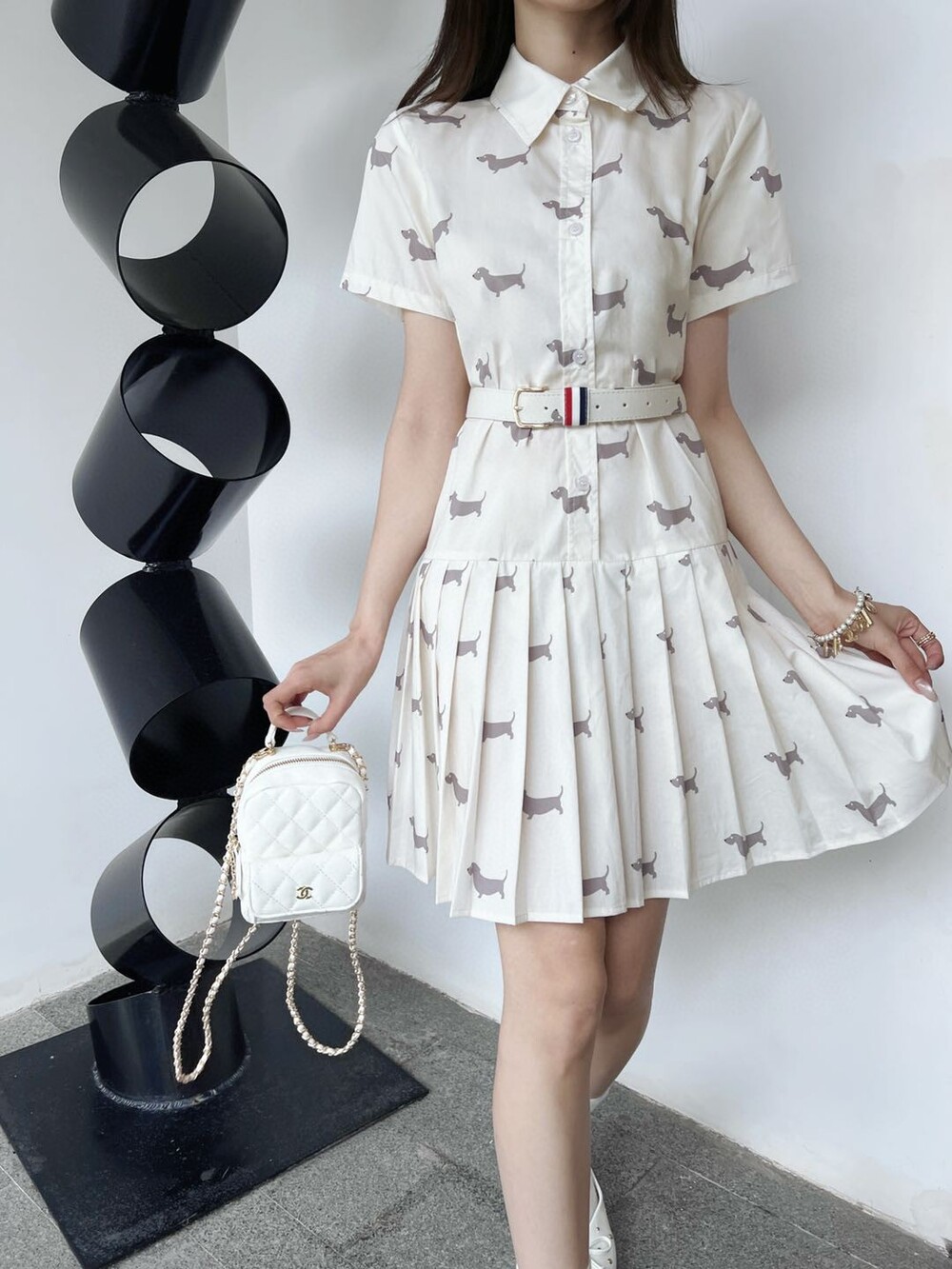 P. TB 퍼피 셔츠 플리츠 원피스