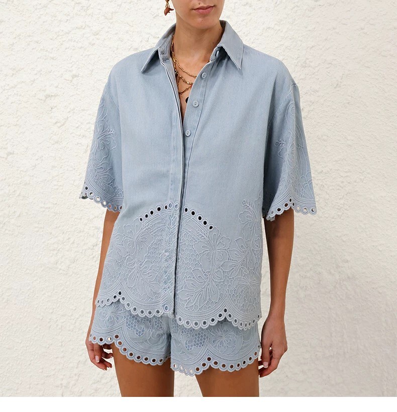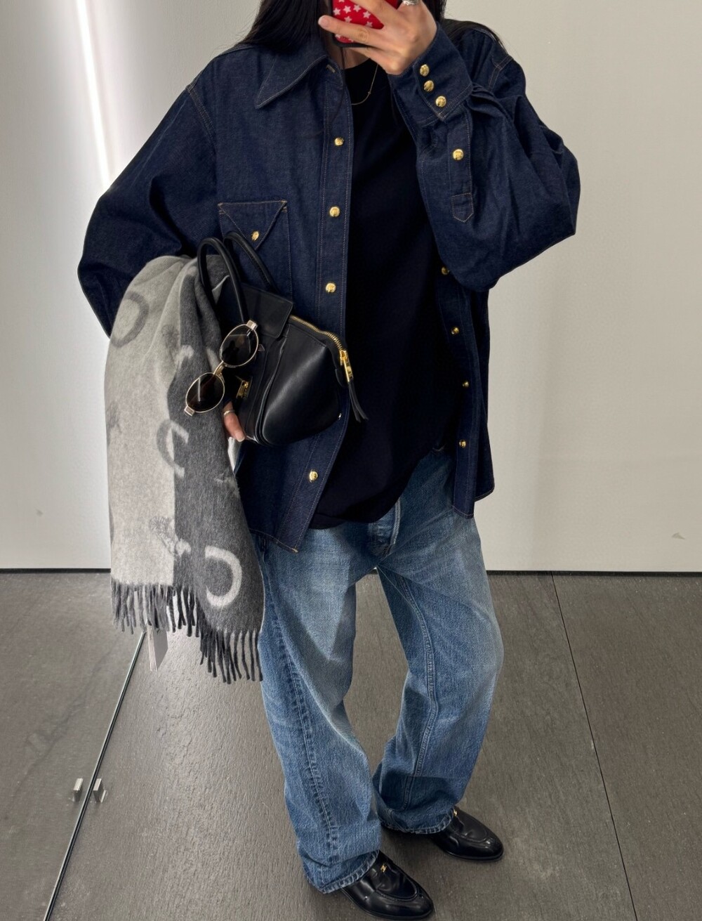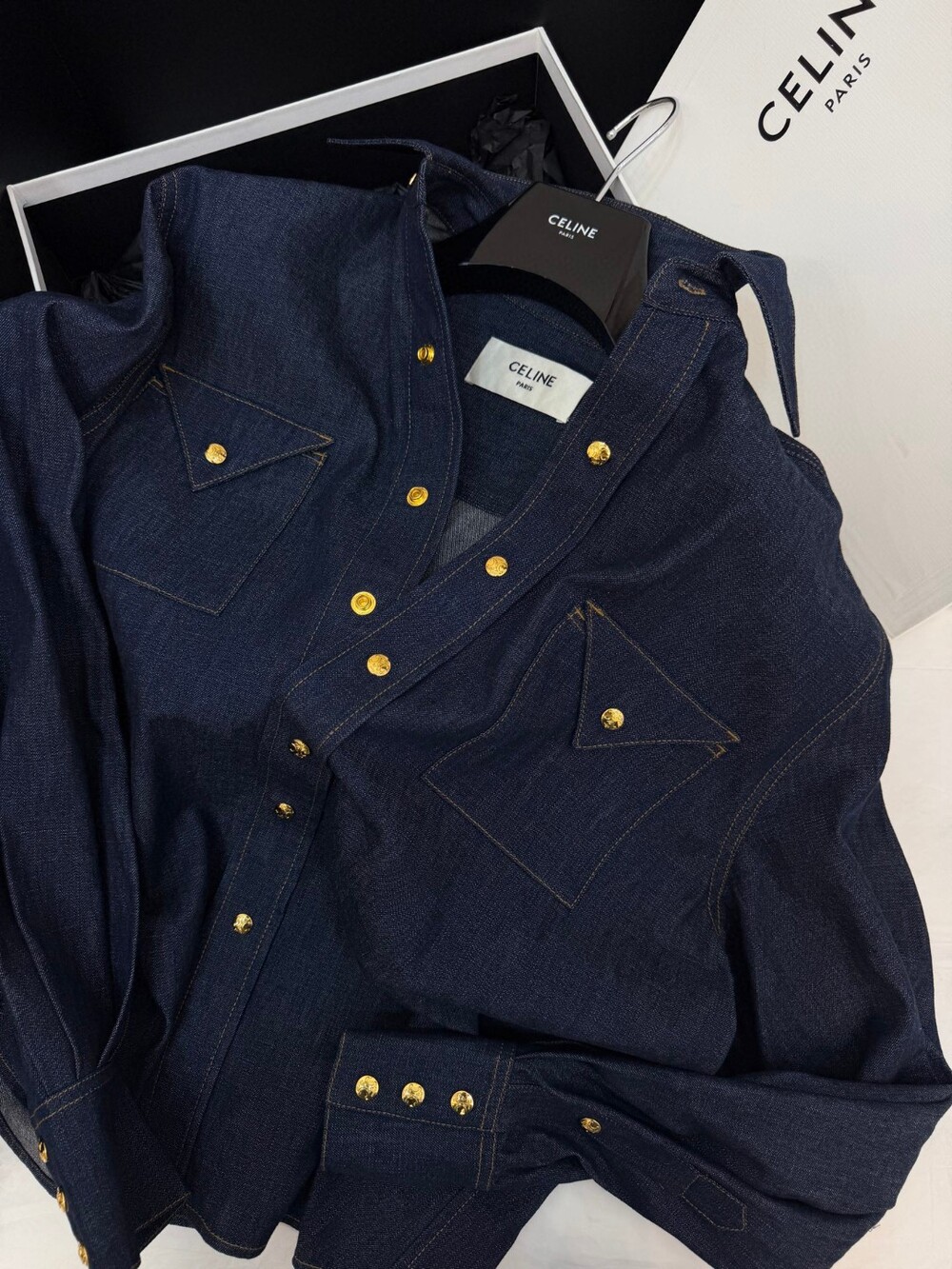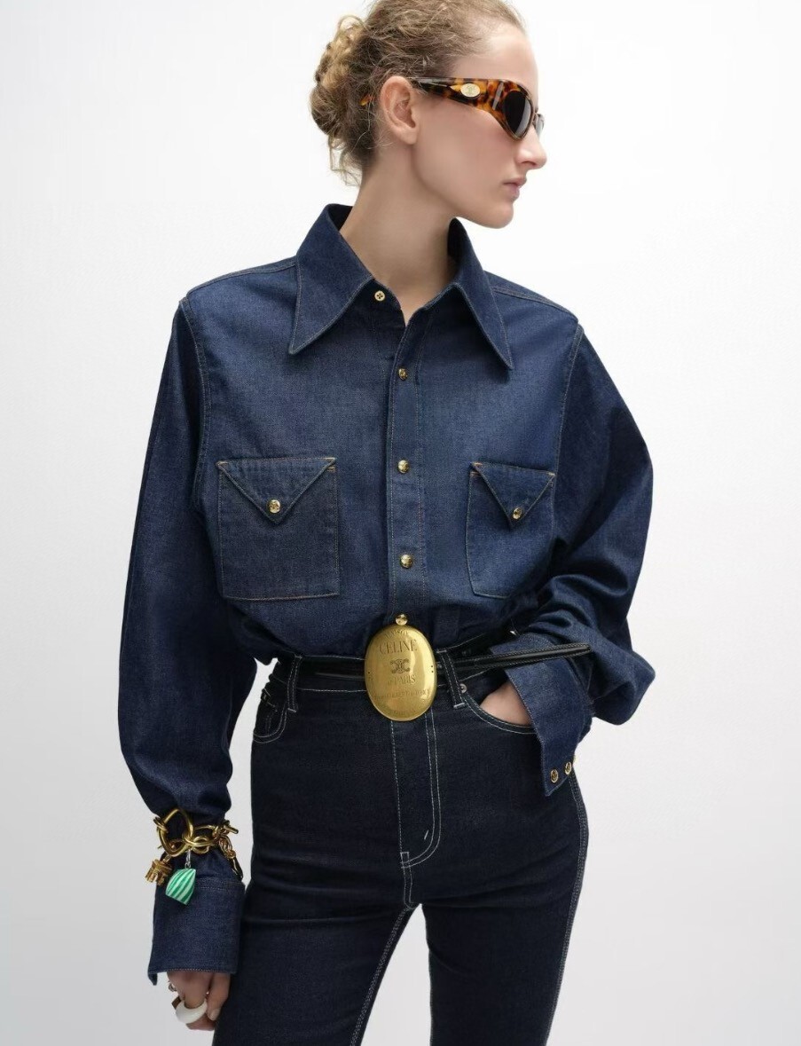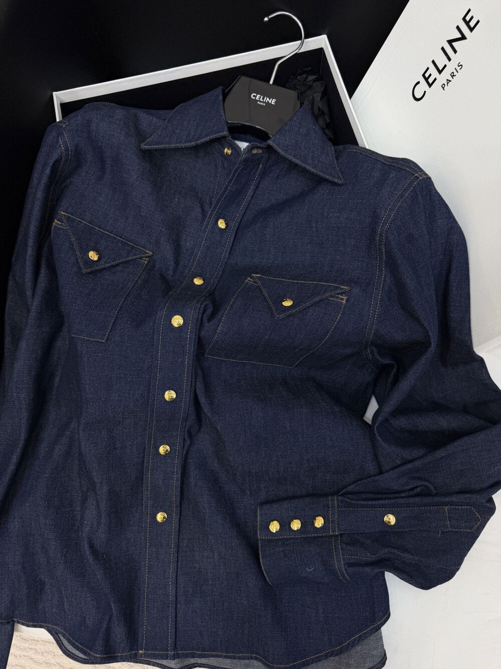 P. 셀 트리옹프 금장 버튼 데님셔츠