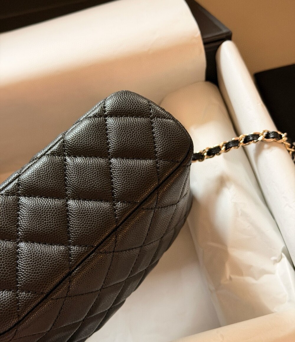Chanel 특유의 퀼팅 패턴과 CC 로고 디테일이 더해져