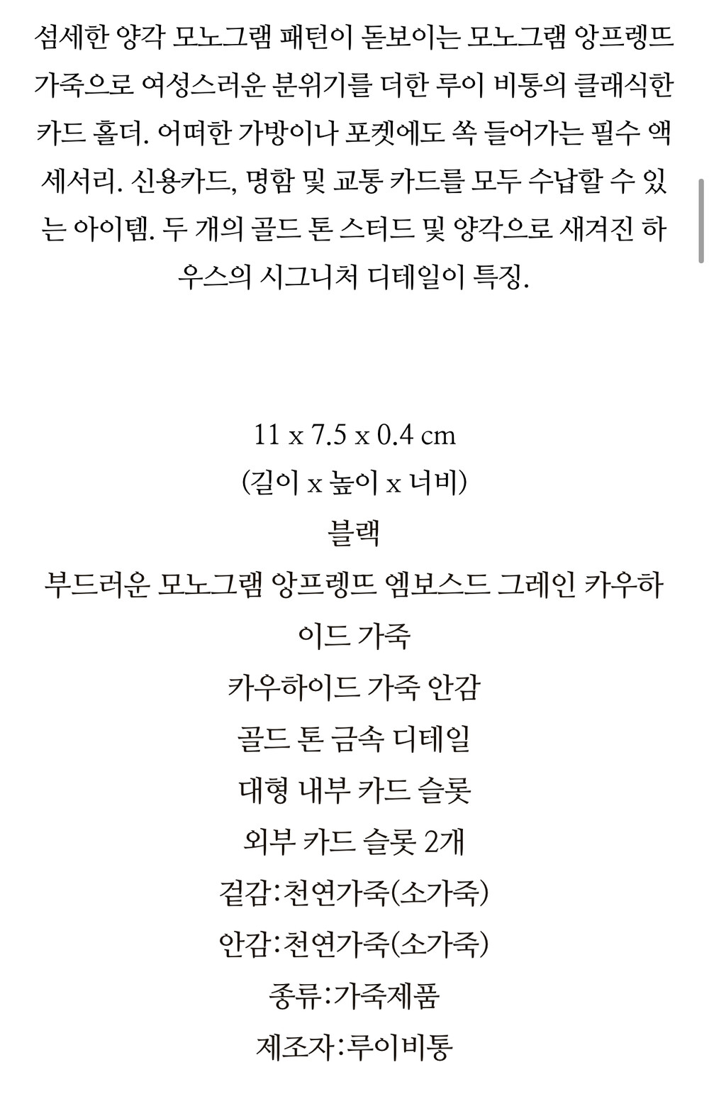 [영국 정매장] 루이비통 앙프렝뜨 카드홀더 블랙 M69171
