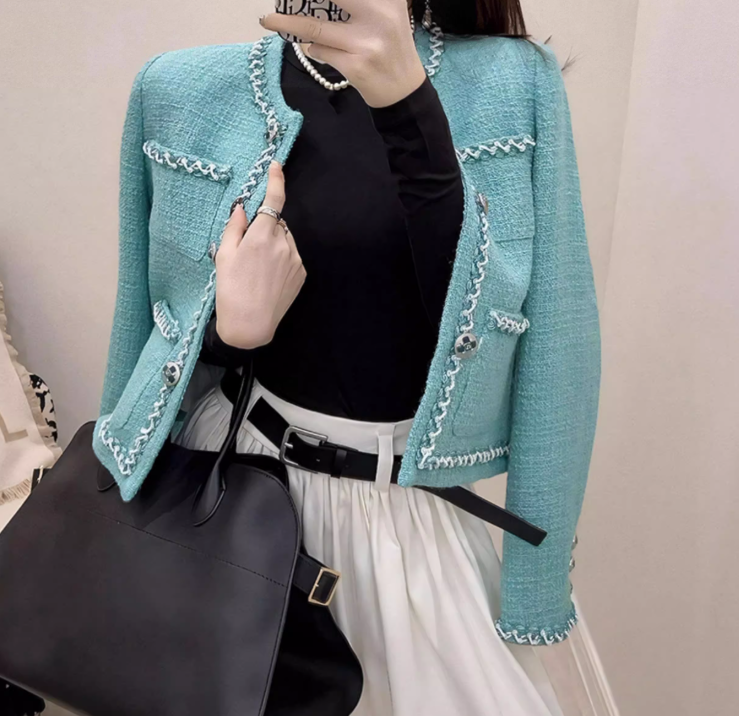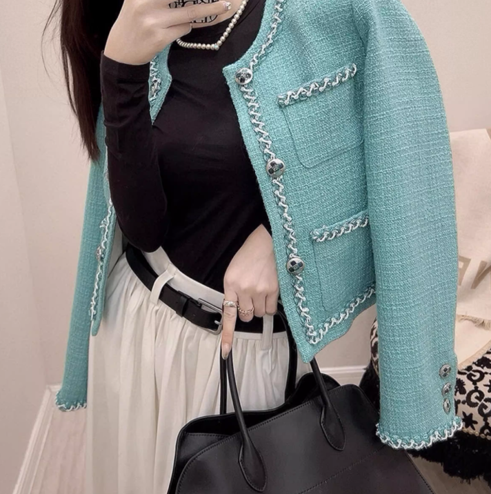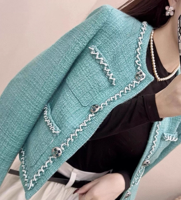 산뜻한 민트빛 트위드 자켓이에요 😊