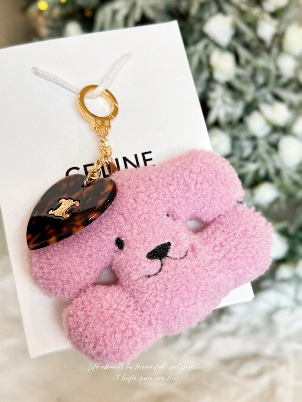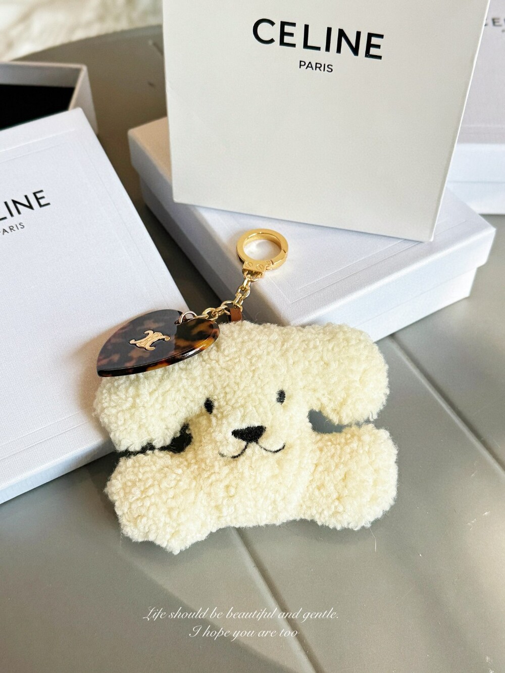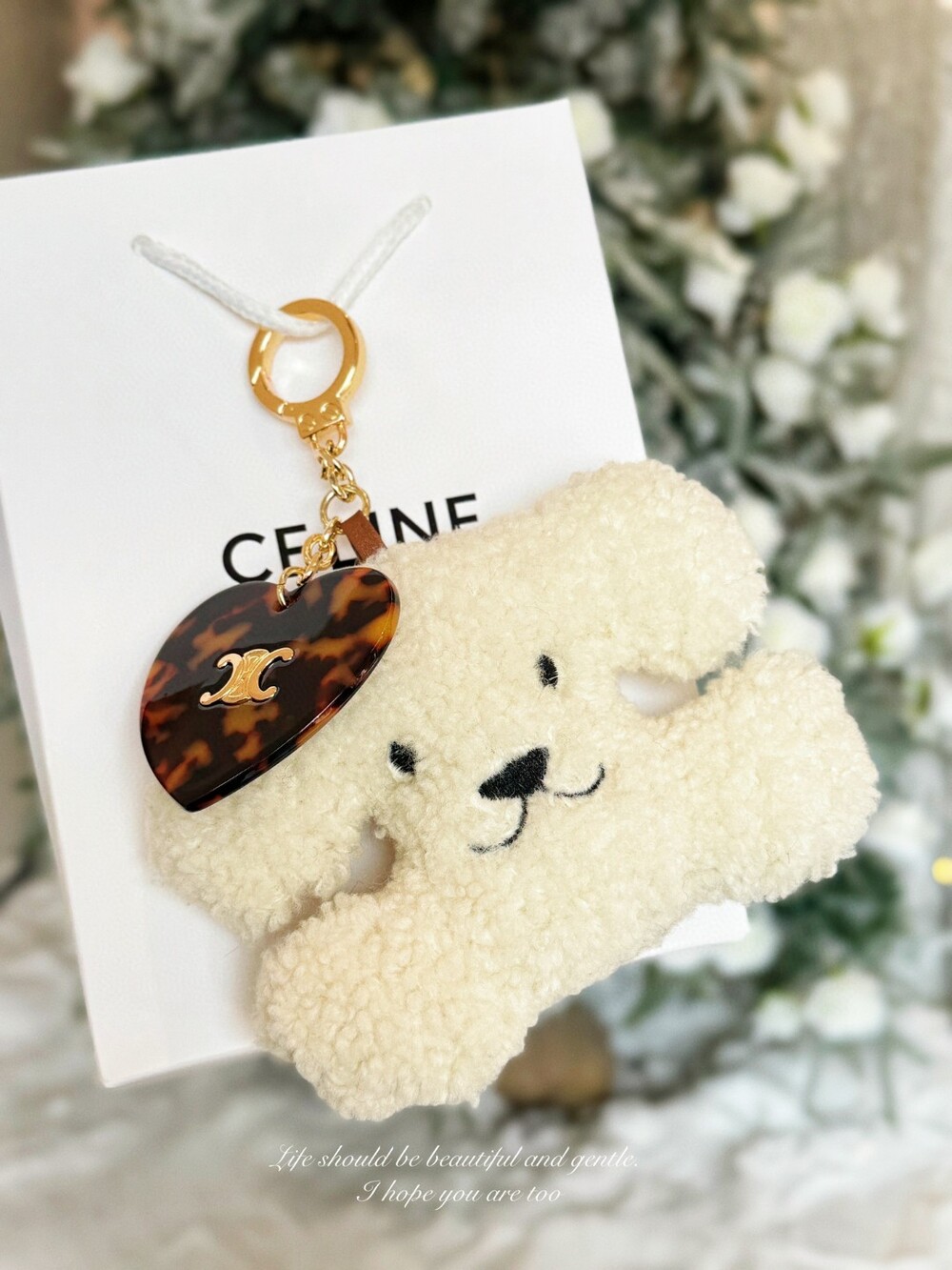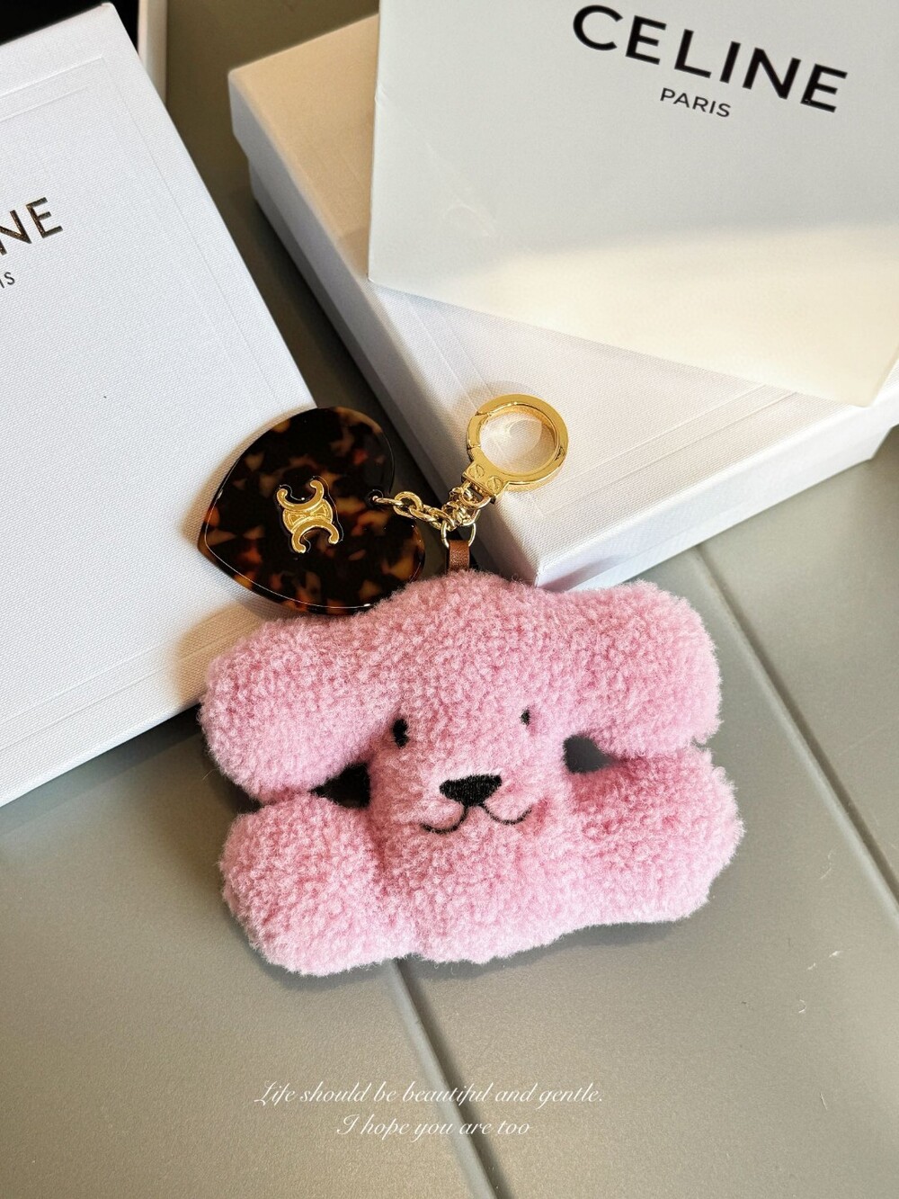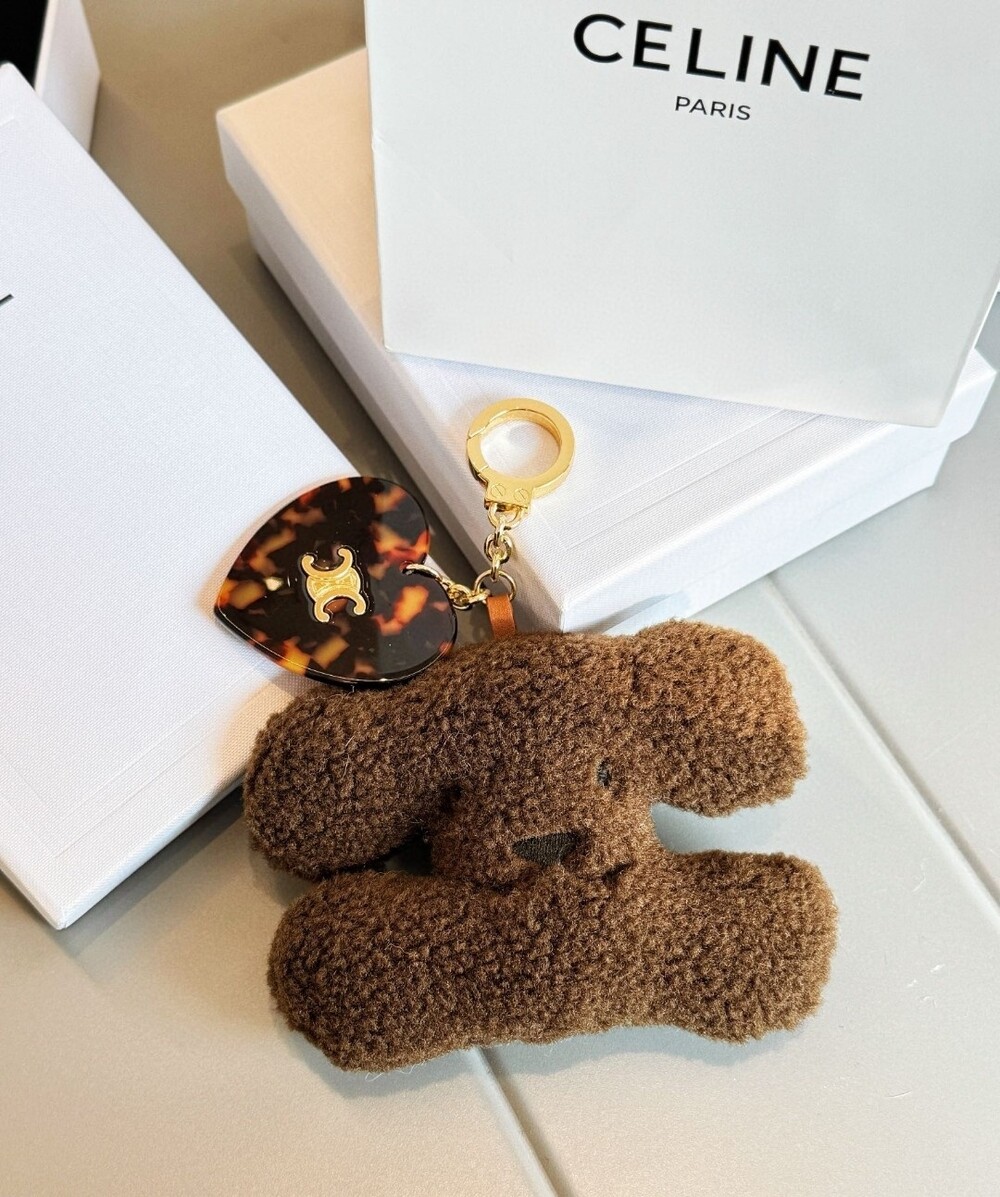 CELINE Triomphe Puppy Plush Heart Charm Keychain