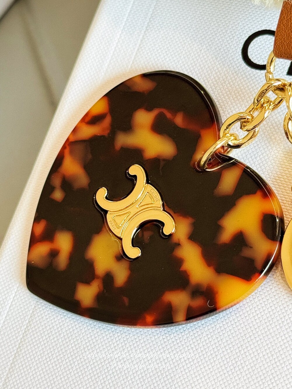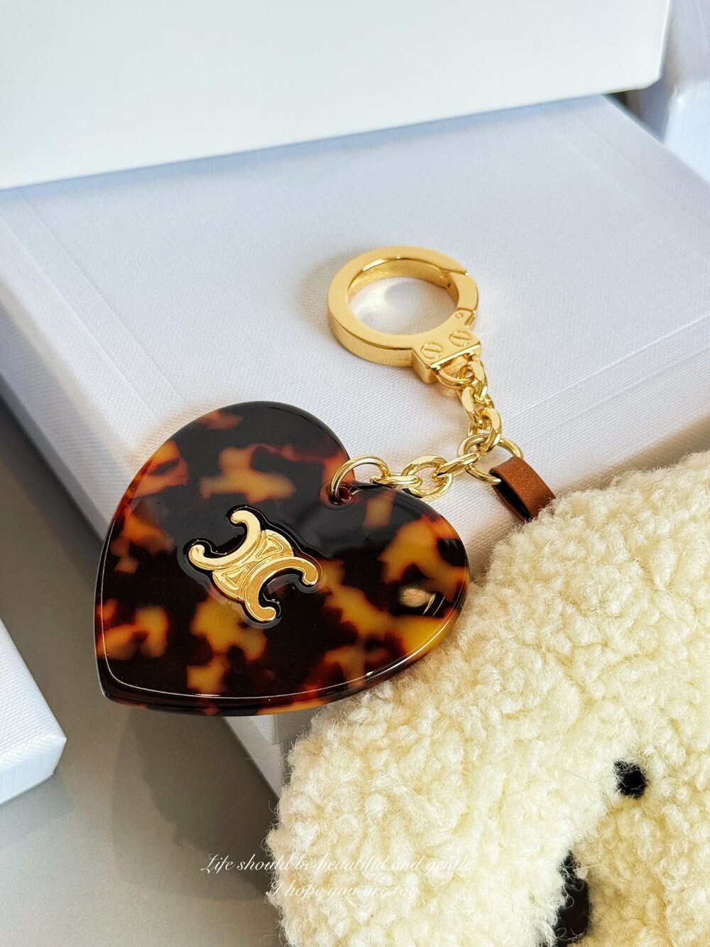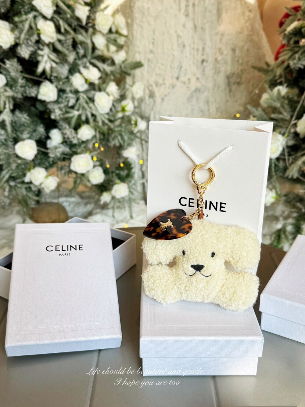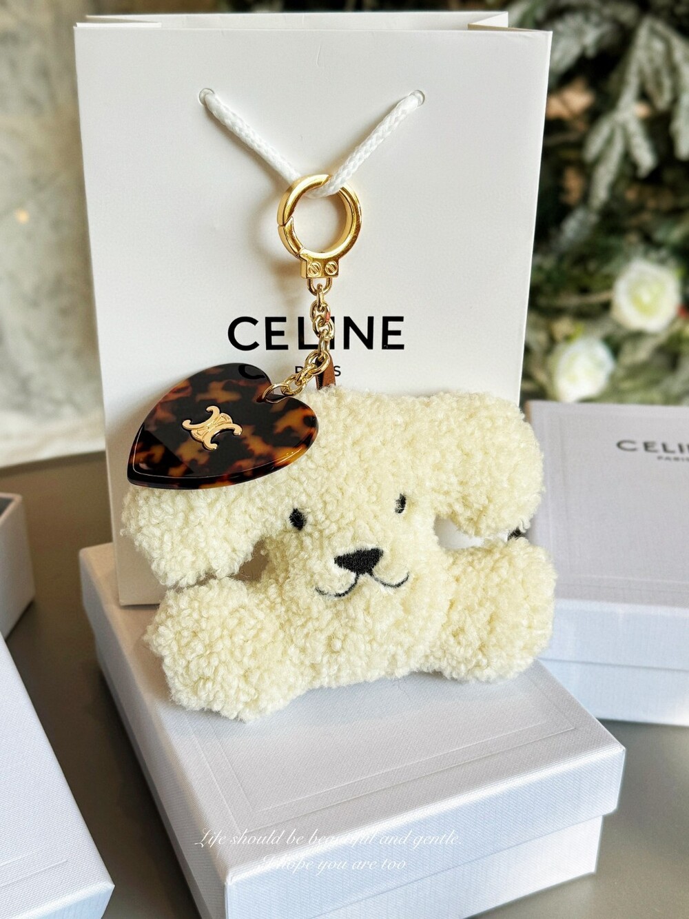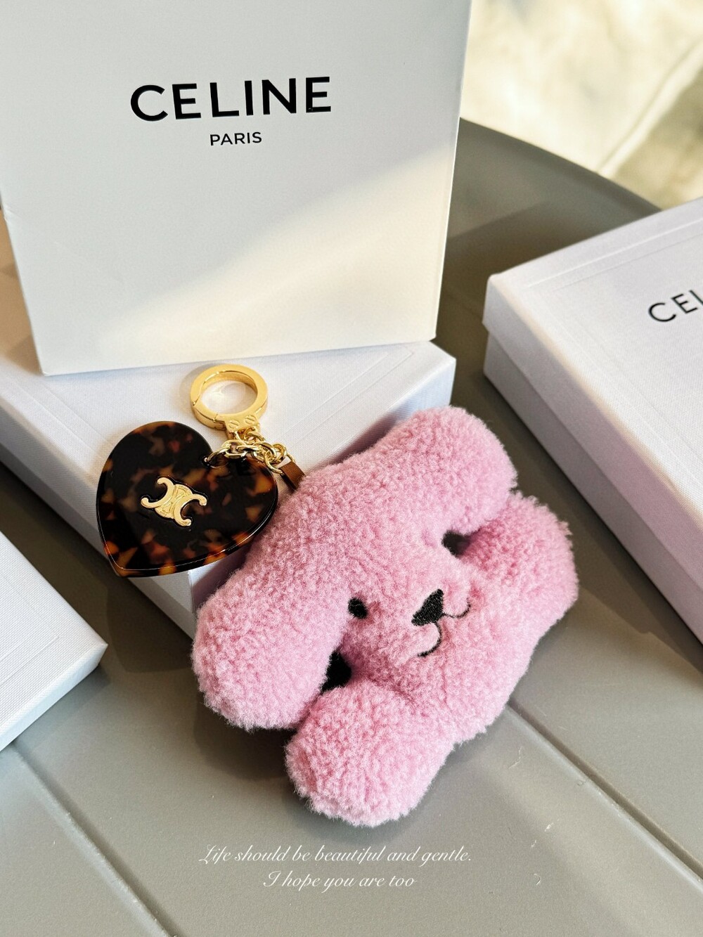 CELINE Triomphe Puppy Plush Heart Charm Keychain