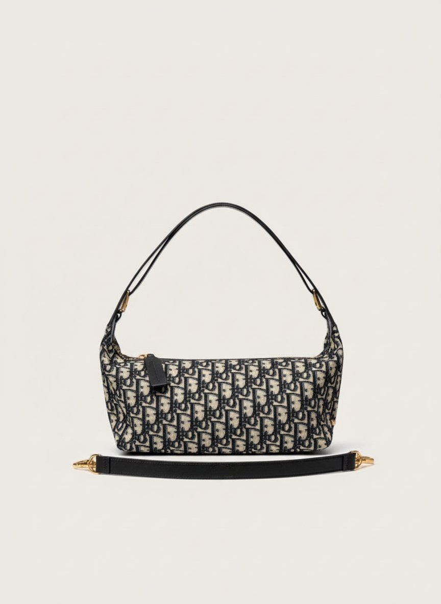 A timeless Dior-inspired shoulder bag featuring the iconic monogram jacquard canvas.