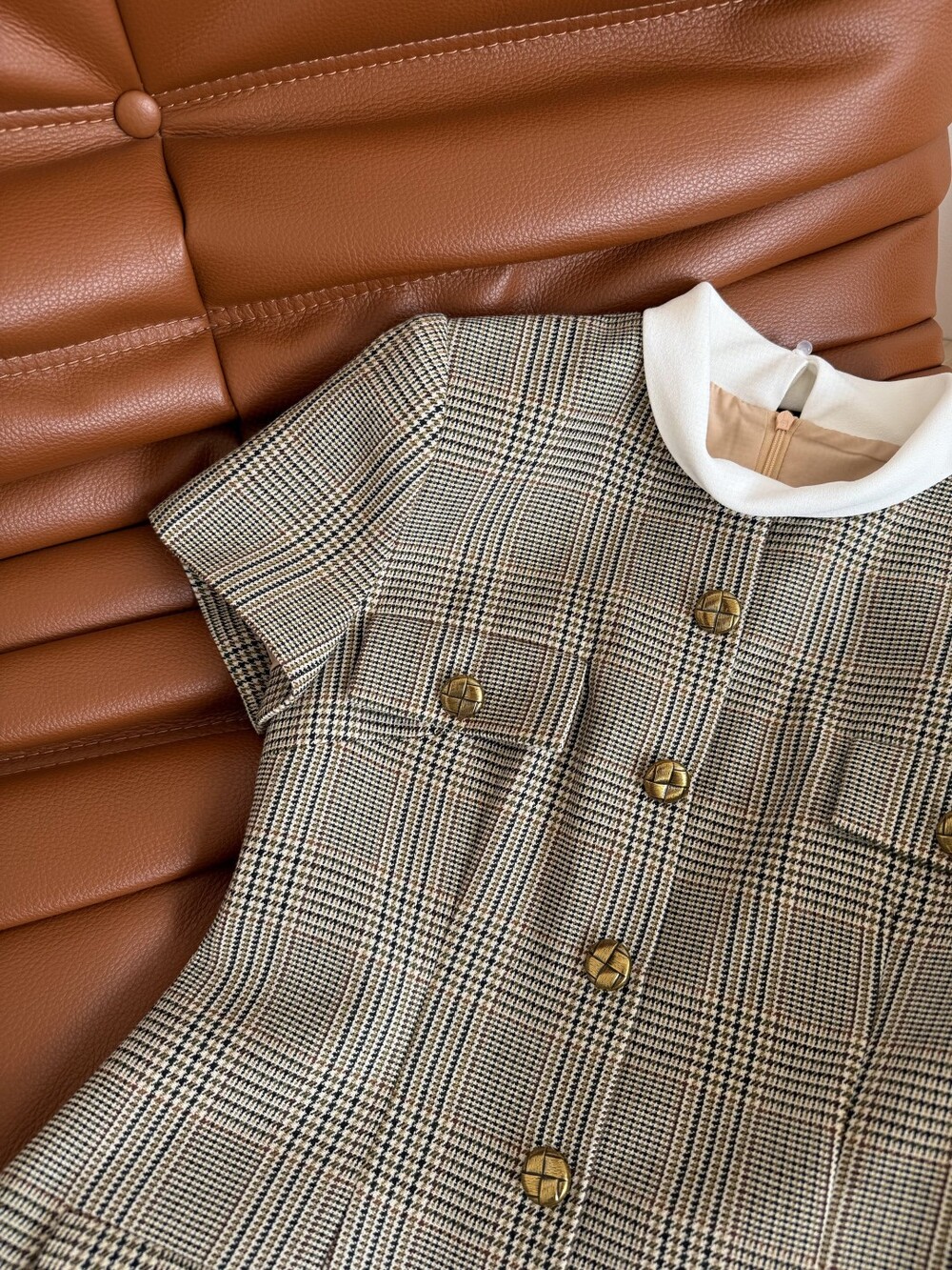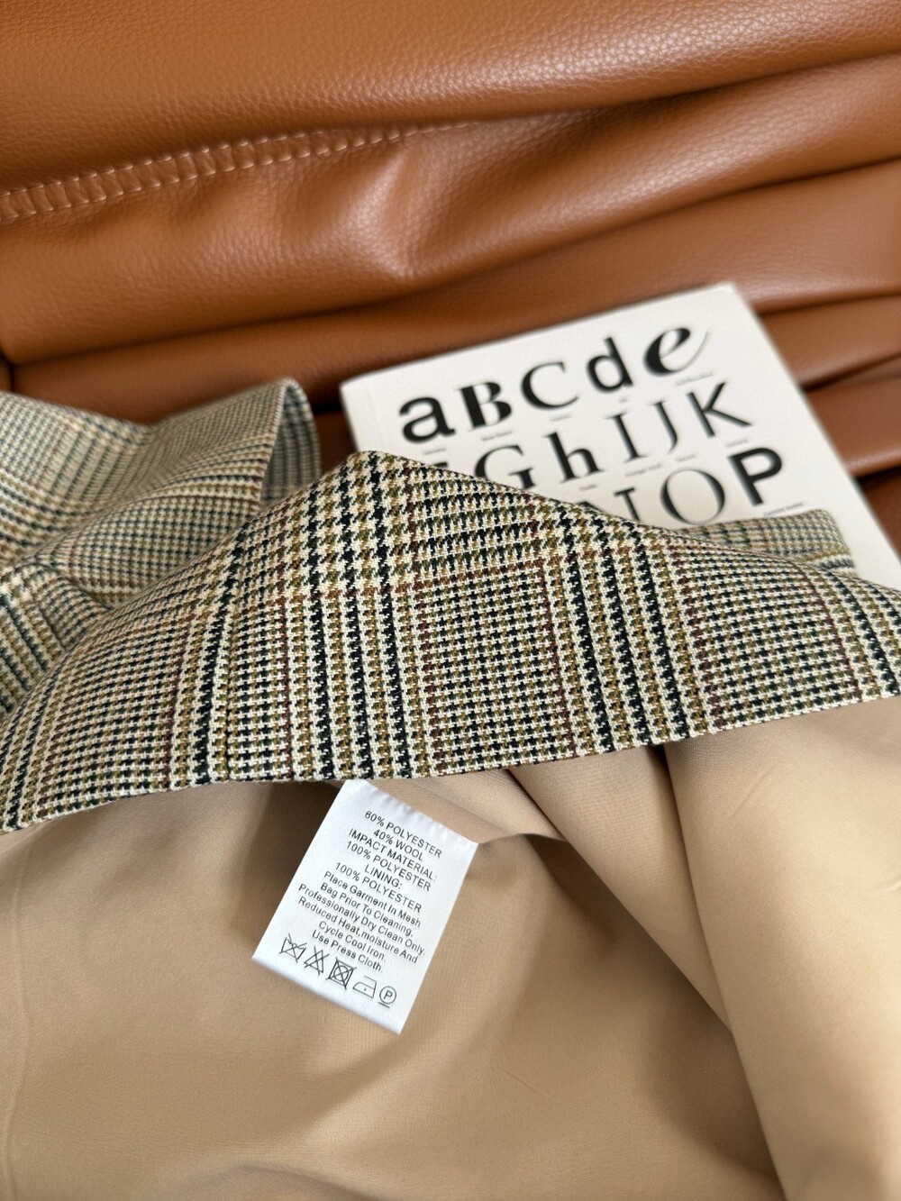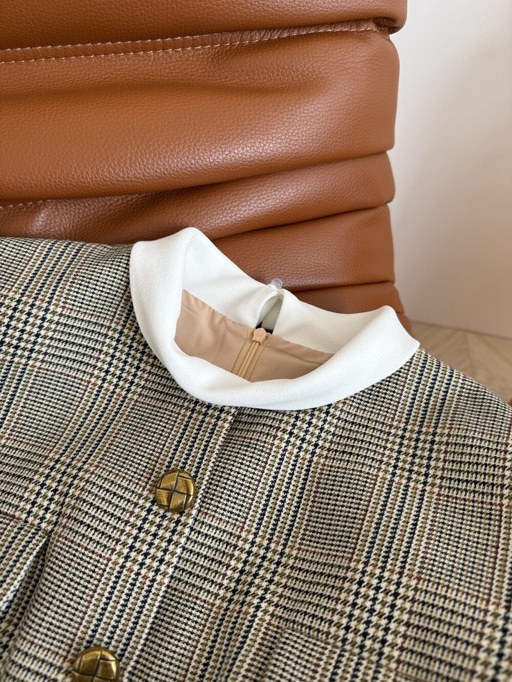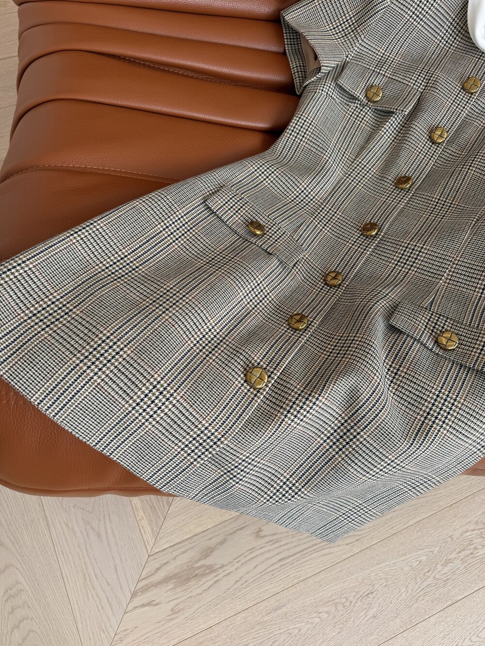 고급스러운 체크 패턴과 골드 버튼 디테일로