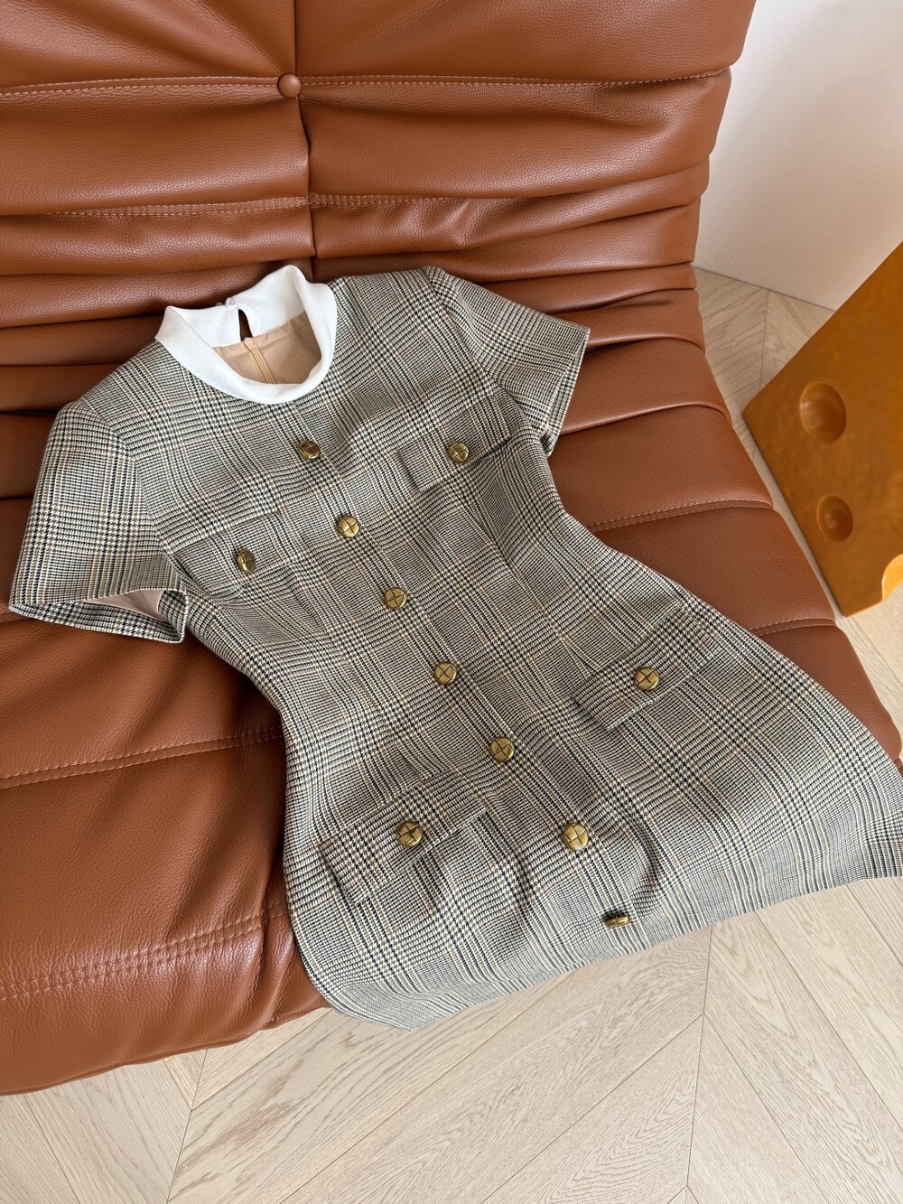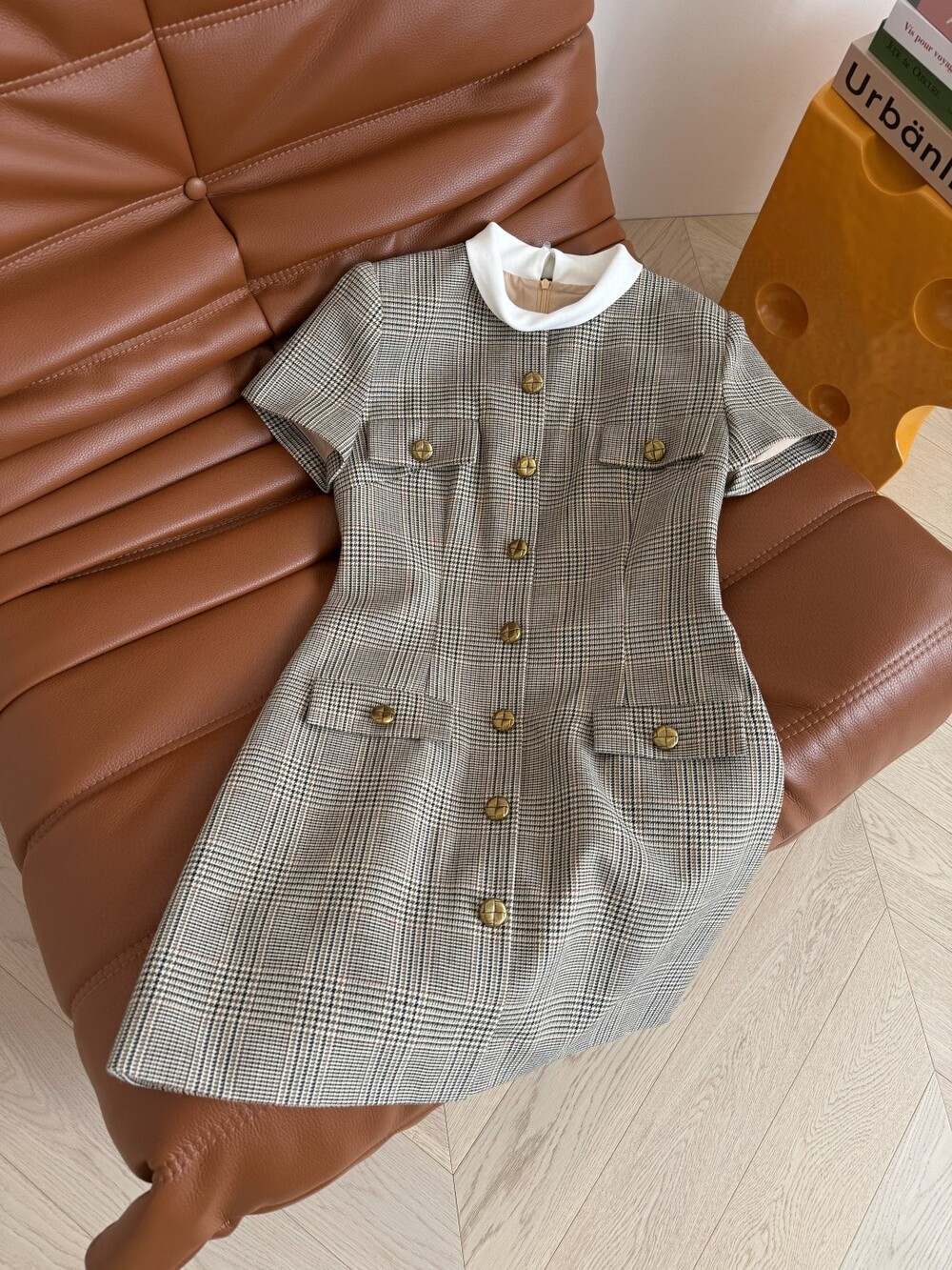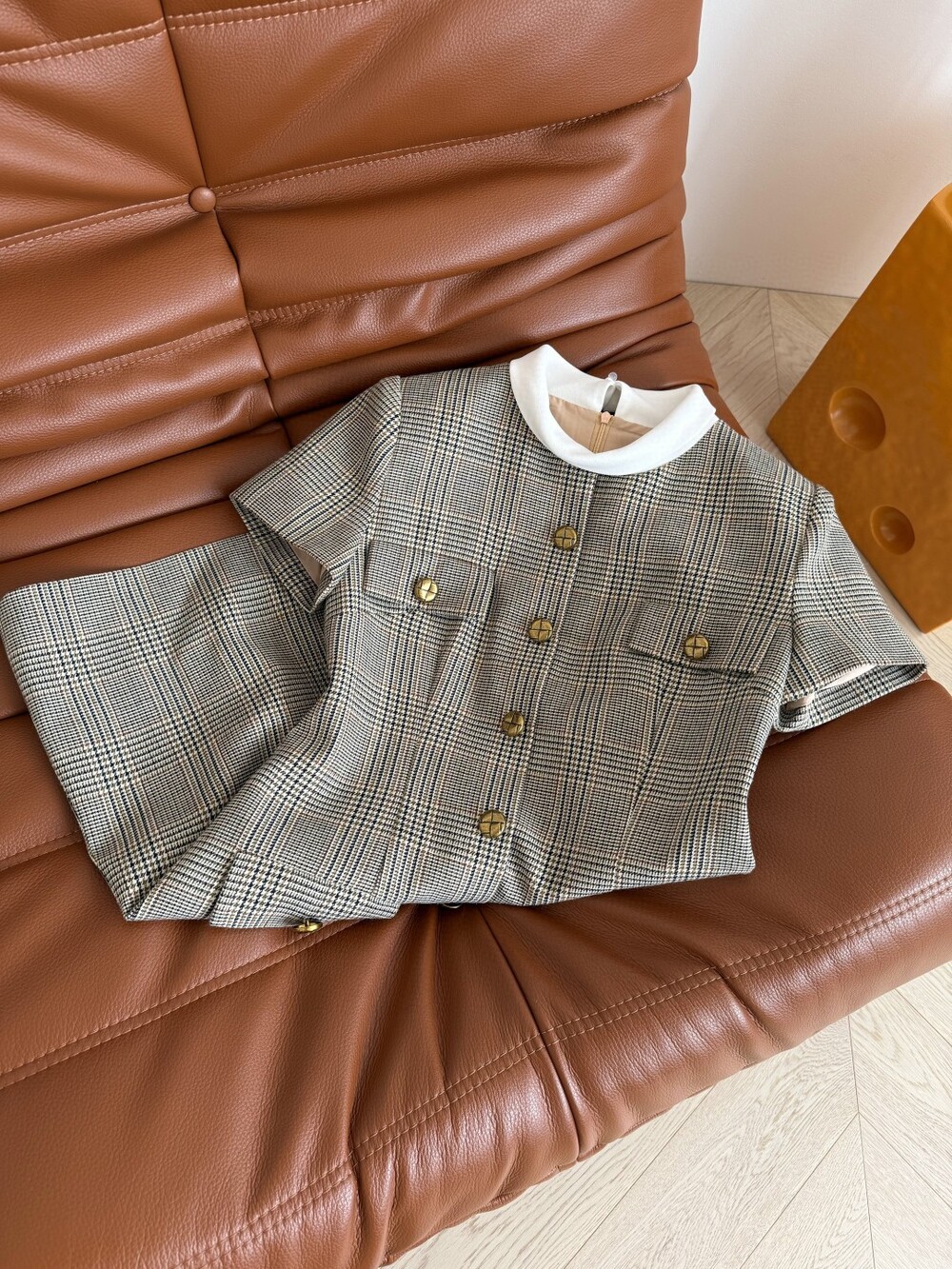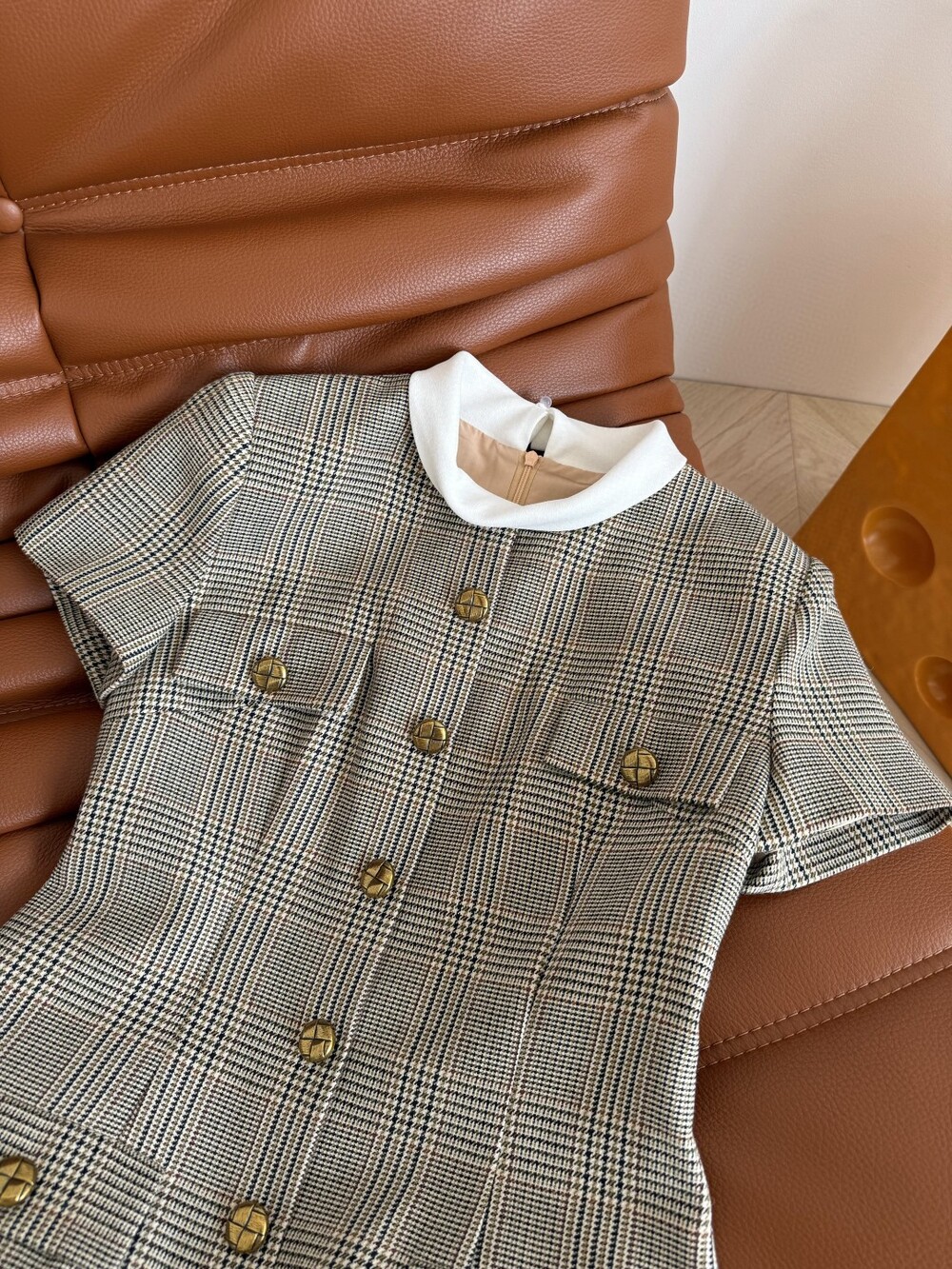 고급스러운 체크 패턴과 골드 버튼 디테일로