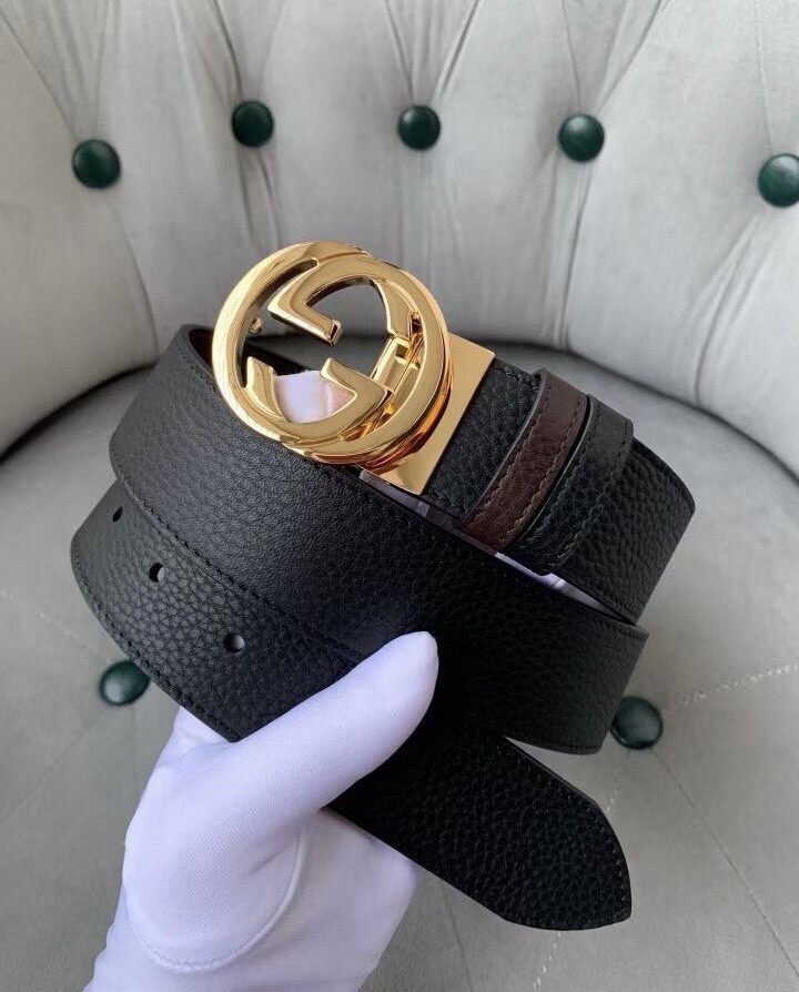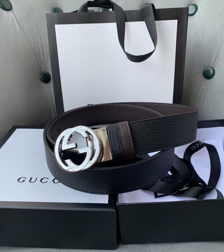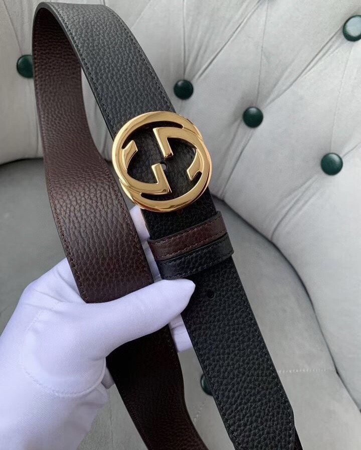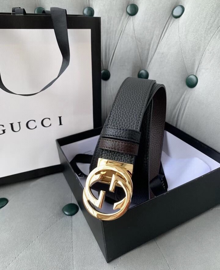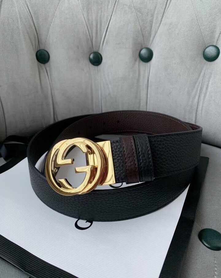 Gucci original single top layer cowhide lychee pattern belt, lined with top layer cowhide lychee pattern bottom, black and brown two-color integrated, front and back sides available, with original single rotary buckle, original leather customization, counter width 3.8CM