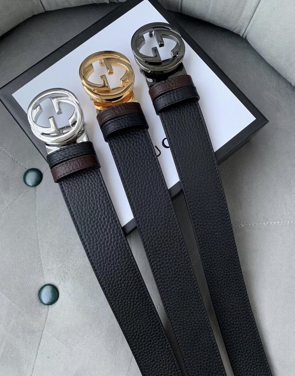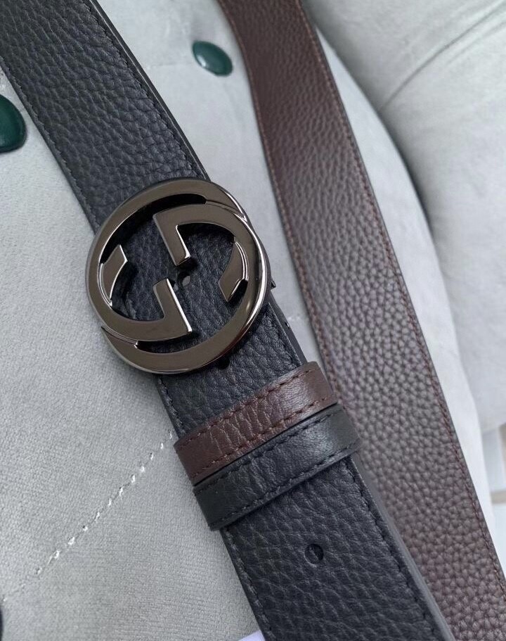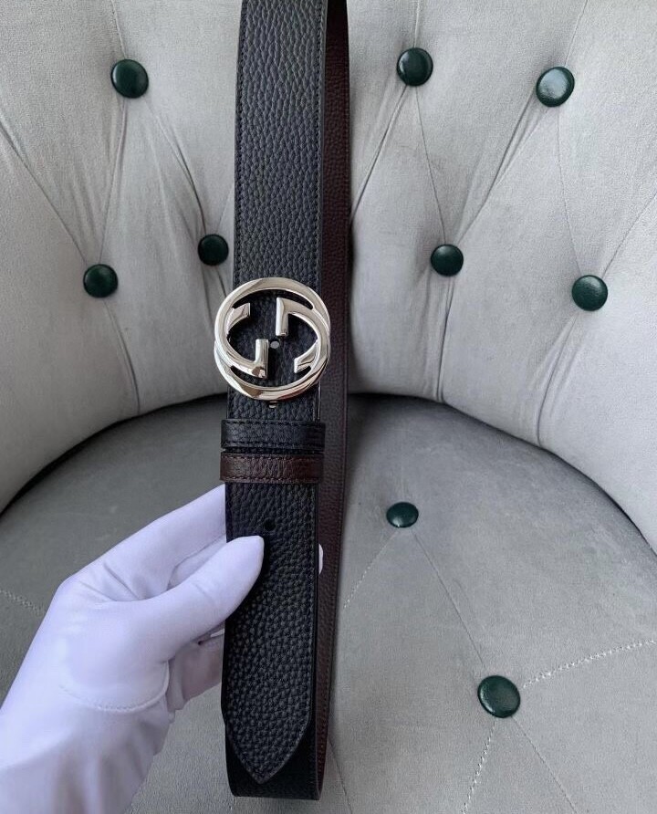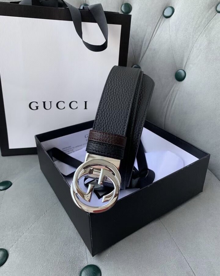 Gucci original single top layer cowhide lychee pattern belt, lined with top layer cowhide lychee pattern bottom, black and brown two-color integrated, front and back sides available, with original single rotary buckle, original leather customization, counter width 3.8CM
