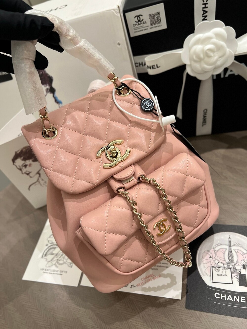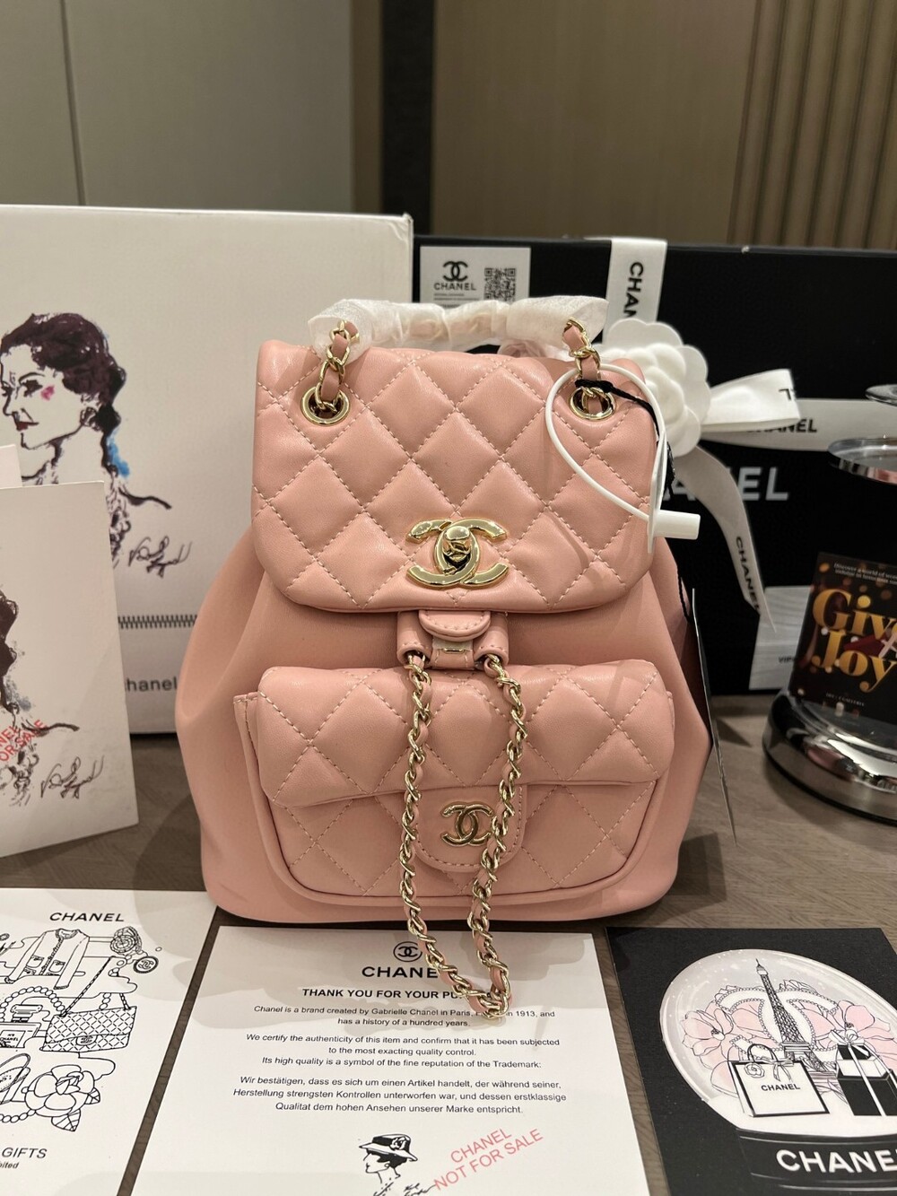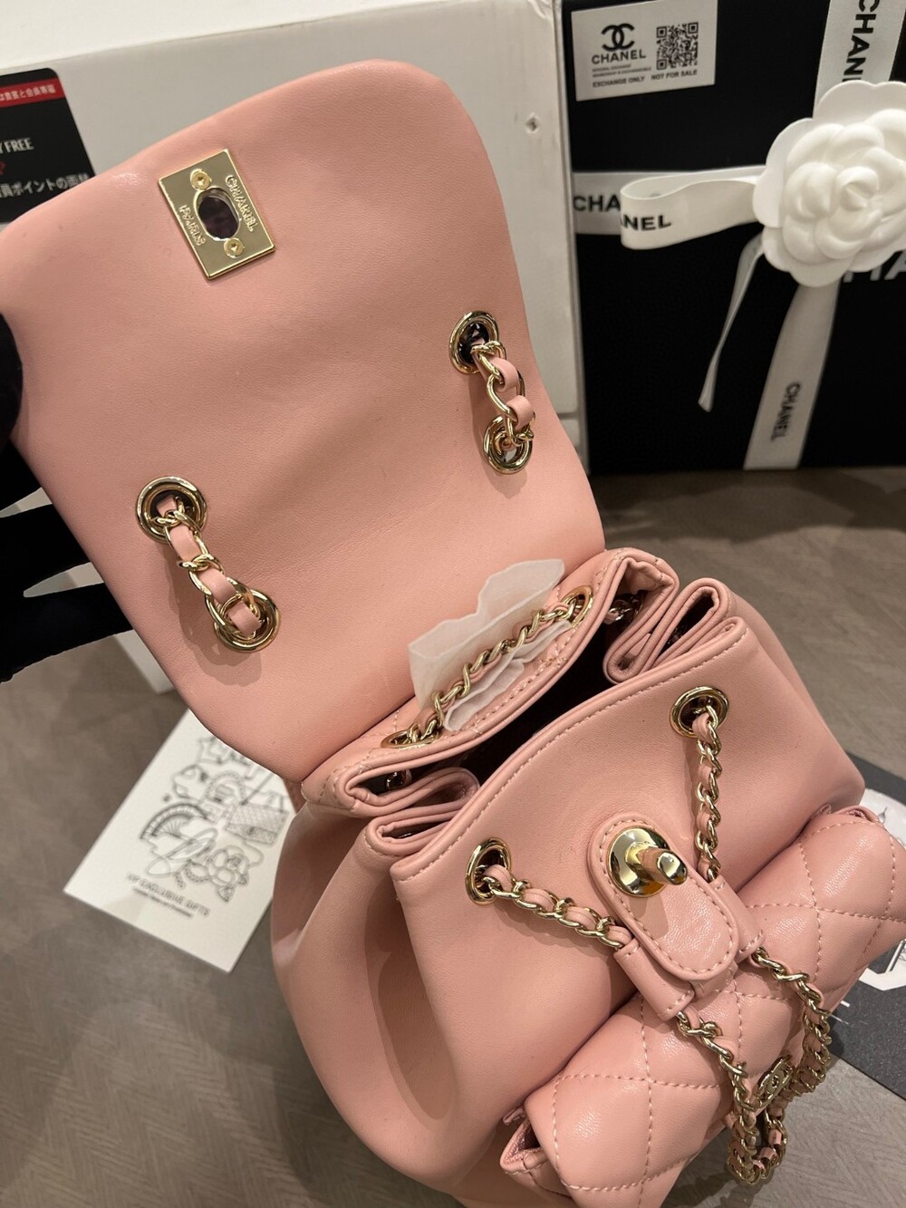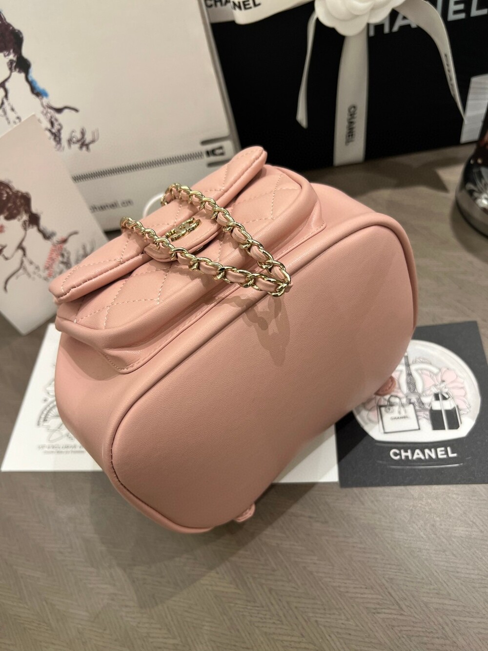 With its signature diamond quilting, gold-tone hardware,