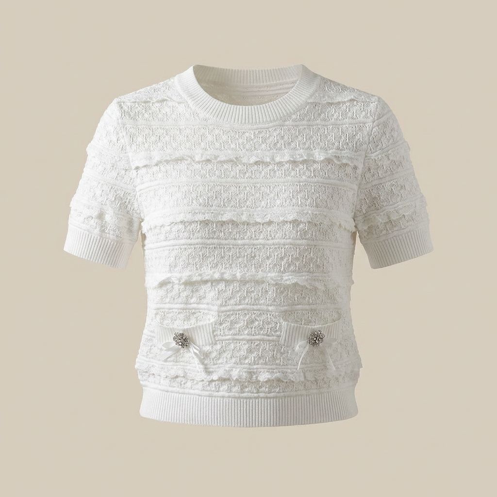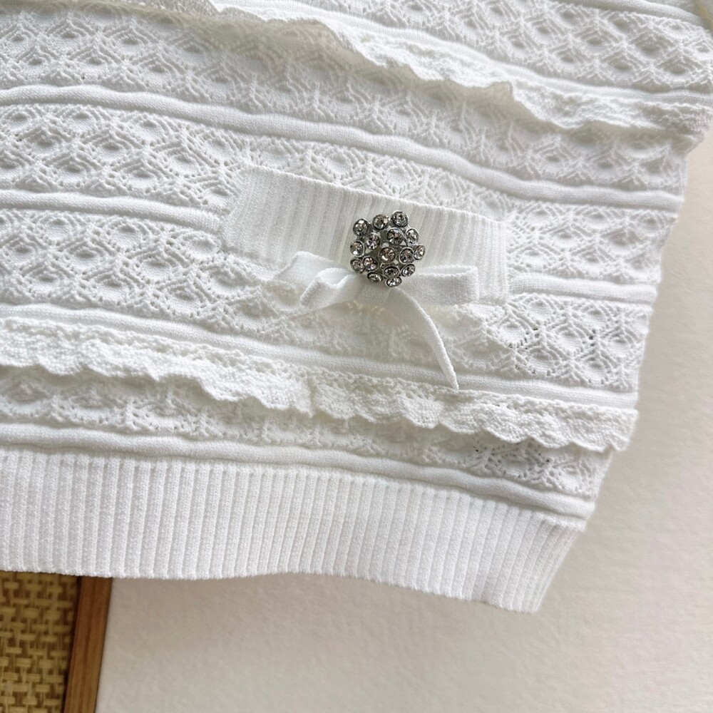 프론트 리본 장식에 작은 스톤 디테일을 더해