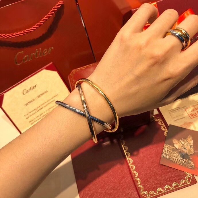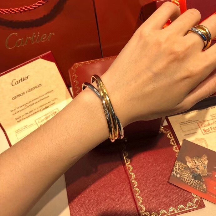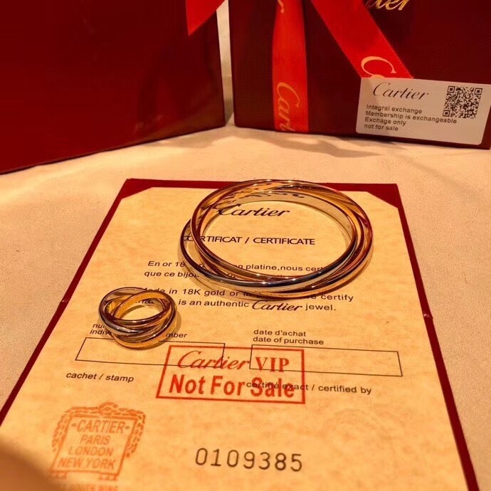 New Overseas Cartier Points Redemption PrivilegeCartier Triple Ring Gold Porn Couple Bracelet316l stainless steel 18k gold plated au750 female/maleColor separation one ring one color White gold/Rose gold/YellowWith scan code VIP card full set of points for gift packaging