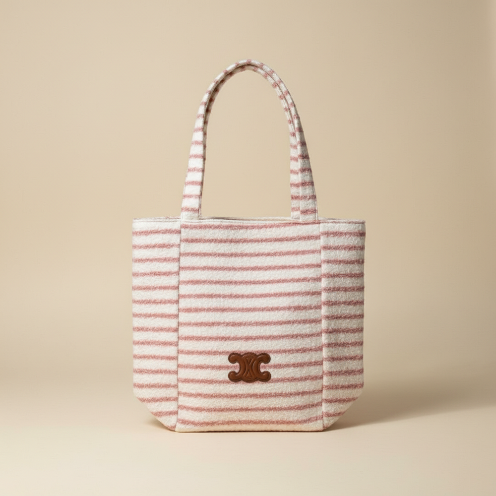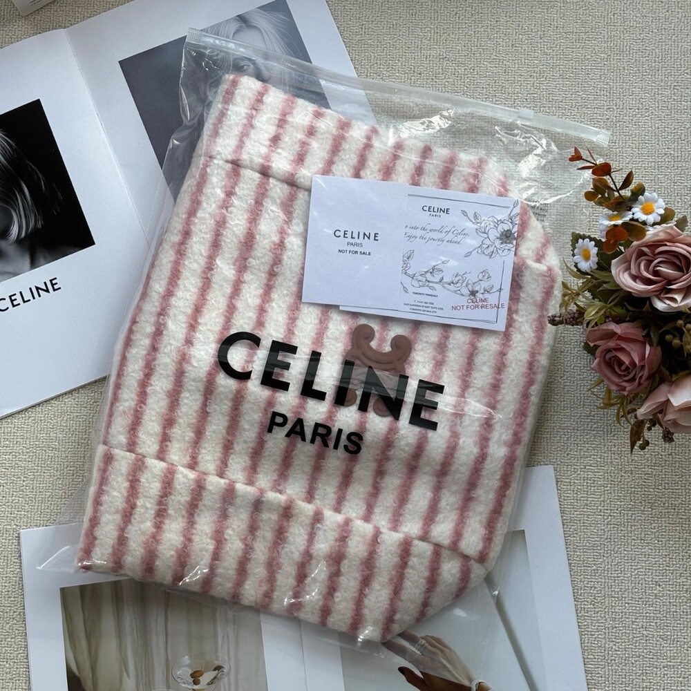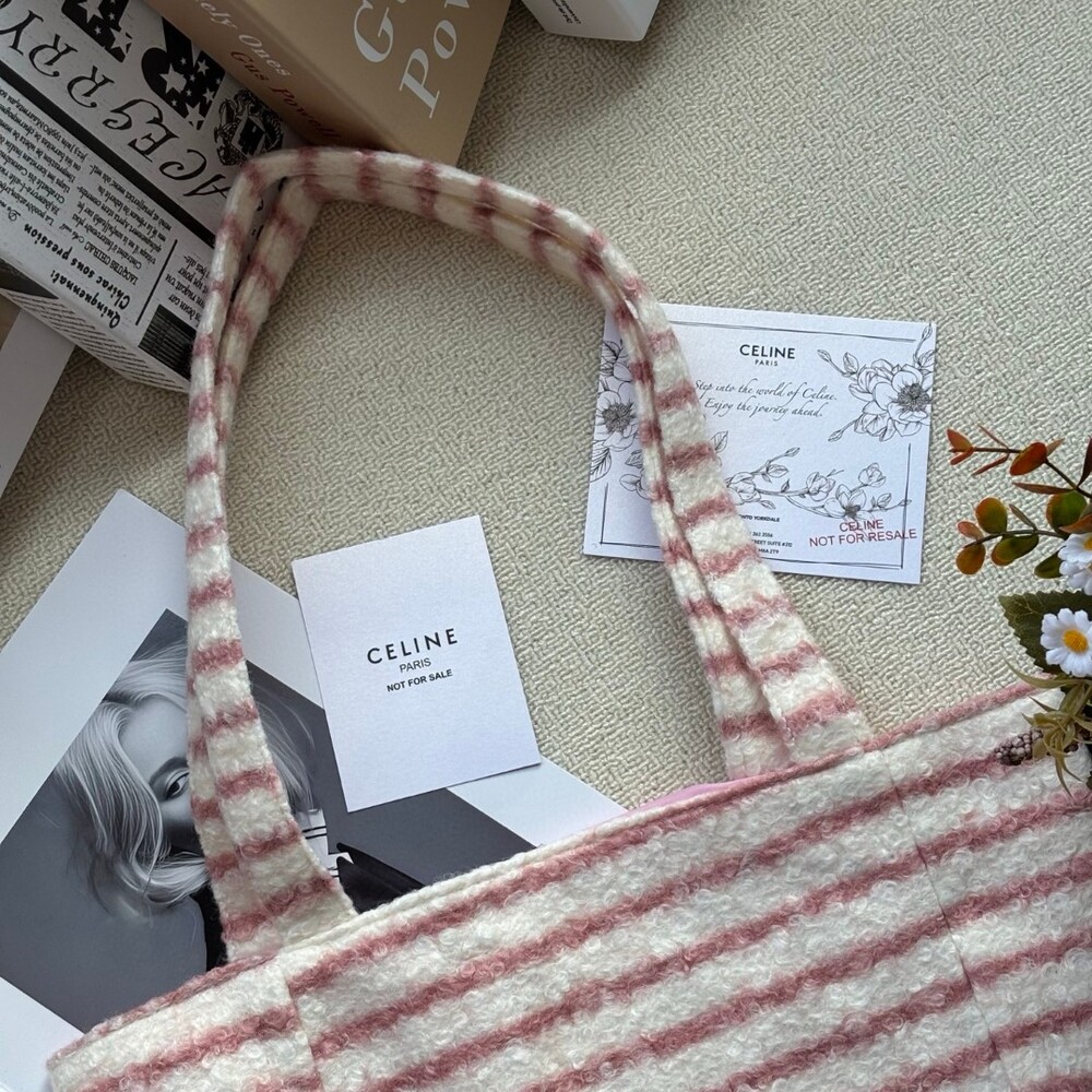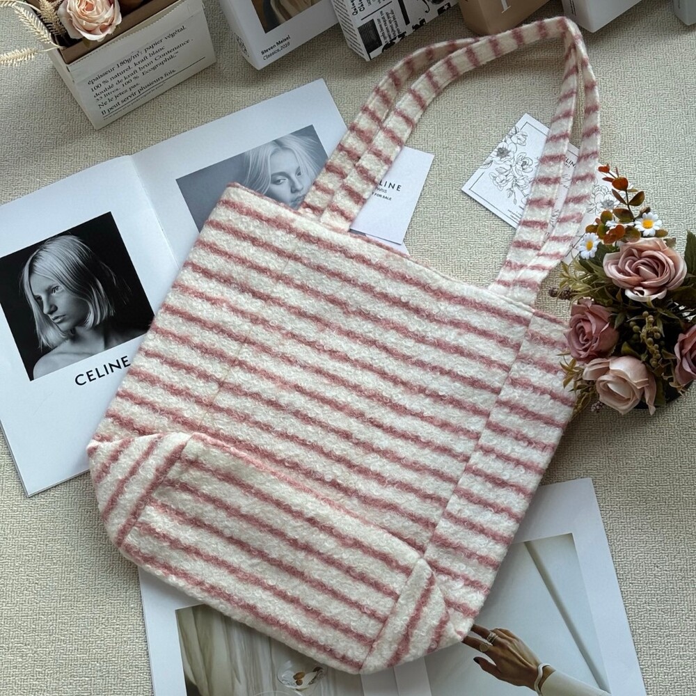 A cozy and stylish plush tote bag from Celine’s iconic Triomphe collection.Perfect for autumn and winter, this bag offers a soft, warm texture that feels luxurious to the touch while keeping your hands cozy.Its elegant striped pattern and signature Triomphe emblem make it a chic yet practical piece for daily use.Size: 39 × 37 cm