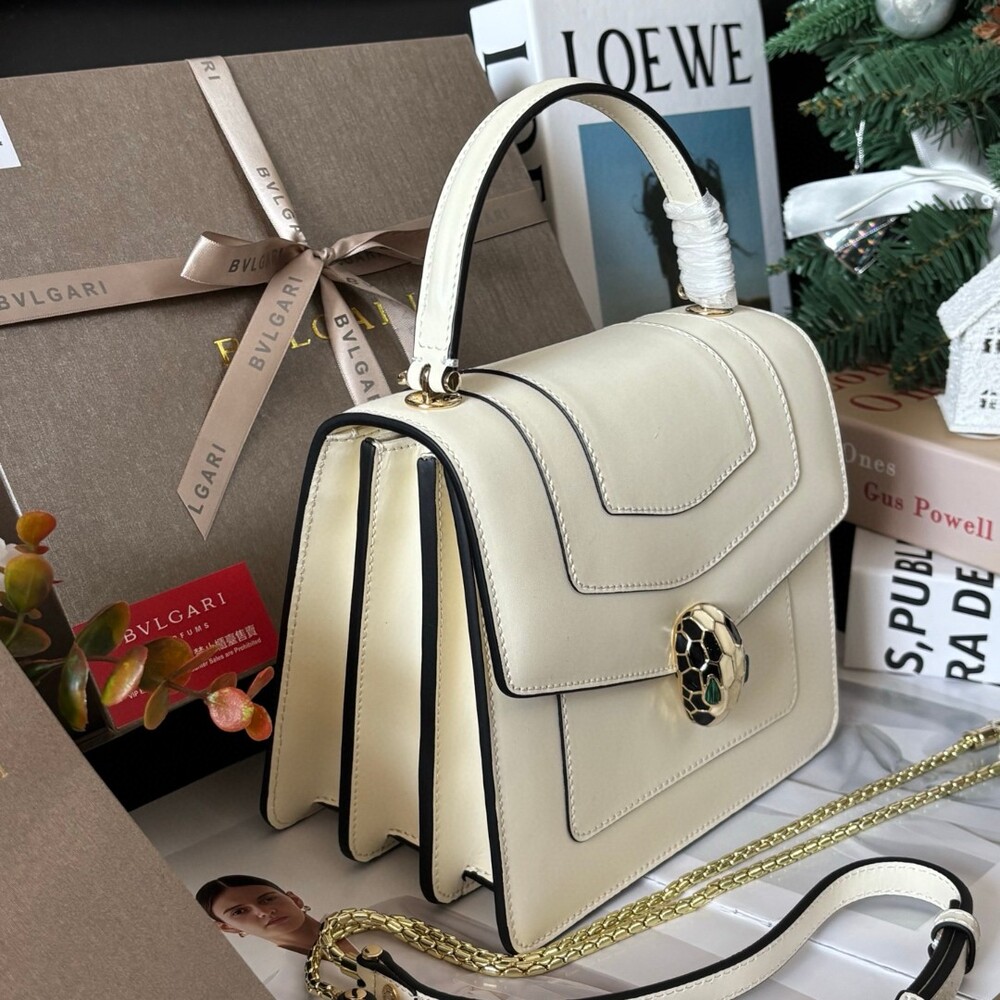 세련된 실루엣과 스네이크 모티브 잠금 장식이 어우러진