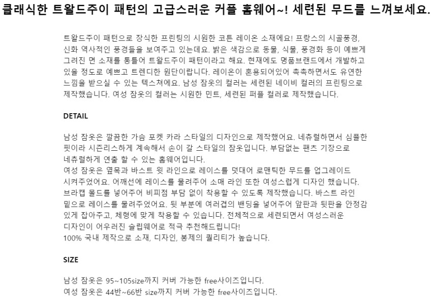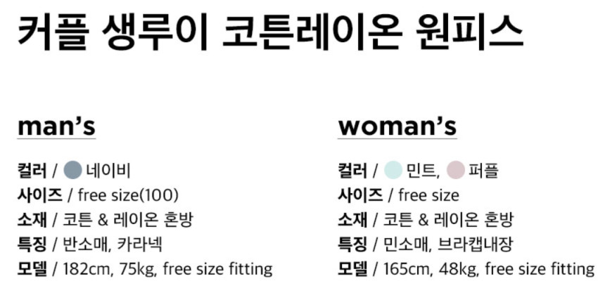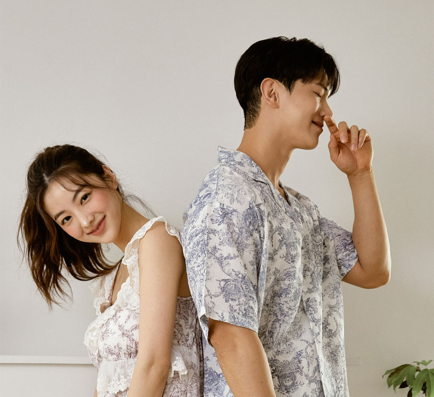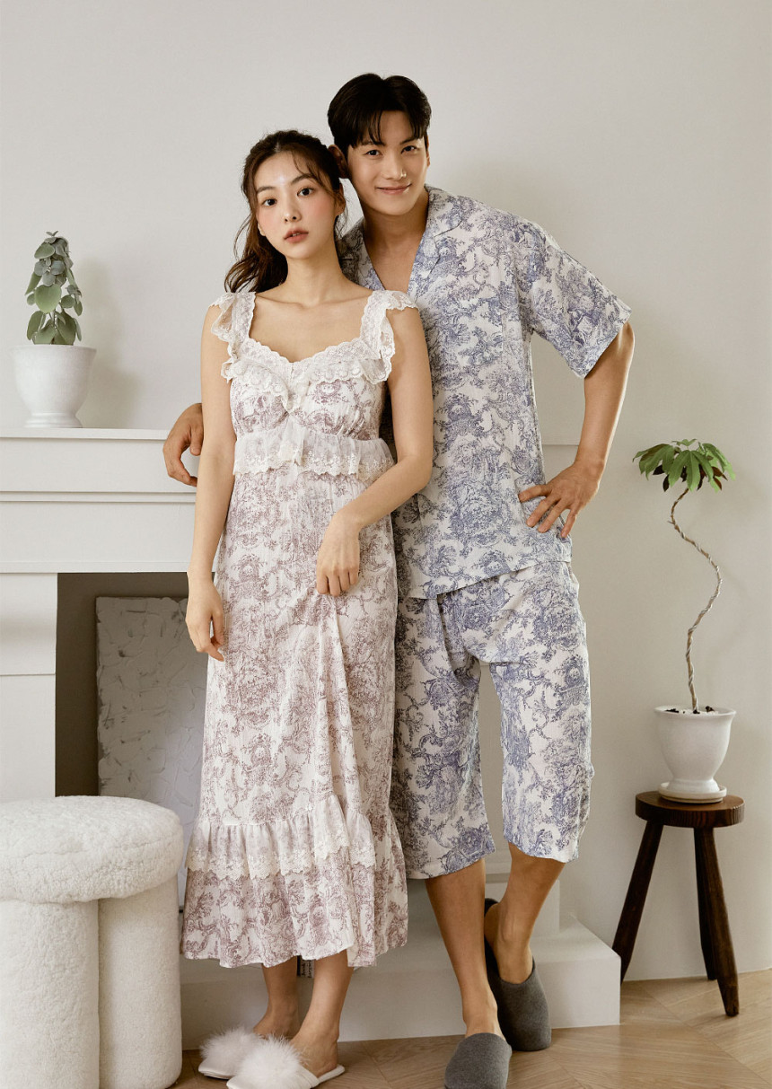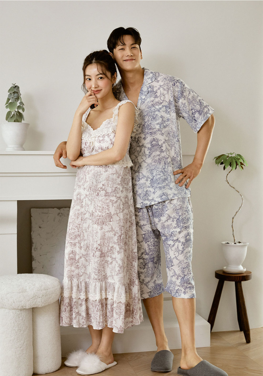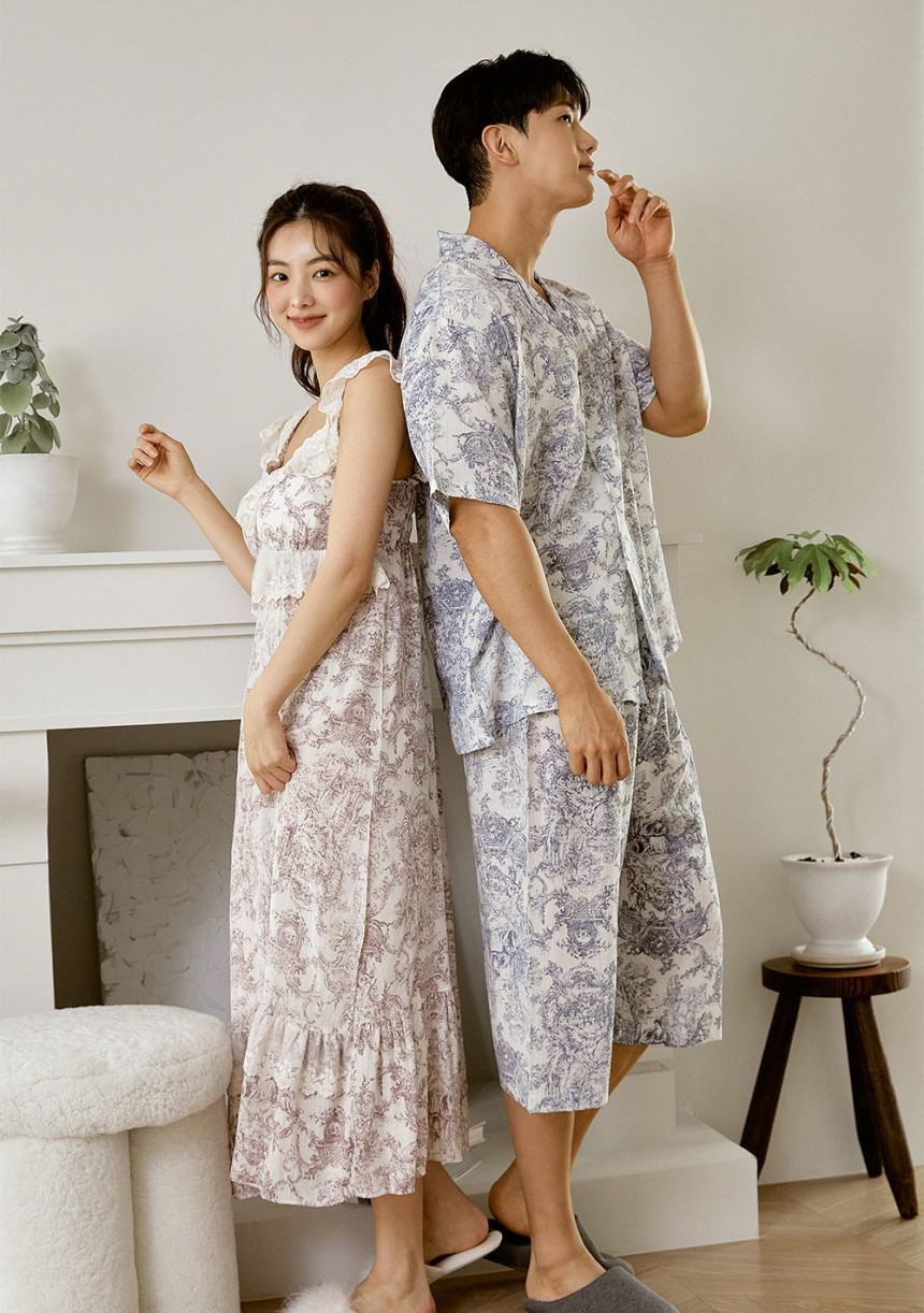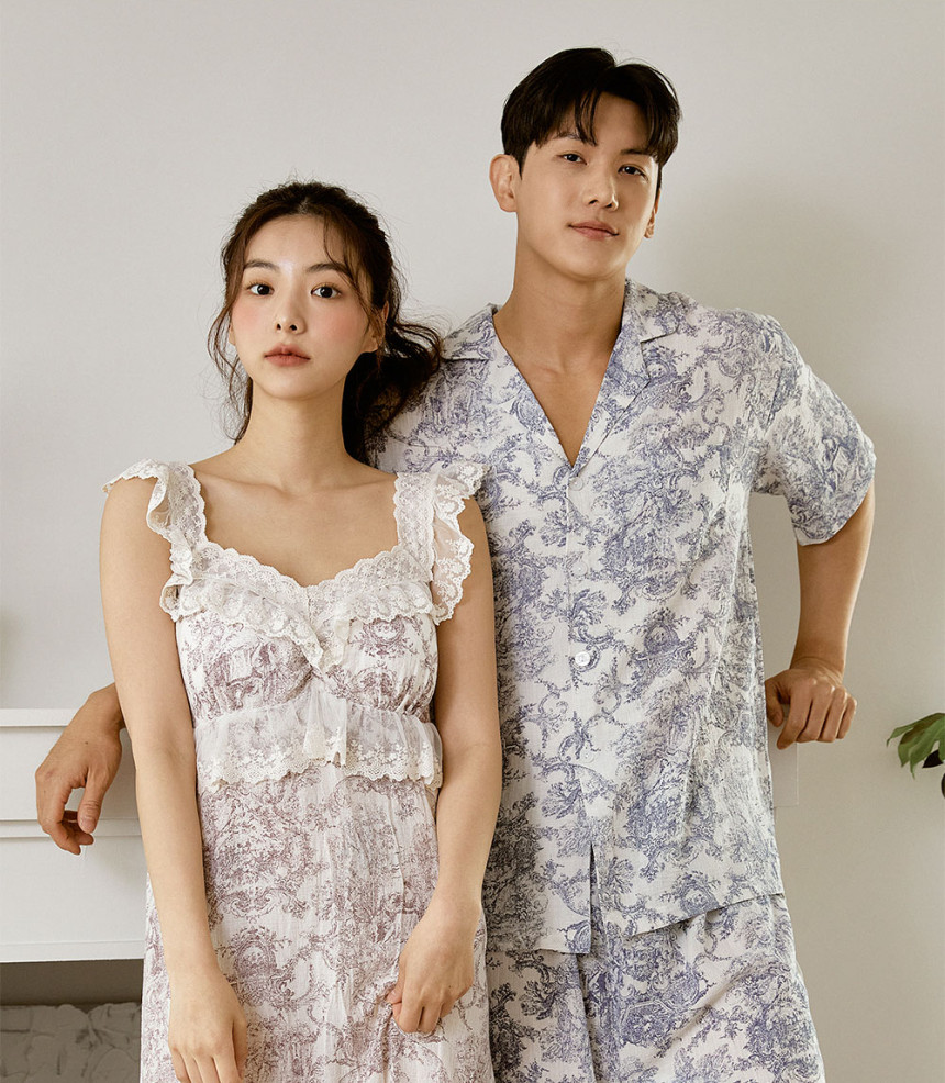 여성 남성 커플 생루이 원피스 투피스 수면 잠옷