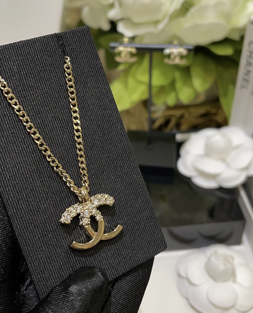 샤넬 하프 다이아몬드 네크리스와 이어링 세트입니다