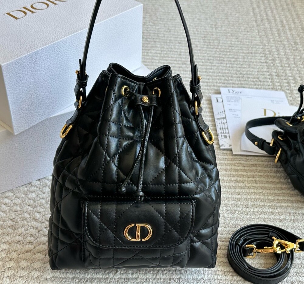Part of Dior’s iconic Caro collection, this bucket bag is named after