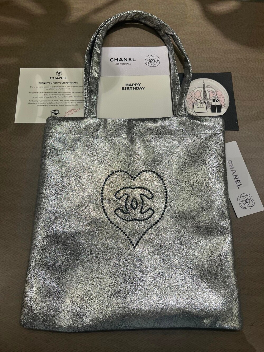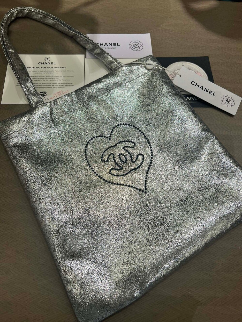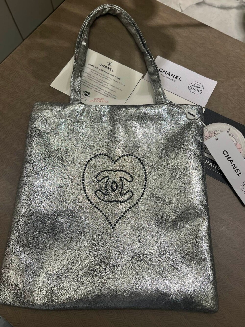 Chanel Staff-Only Tote Bag An exclusive tote designed for internal use by Chanel employees (UNIFORM-exclusive source). This vintage-style, minimalist Chanel bag exudes a refined and sophisticated feel. Crafted from durable mixed leather, it is built to last and highly practical. The spacious interior makes it perfect for daily commuting or casual outings. The silver-toned color enhances its retro charm,making it a perfect match for both formal attire and relaxed outfits.