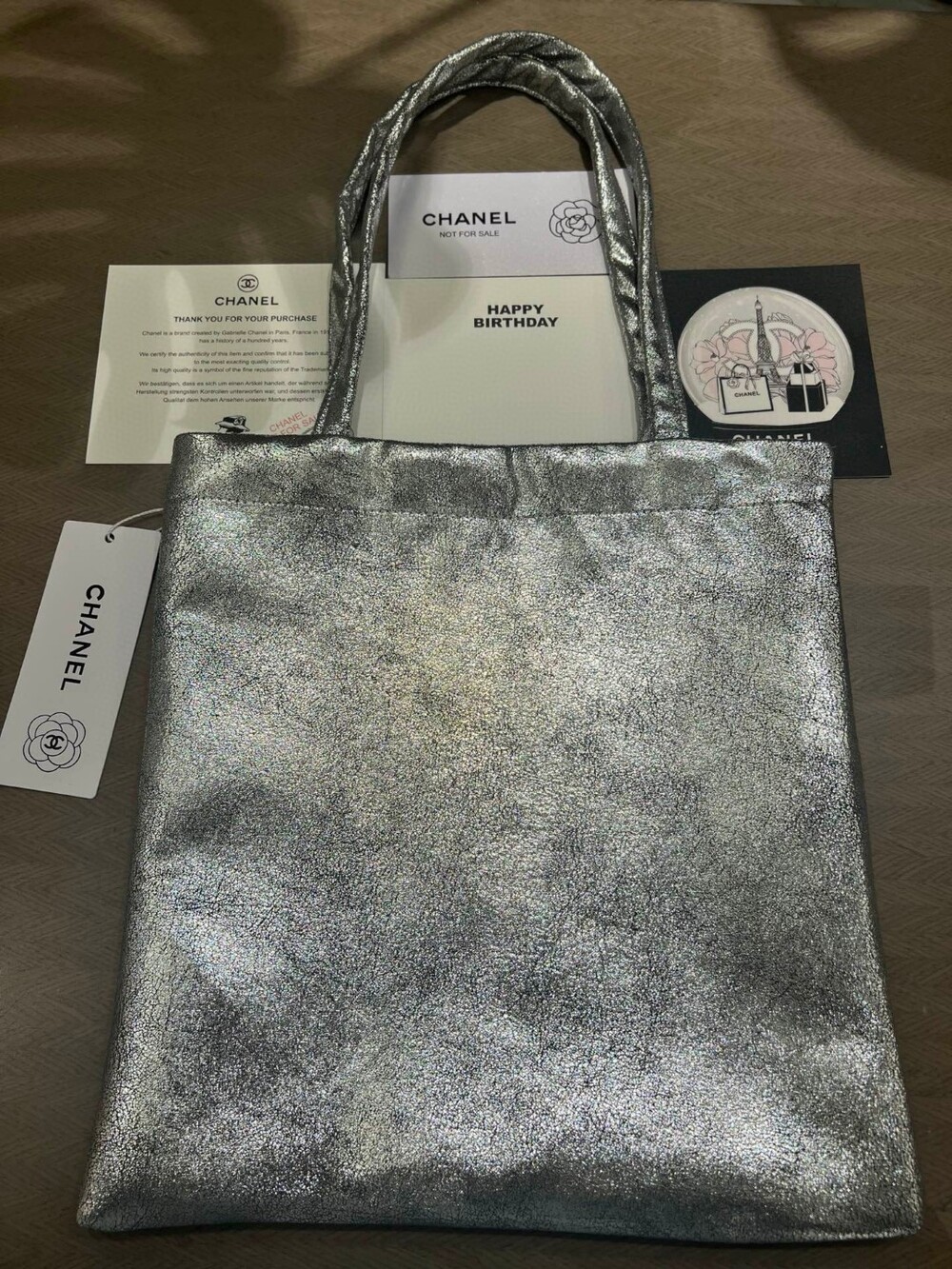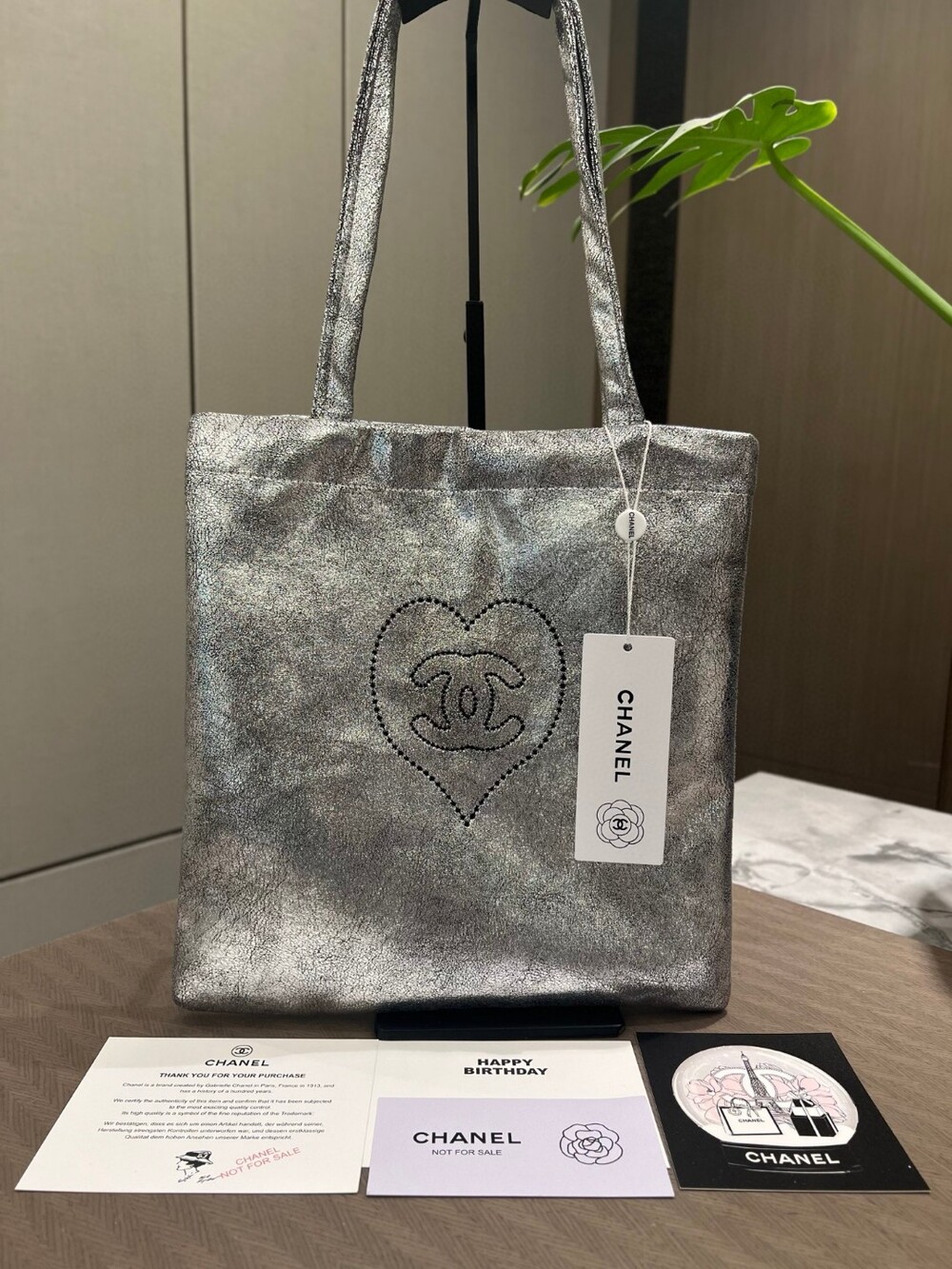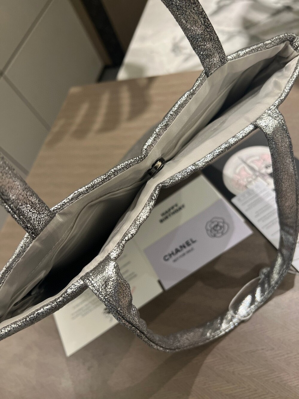 Chanel Staff-Only Tote Bag An exclusive tote designed for internal use by Chanel employees (UNIFORM-exclusive source). This vintage-style, minimalist Chanel bag exudes a refined and sophisticated feel. Crafted from durable mixed leather, it is built to last and highly practical. The spacious interior makes it perfect for daily commuting or casual outings. The silver-toned color enhances its retro charm,making it a perfect match for both formal attire and relaxed outfits.