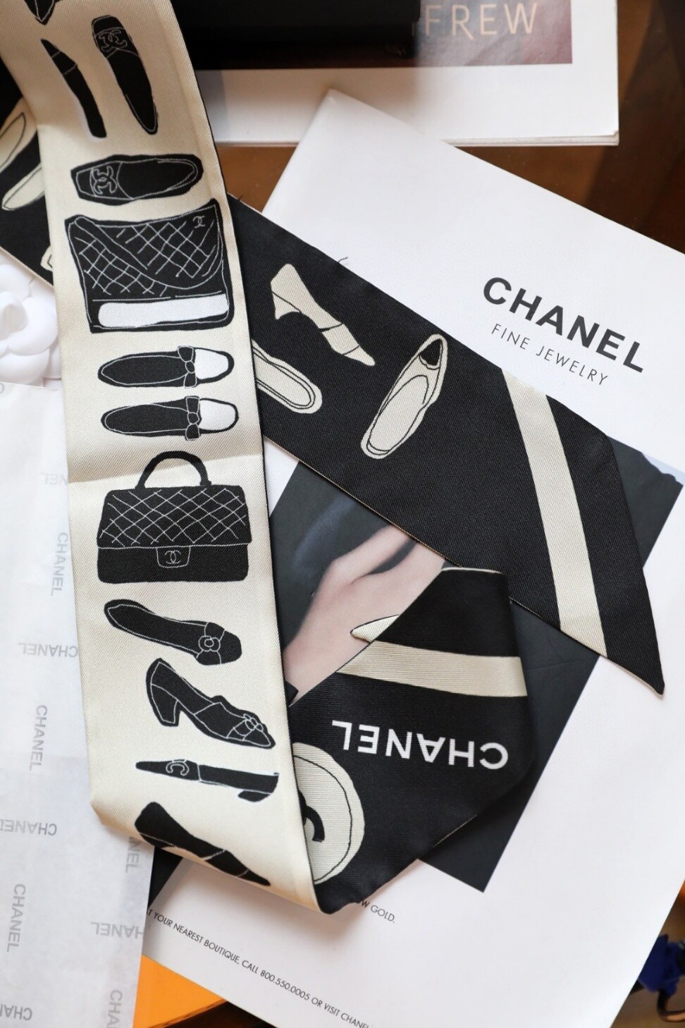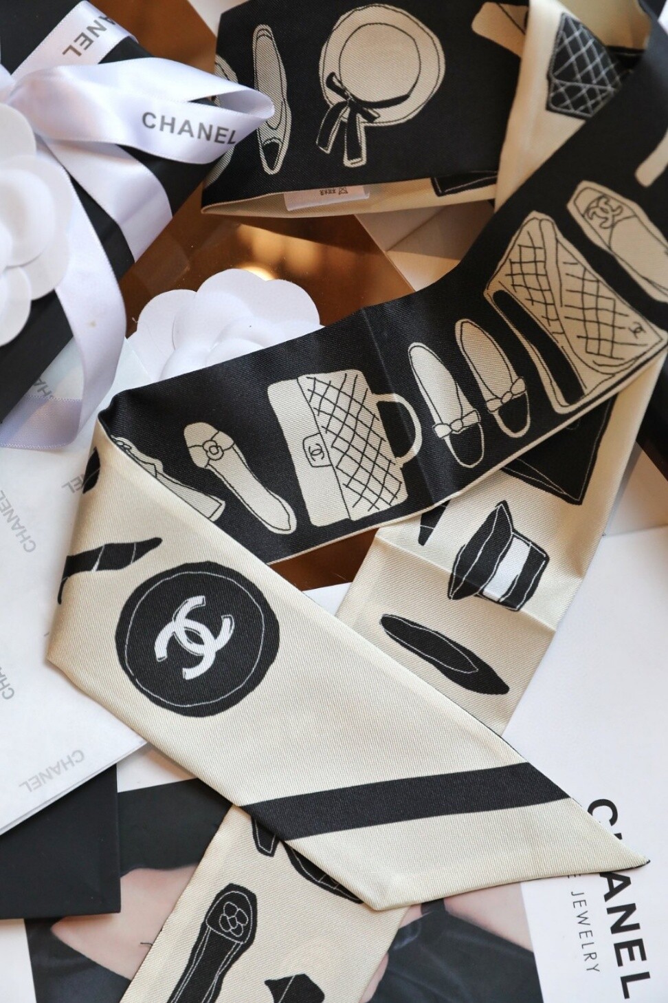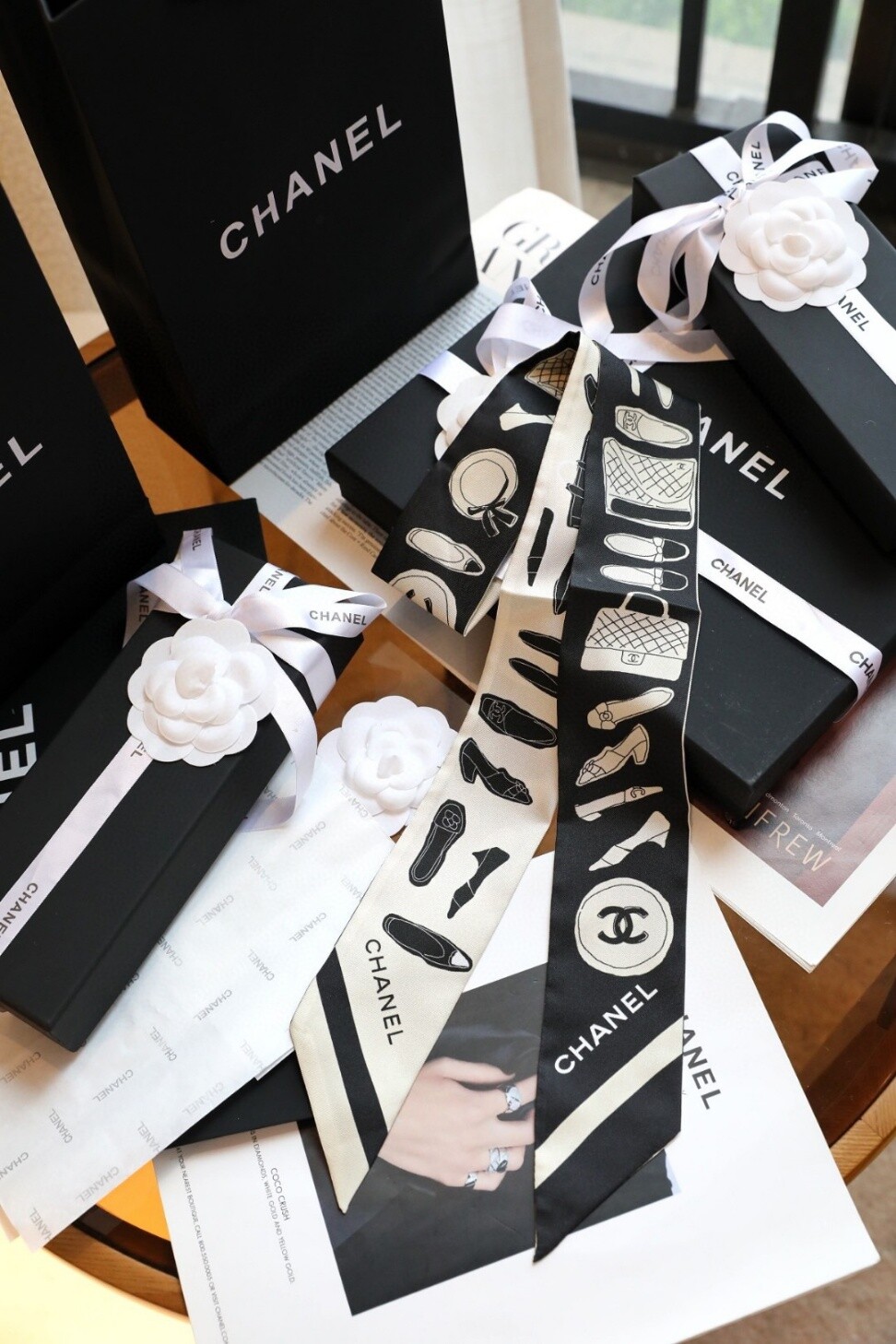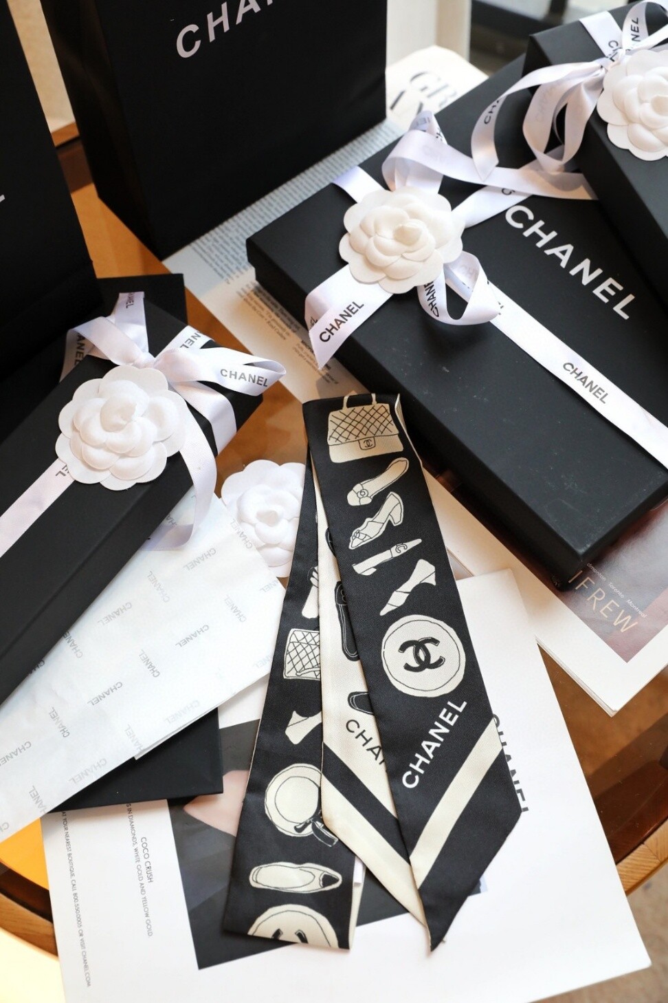 including gift box, original single weight 18mmm twill silk printing, 𝐂𝐡𝐚𝐧𝐞𝐥 hairband Specification: 120x6cm 100% silk 18mmmSuper beautiful camellia jacquard fabric with classic double C, the ultimate durable, all-around high-end feeling.It's never going to go out of fashion, the original premium exploded!Scarf, hairband, belt, bag chain Feel free to match, full point careful machine item