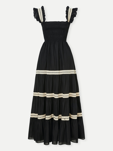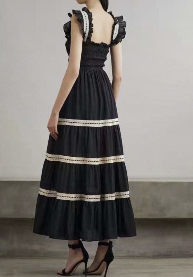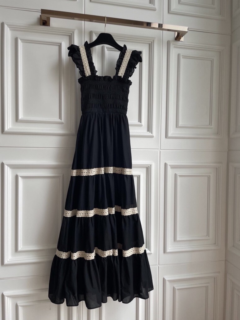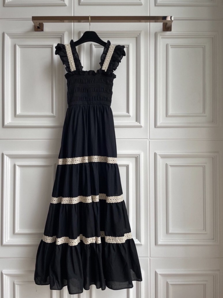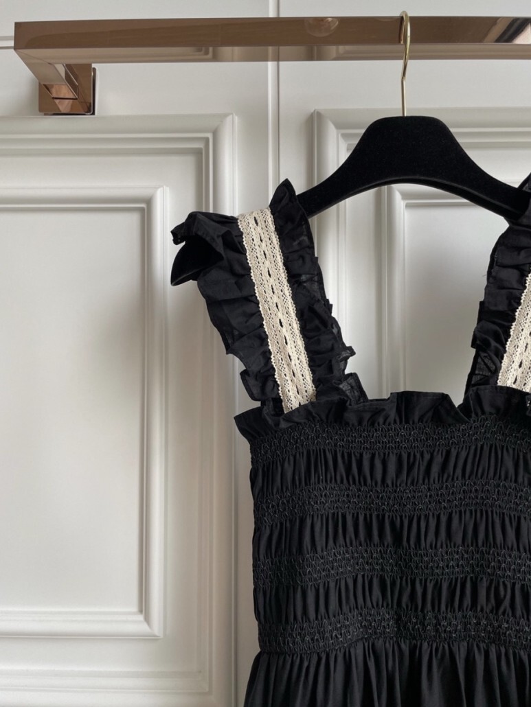 숄더 프릴이 귀여움을 주는 원피스이구요 가슴부분 전체 스모크밴딩으로 되어 있어서 체형에 맞게 늘어납니다🖤