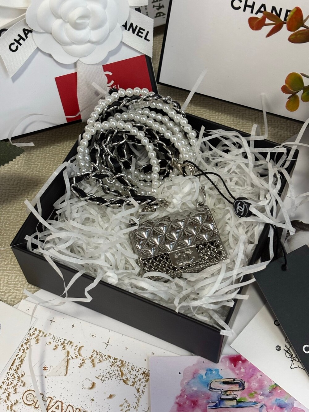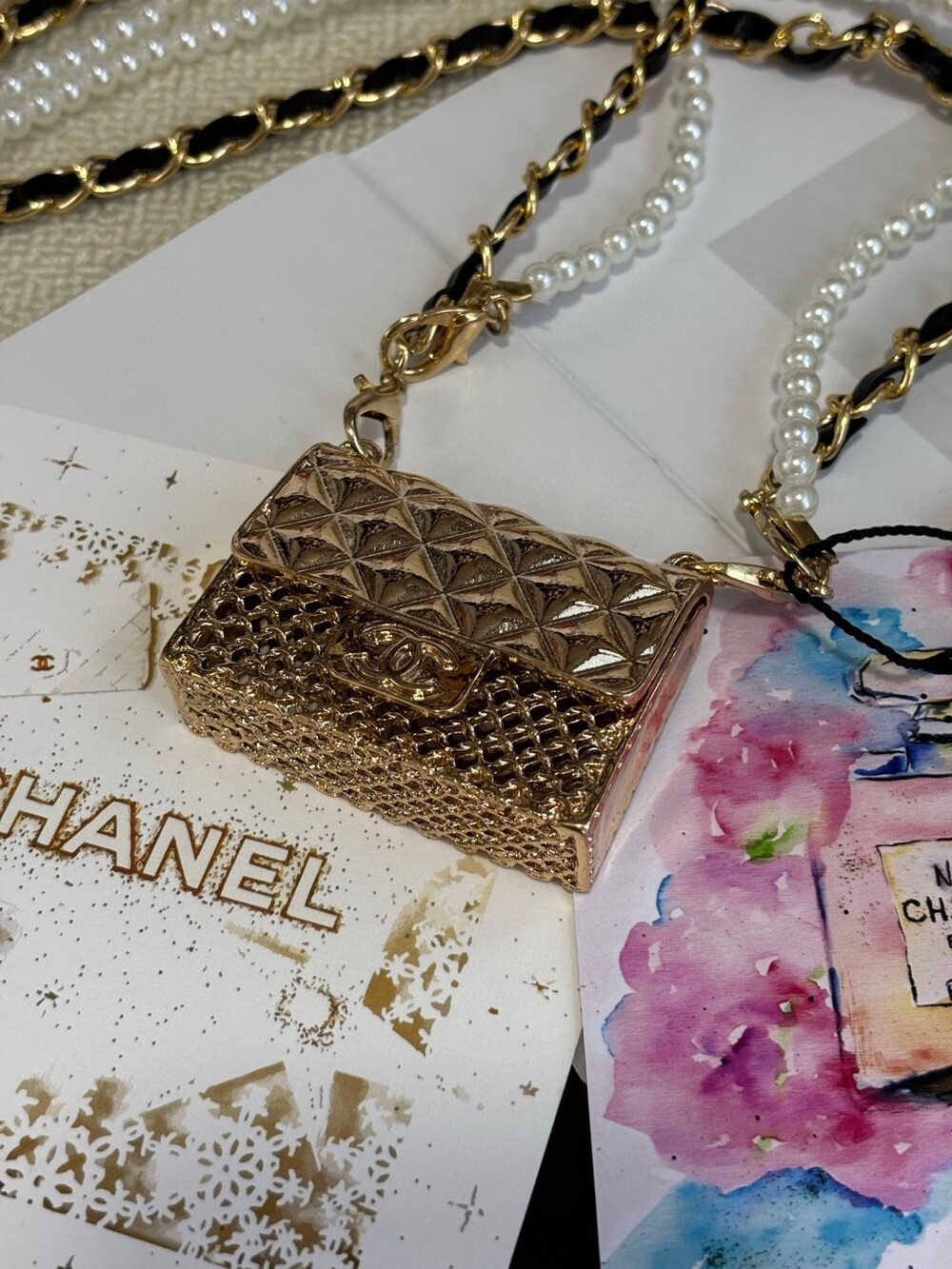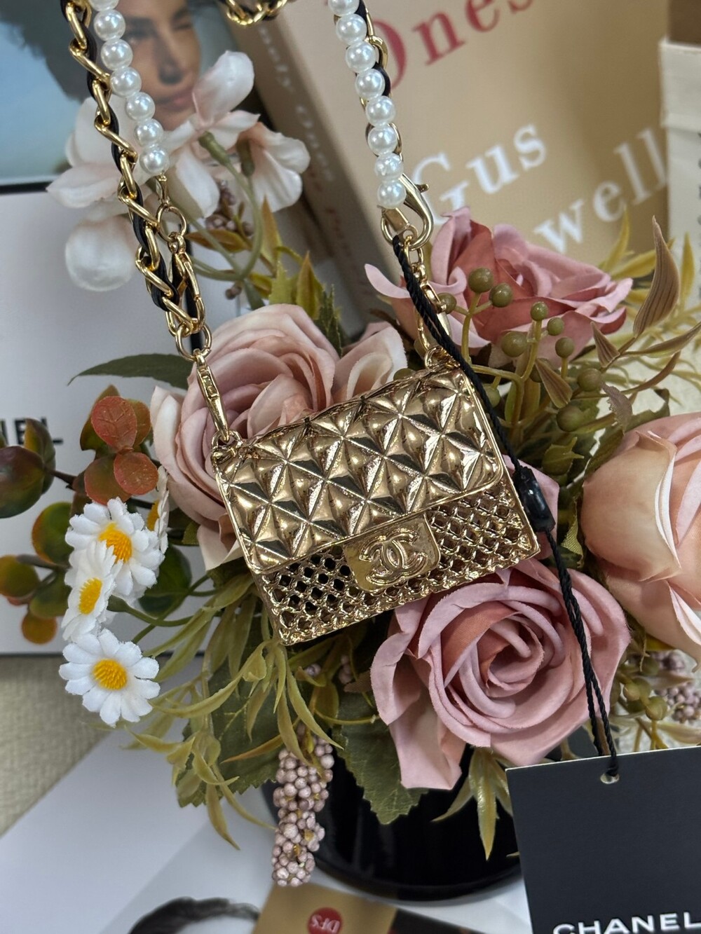 클래식한 퀼팅 디테일과 CC 장식이 어우러진미니 크로스백입니다.