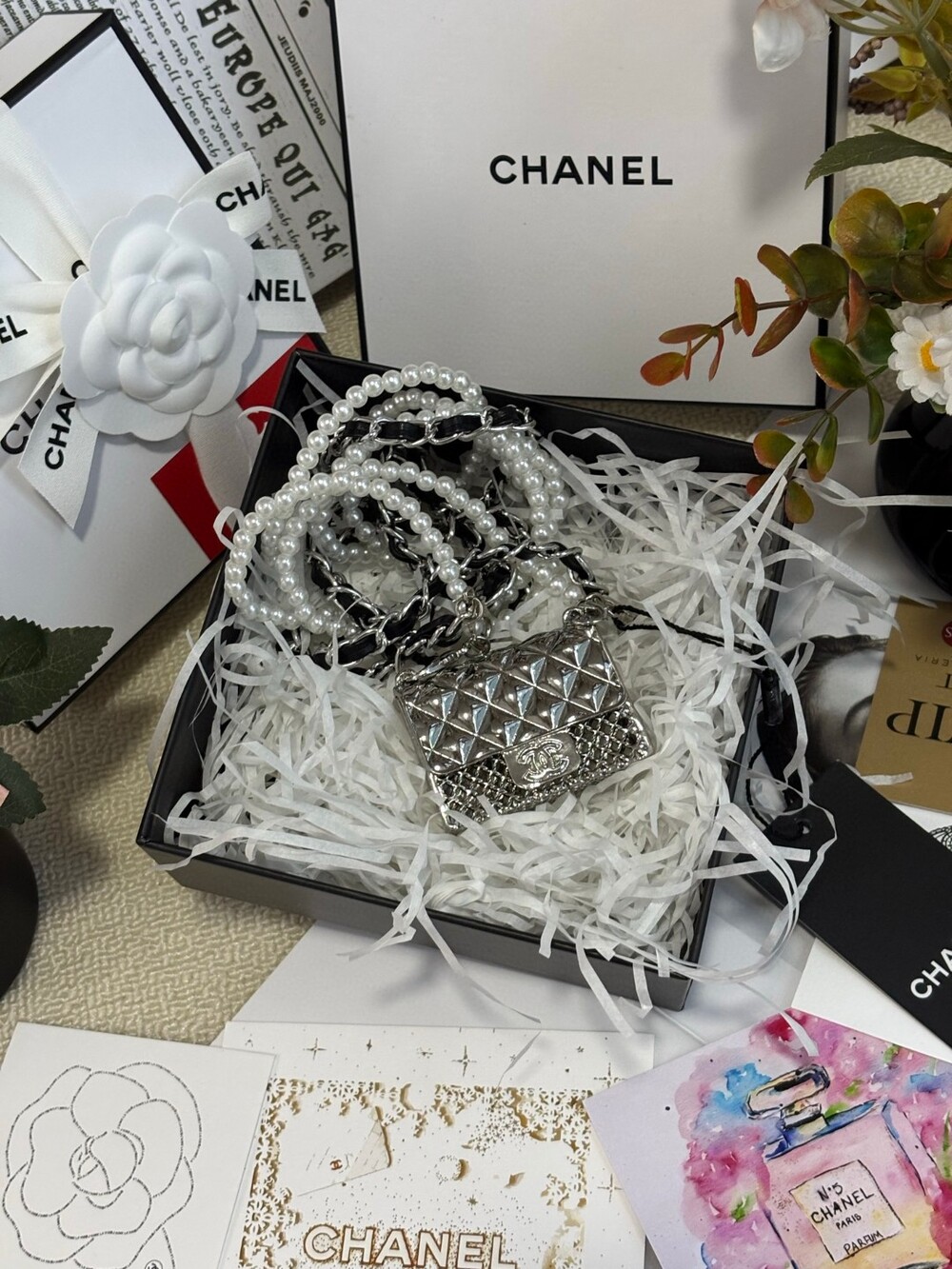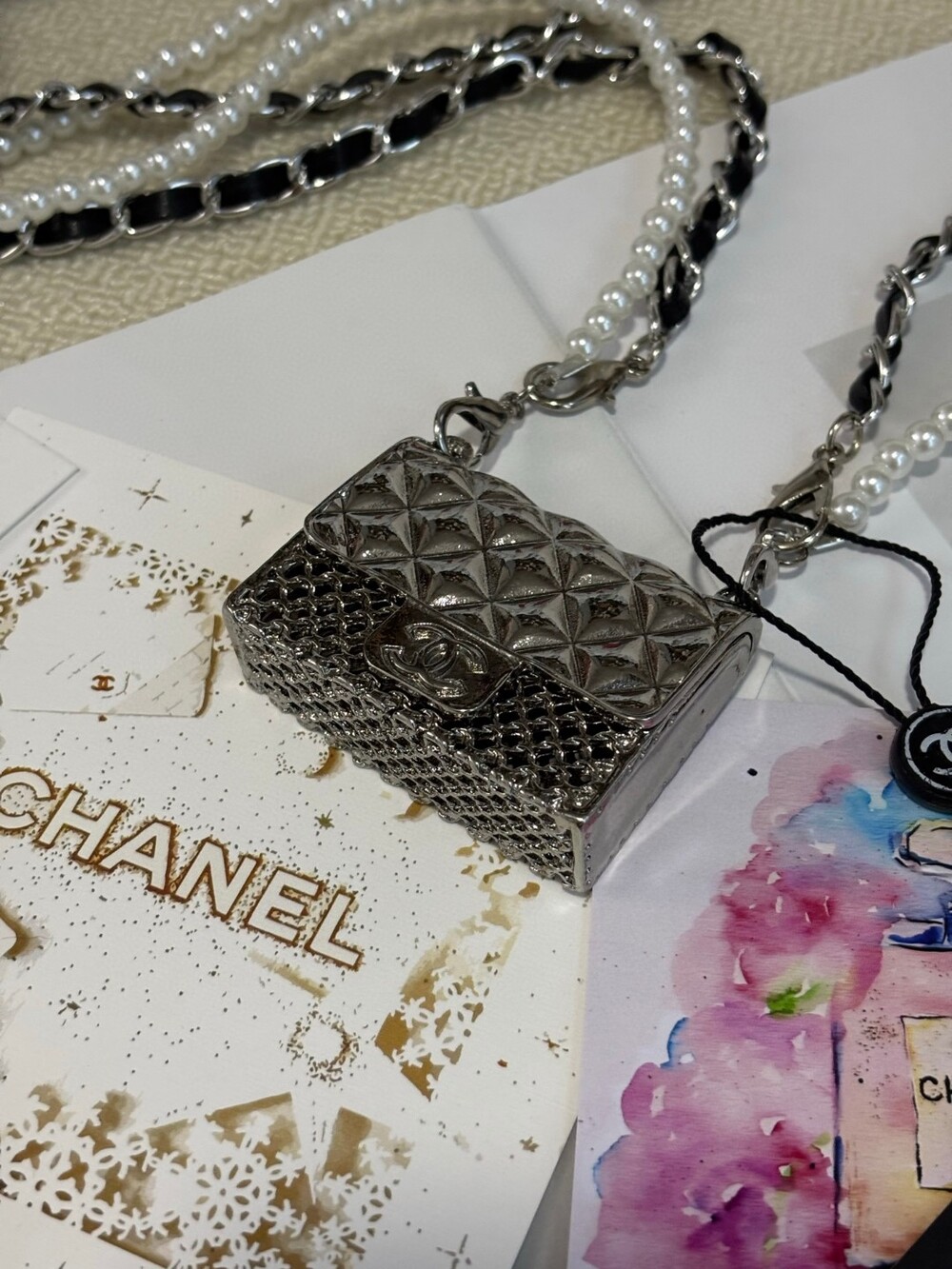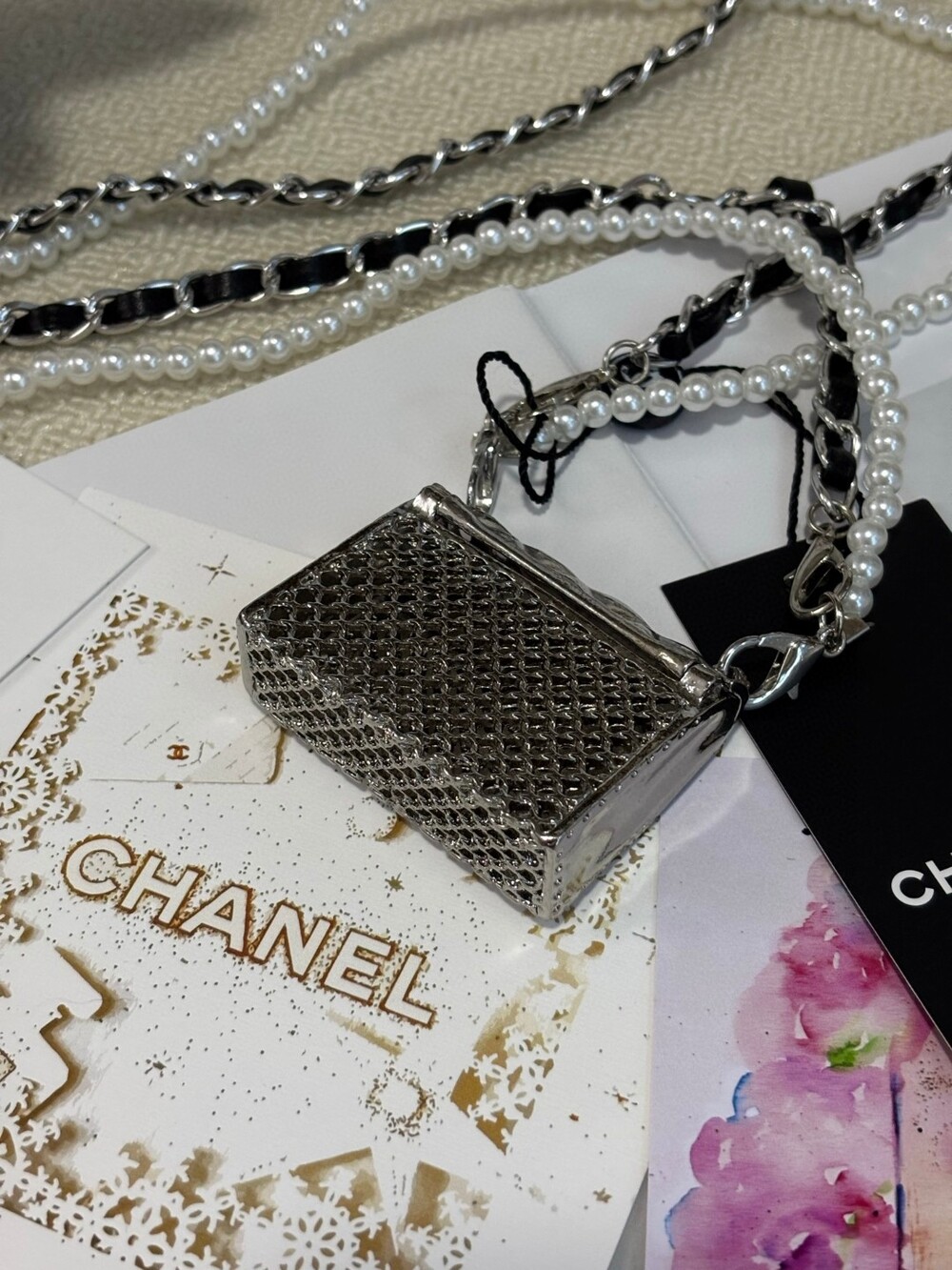 클래식한 퀼팅 디테일과 CC 장식이 어우러진미니 크로스백입니다.