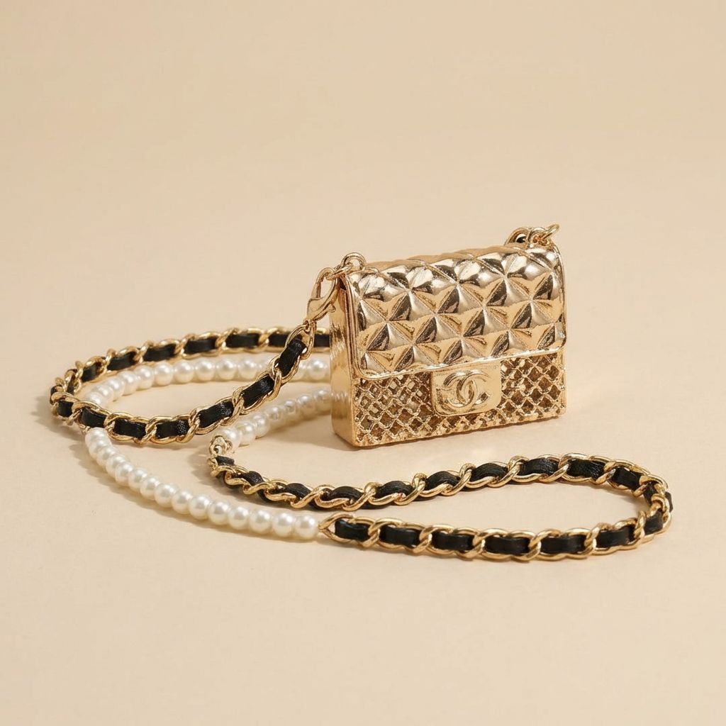 it can be styled as a delicate accent piece or worn as a statement detail on larger bags.