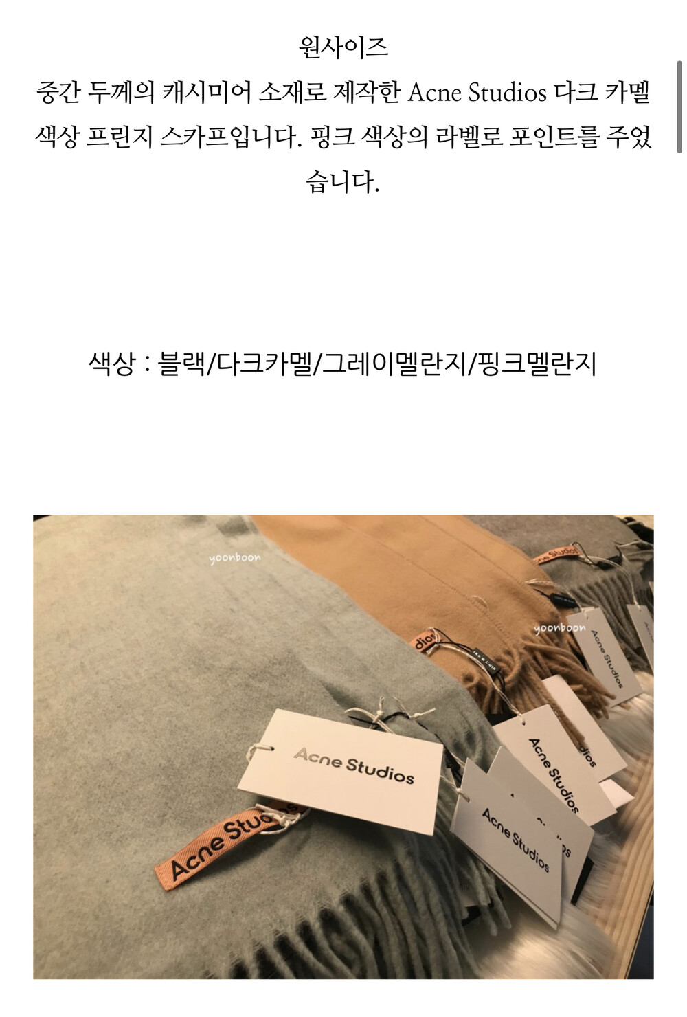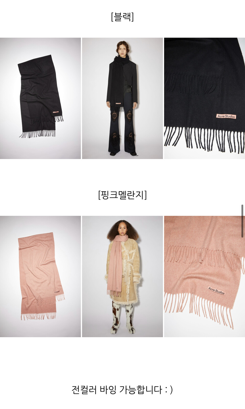 [영국 바잉] 아크네스튜디오 캐시미어 100% 머플러 / 블랙 / 다크카멜/ 핑크멜란지 / 그레이멜란지