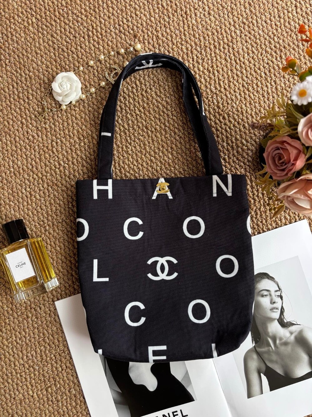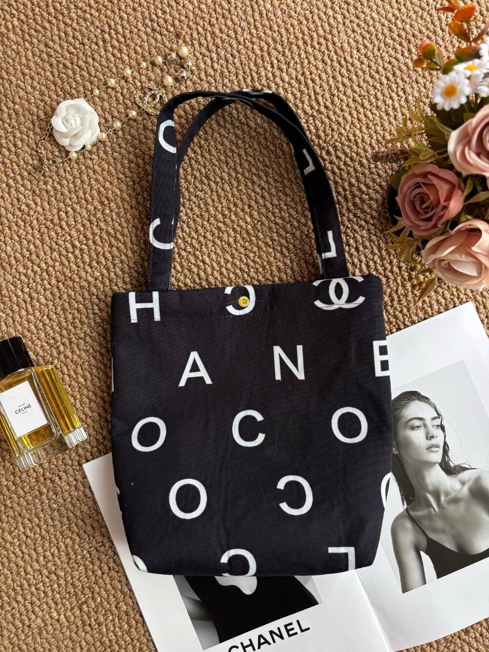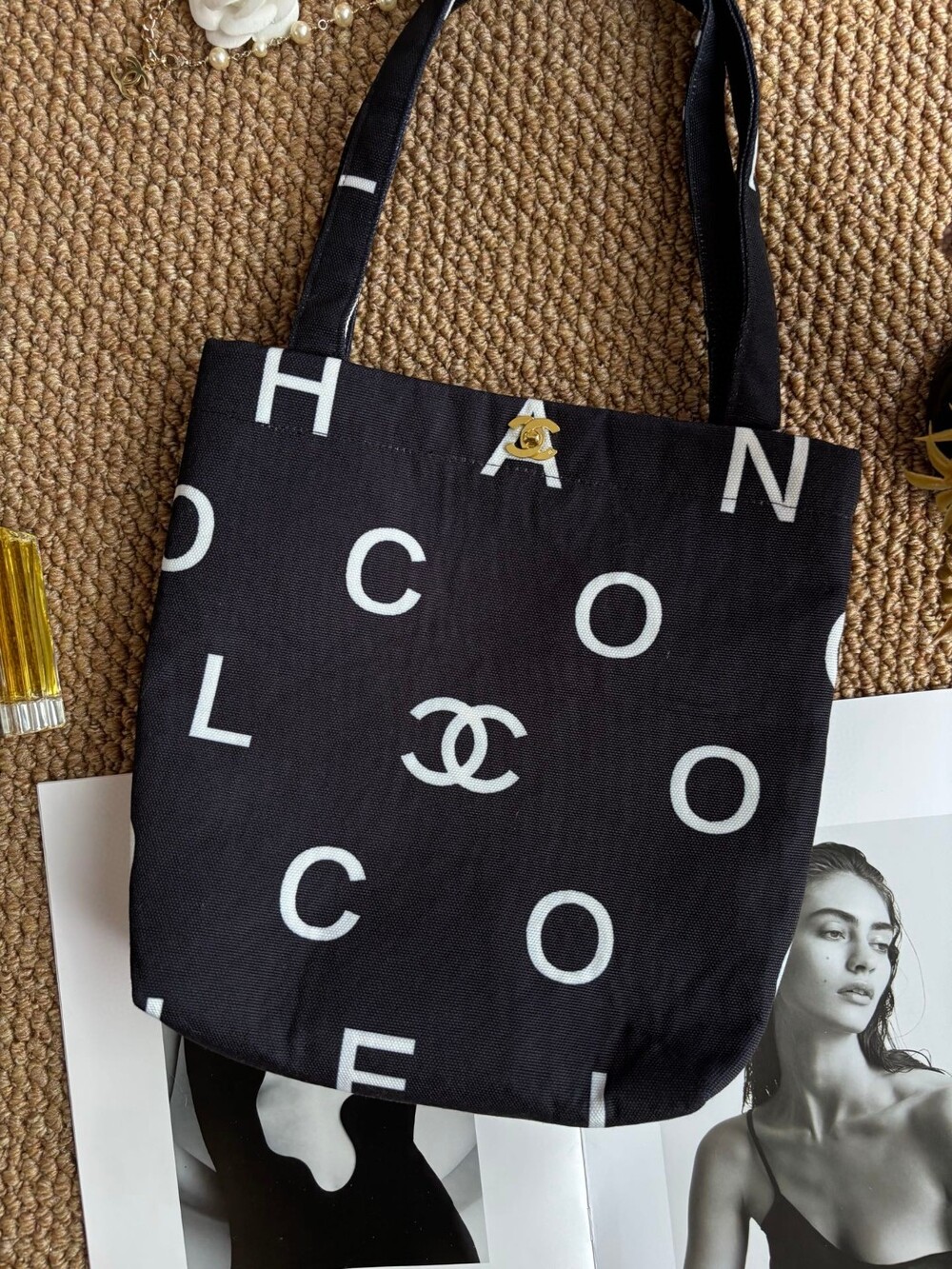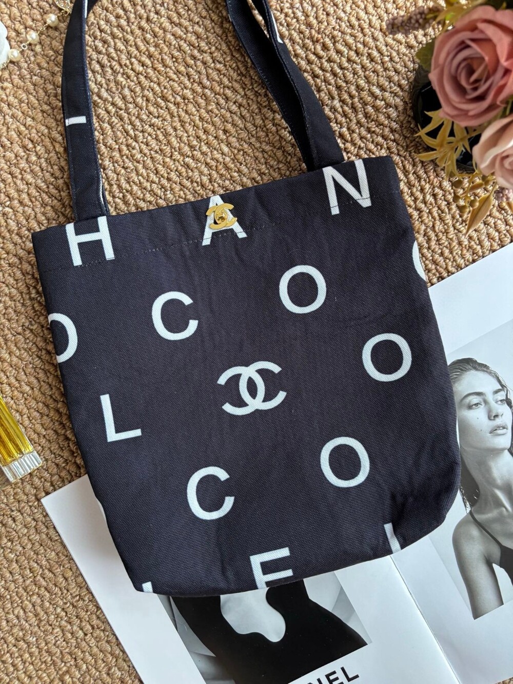 샤넬 금장 로고가 포인트인 캔버스 숄더백입니다.