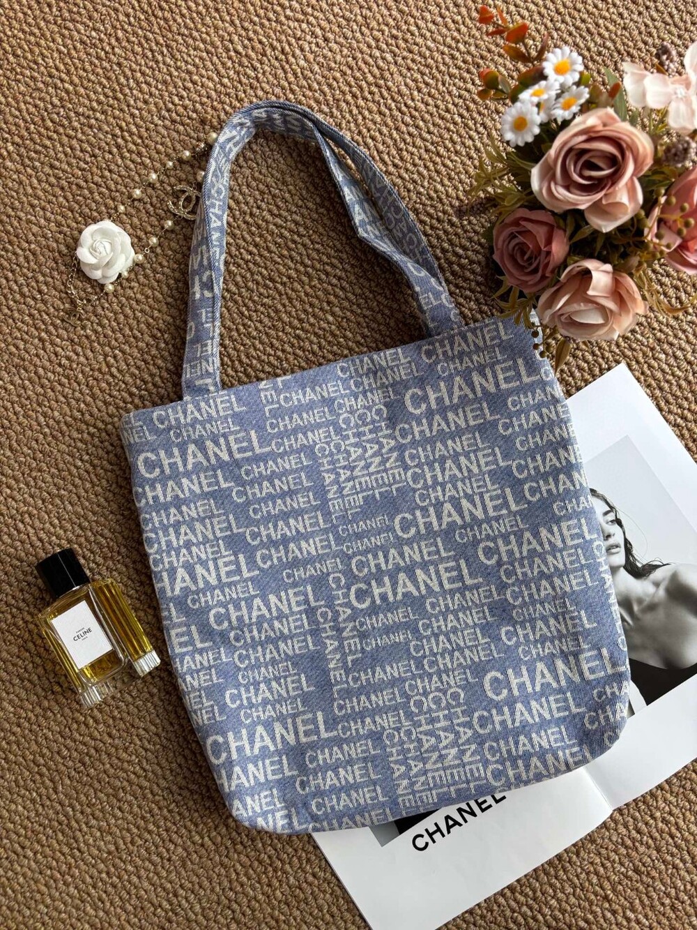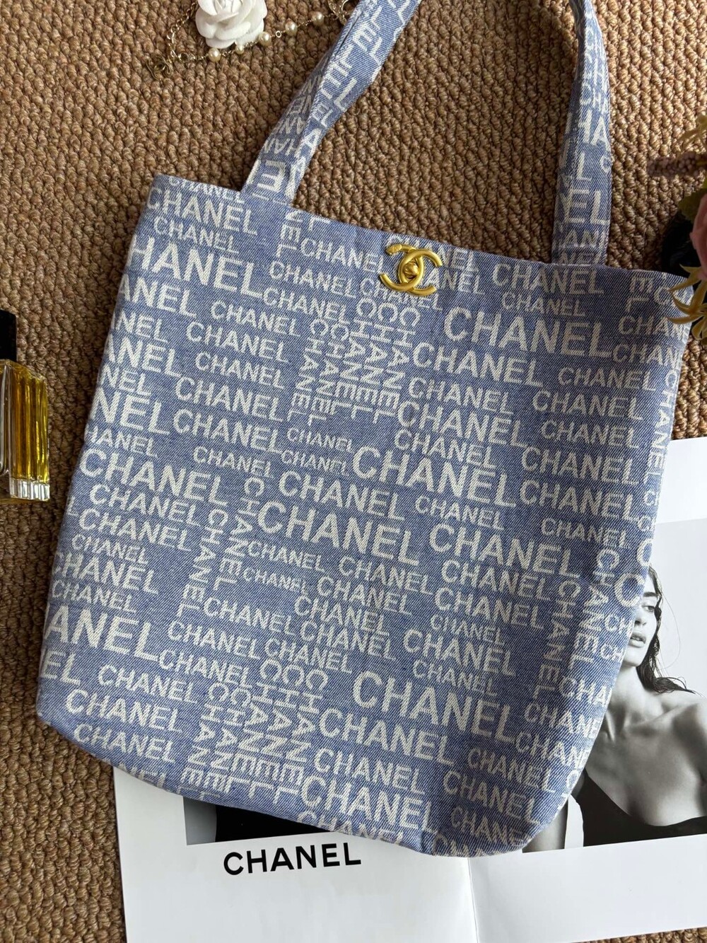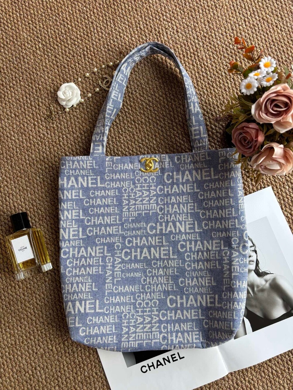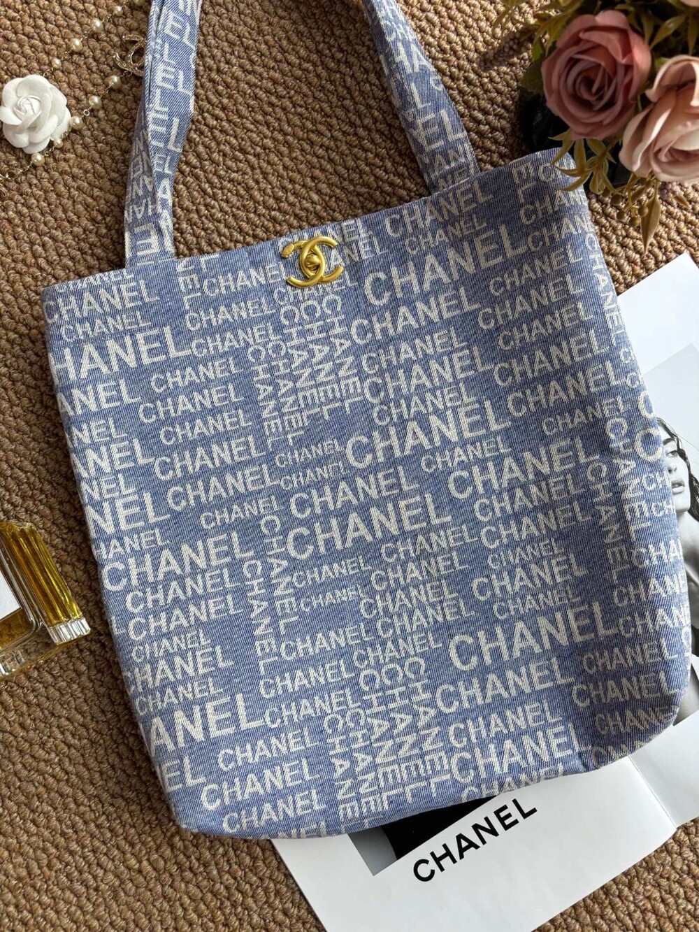 샤넬 금장 로고가 포인트인 캔버스 숄더백입니다.