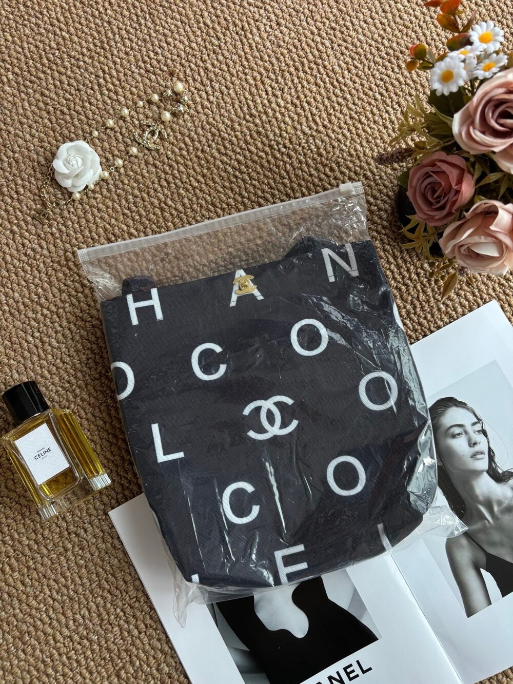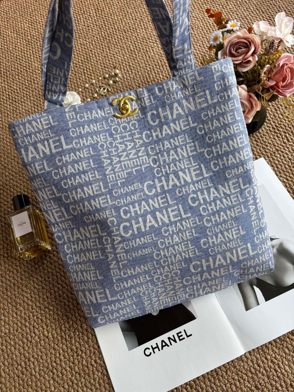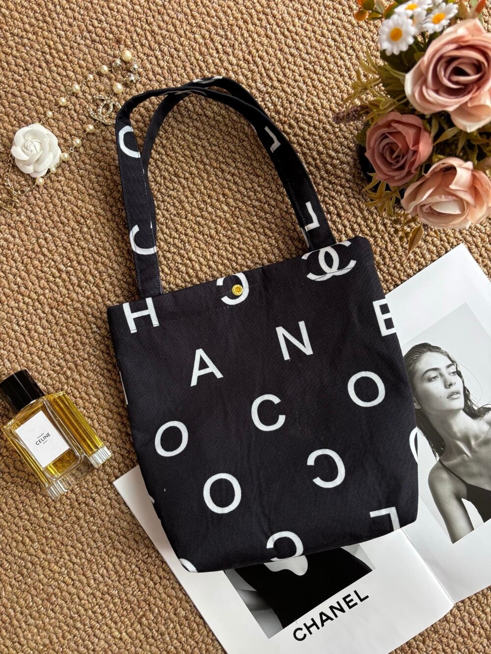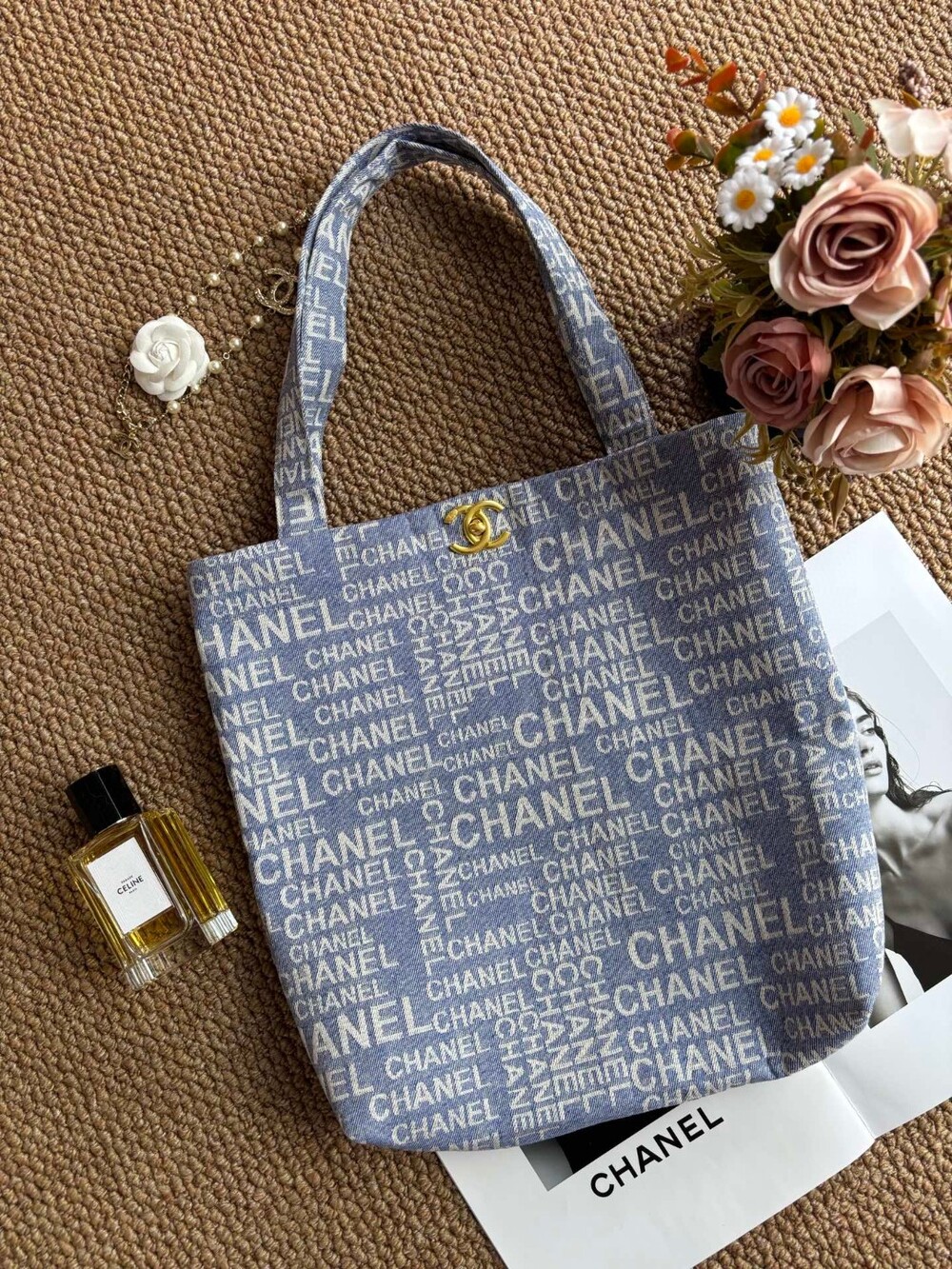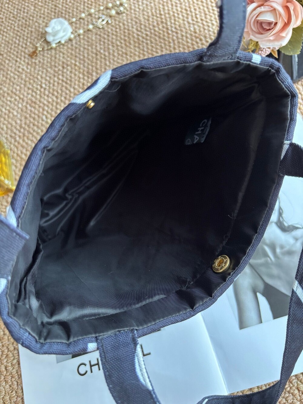 샤넬 금장 로고가 포인트인 캔버스 숄더백입니다.