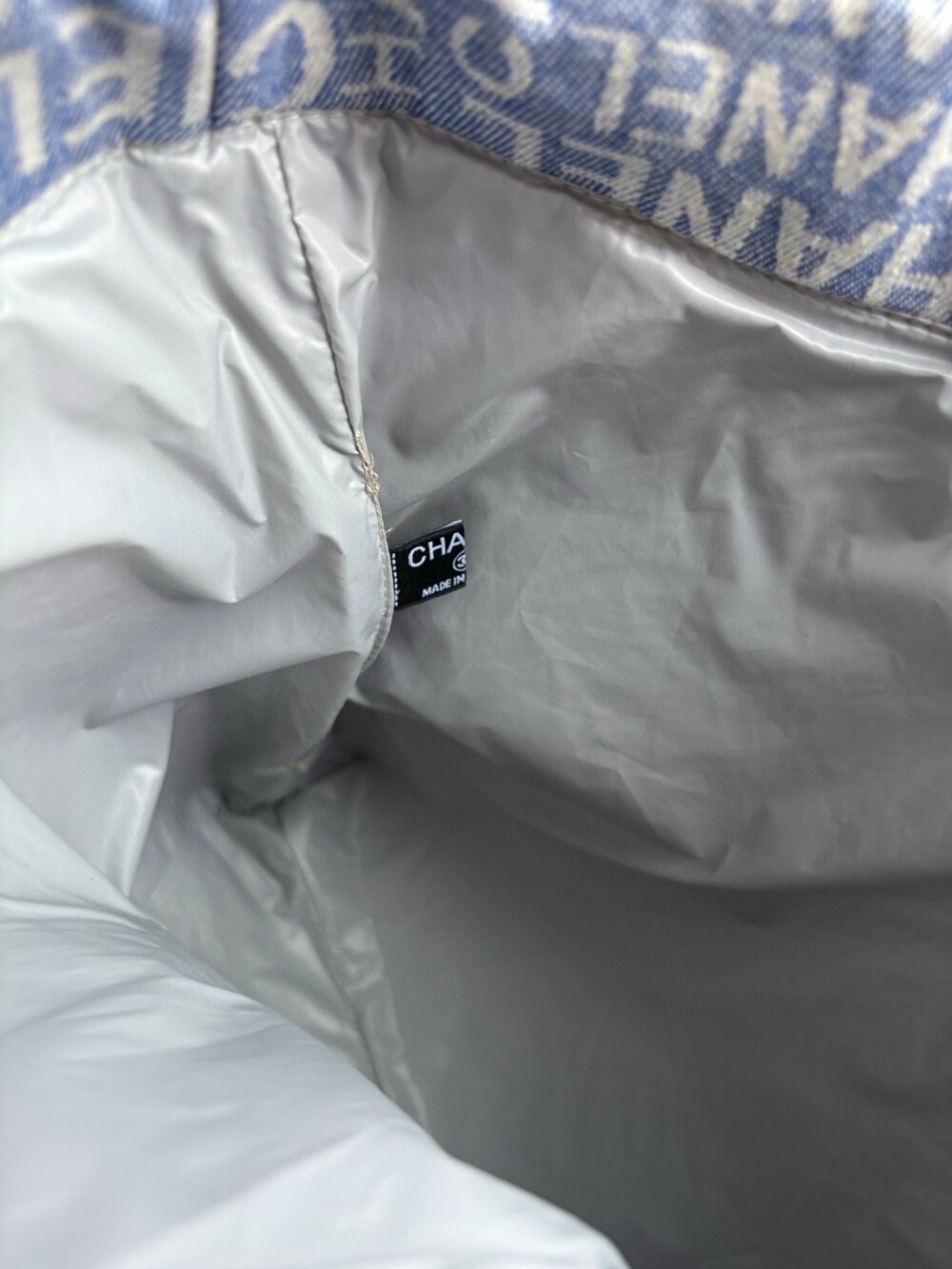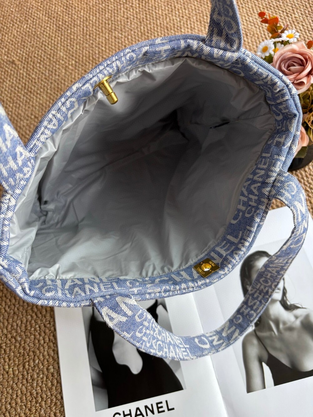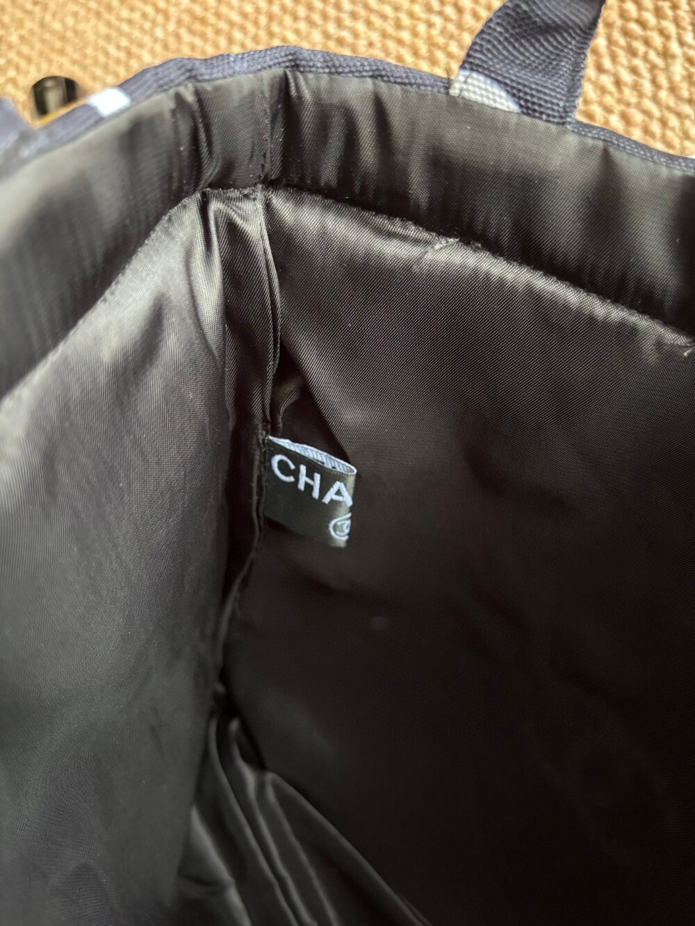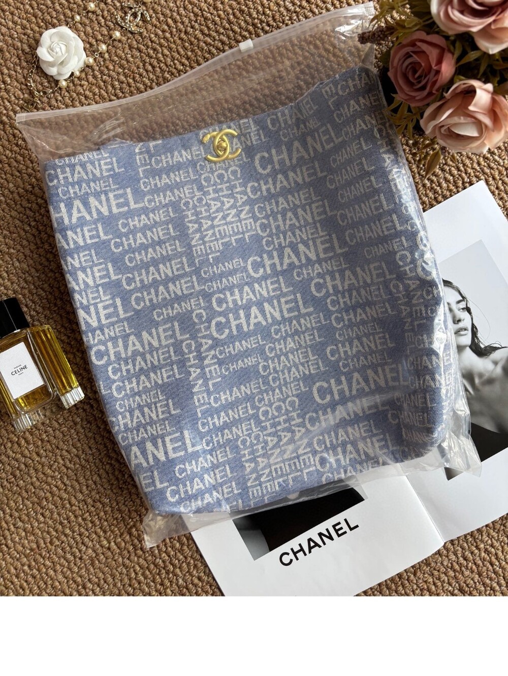샤넬 금장 로고가 포인트인 캔버스 숄더백입니다.