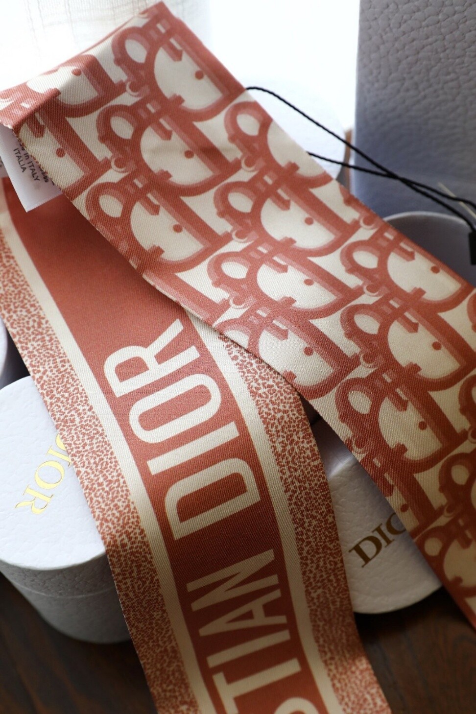 Cylinders Gift Box, New This Dior Montaigne Mitzah hairband silk scarf is inspired by the iconic Dior boutique address, classic with vintage letters and stripes, long, pointed ends and jacquard on the back with the "CHRISTIAN DIOR" logo Can be matched with a variety of fashion styles, whether tied to the neck, wrist or handbag, is the ideal finishing touch100% mulberry silk with "CHRISTIAN DIOR" logo on the back with a jacquard pattern at both ends.Dimensions: 6 x 105 cm