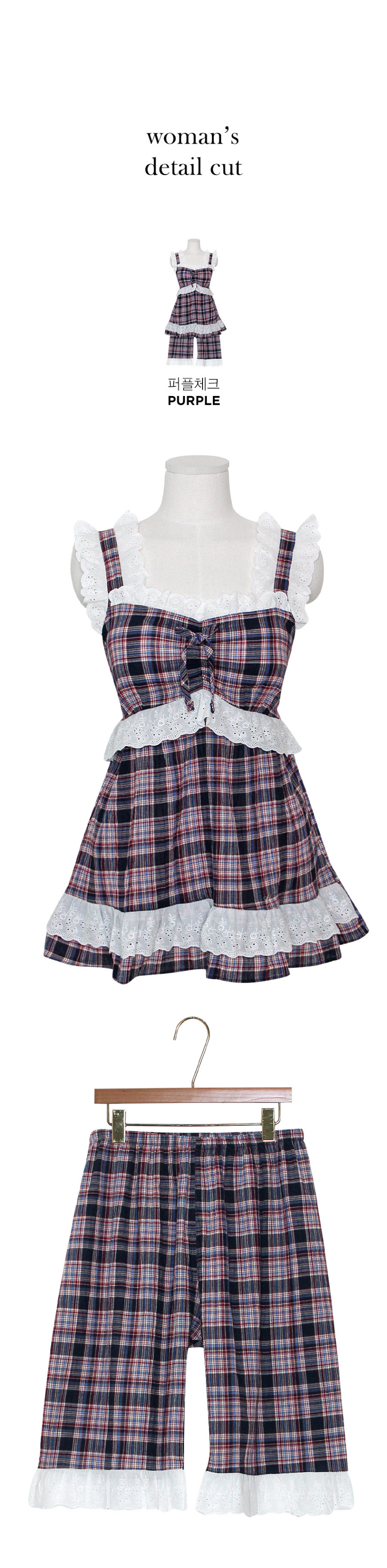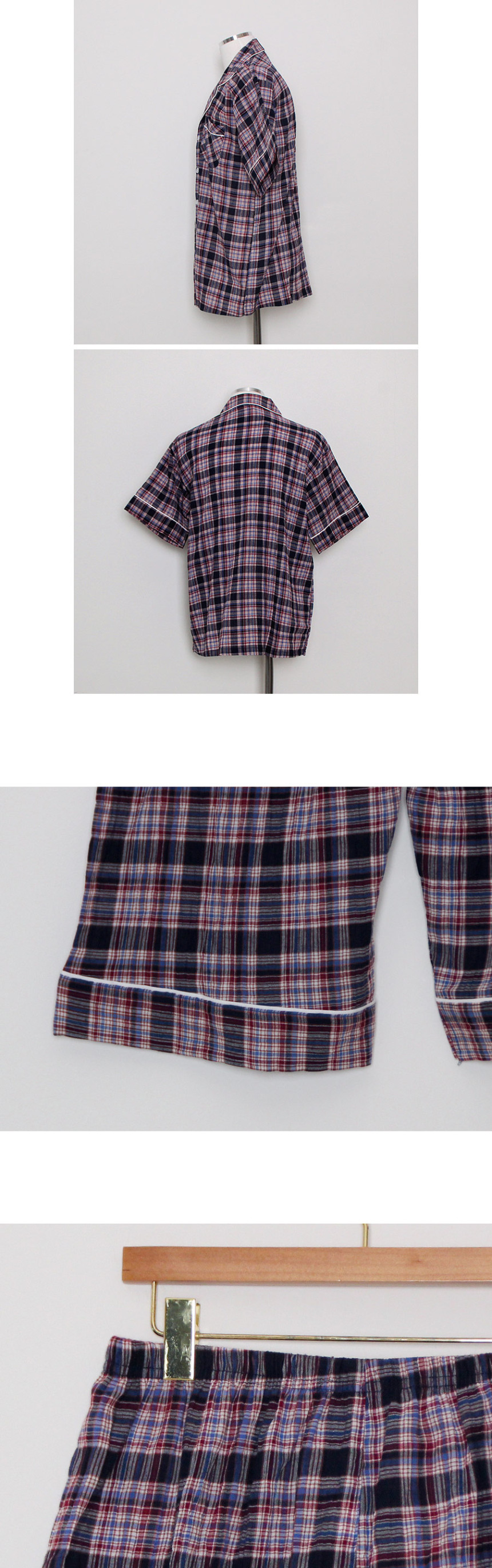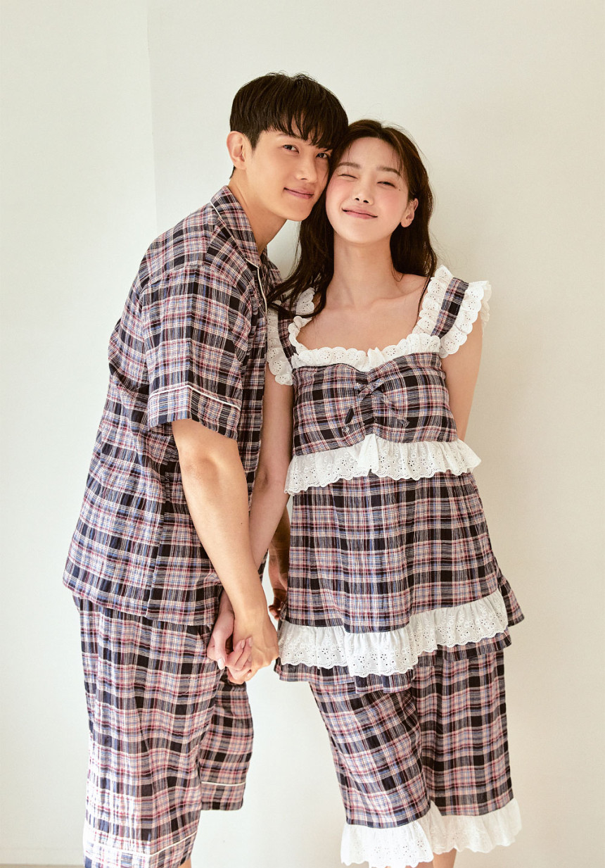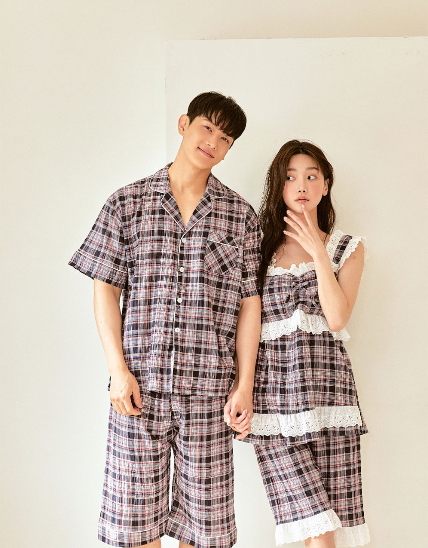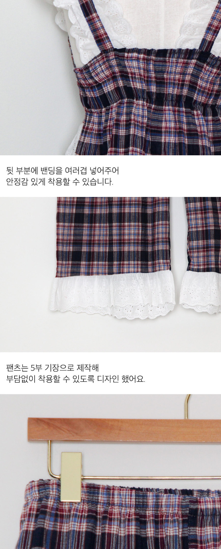 여성 남성 커플 베리체크 원피스 투피스 캡내장 수면 잠옷