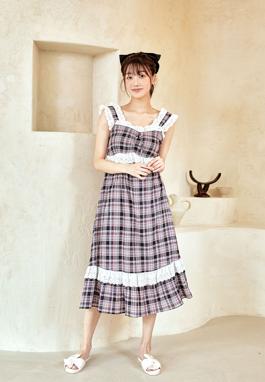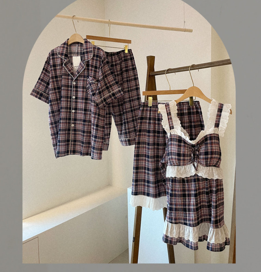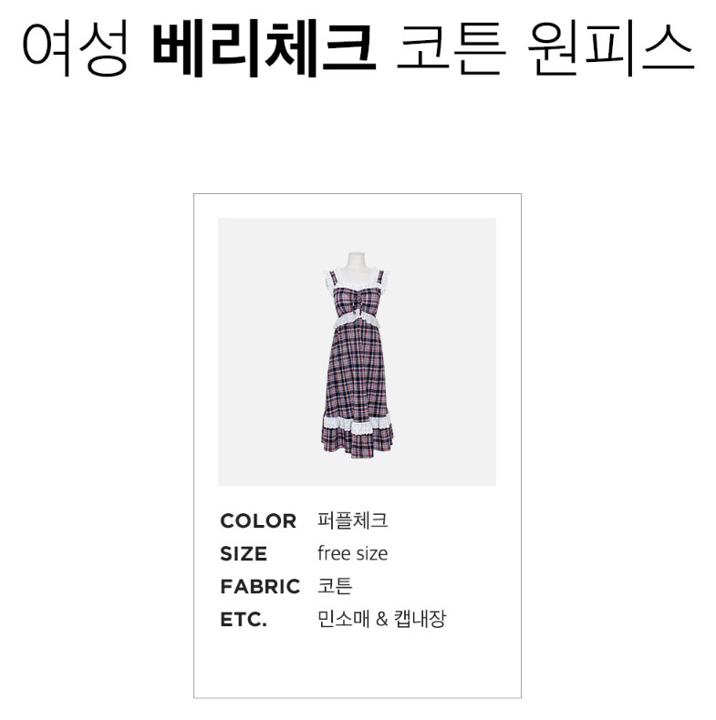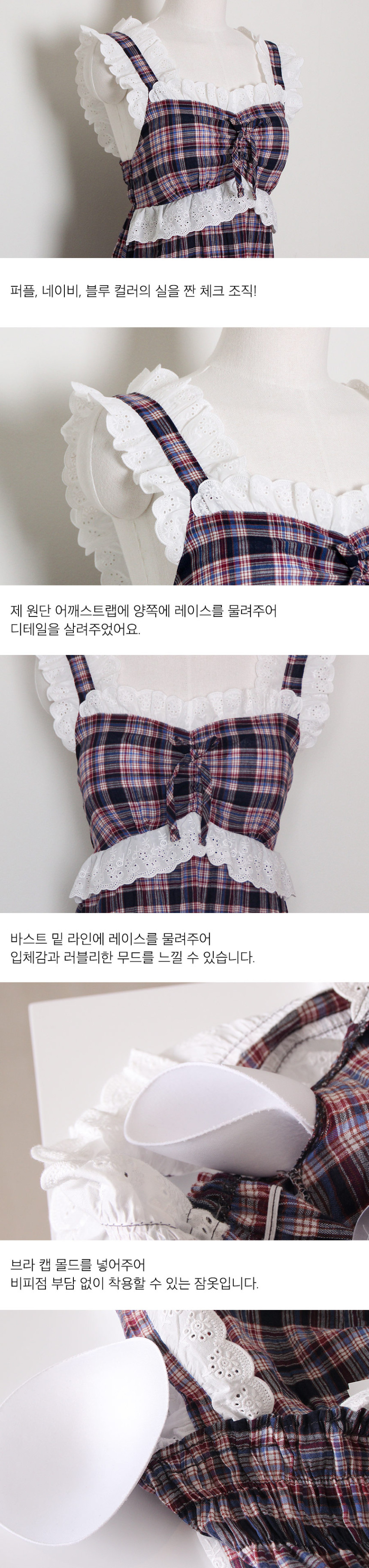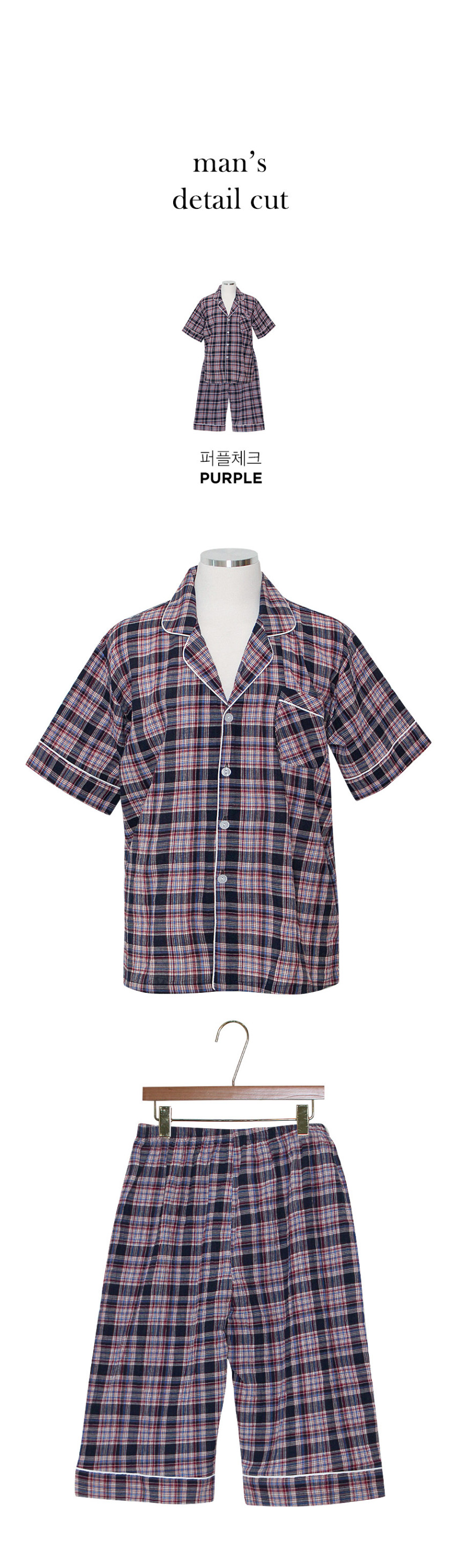 여성 남성 커플 베리체크 원피스 투피스 캡내장 수면 잠옷