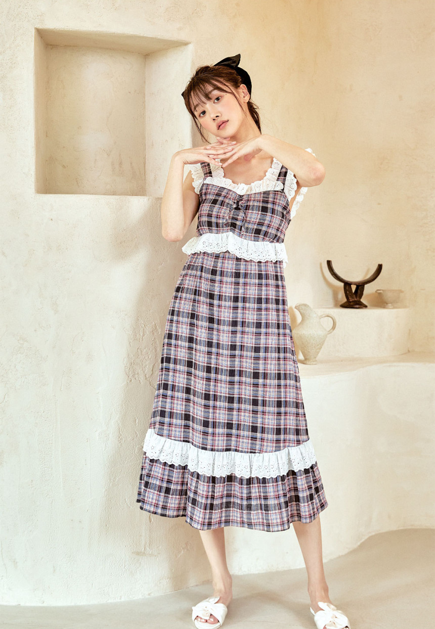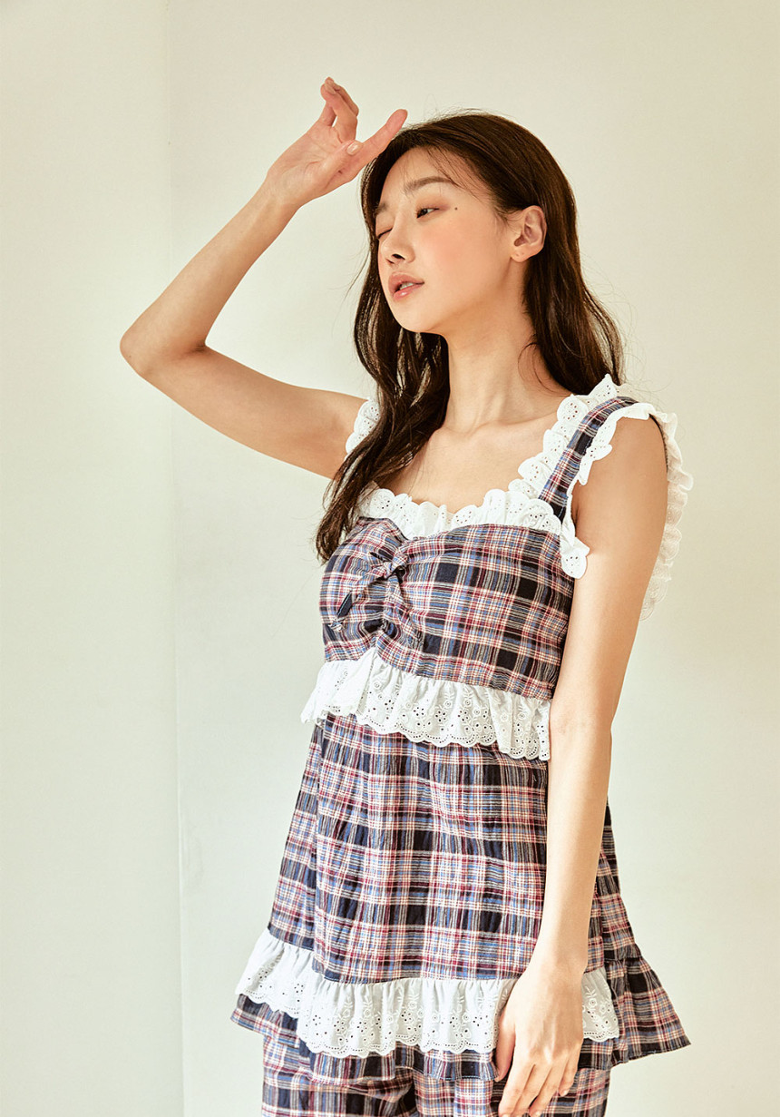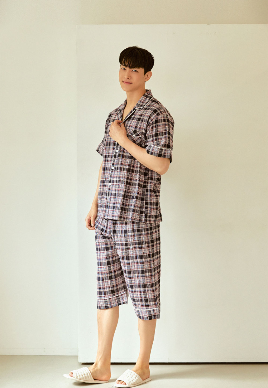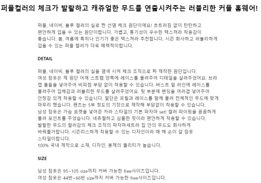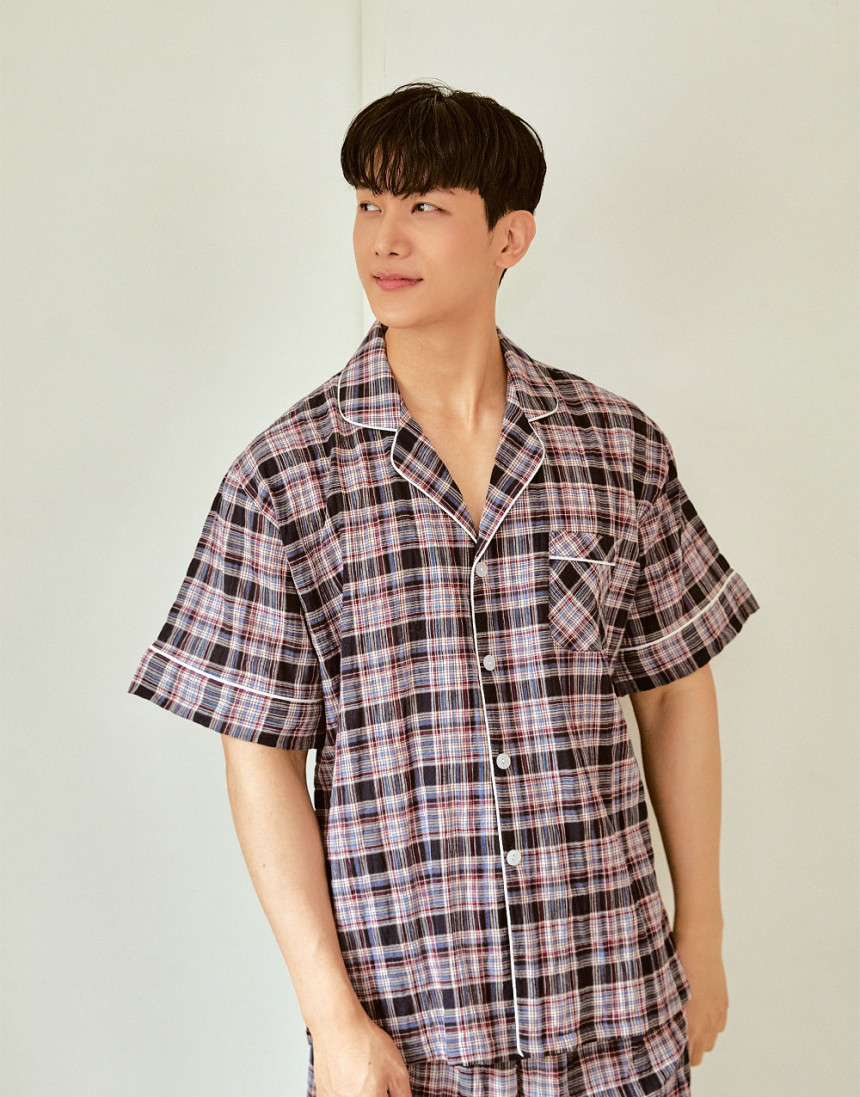 여성 남성 커플 베리체크 원피스 투피스 캡내장 수면 잠옷