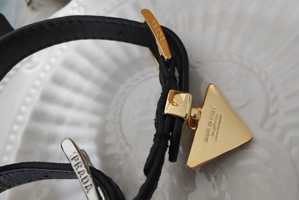 The Triangular Metal Logo is Visible!Classic black with Prada Triangle Logo