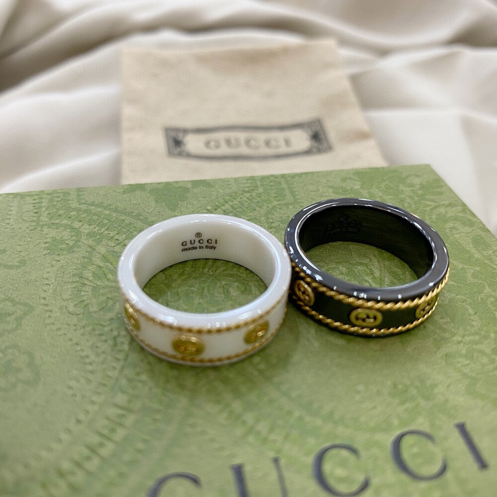 Gucci counter pointspackage/ Gucci lcon series gold interlocking double G couple ring.