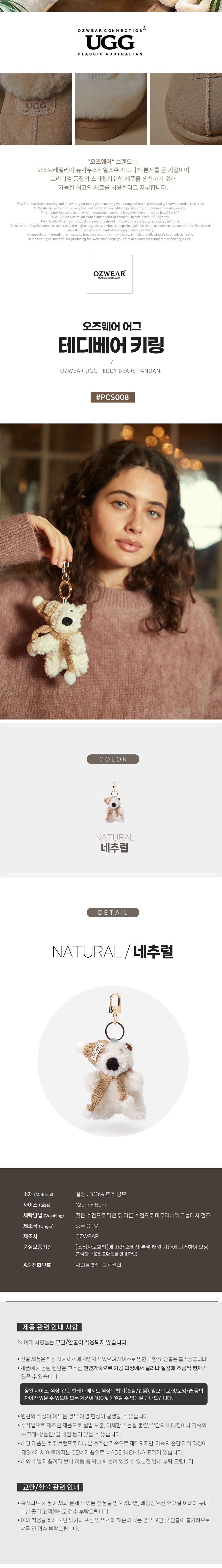 [무료배송] 호주정품 어그 테디베어 키링 UGG