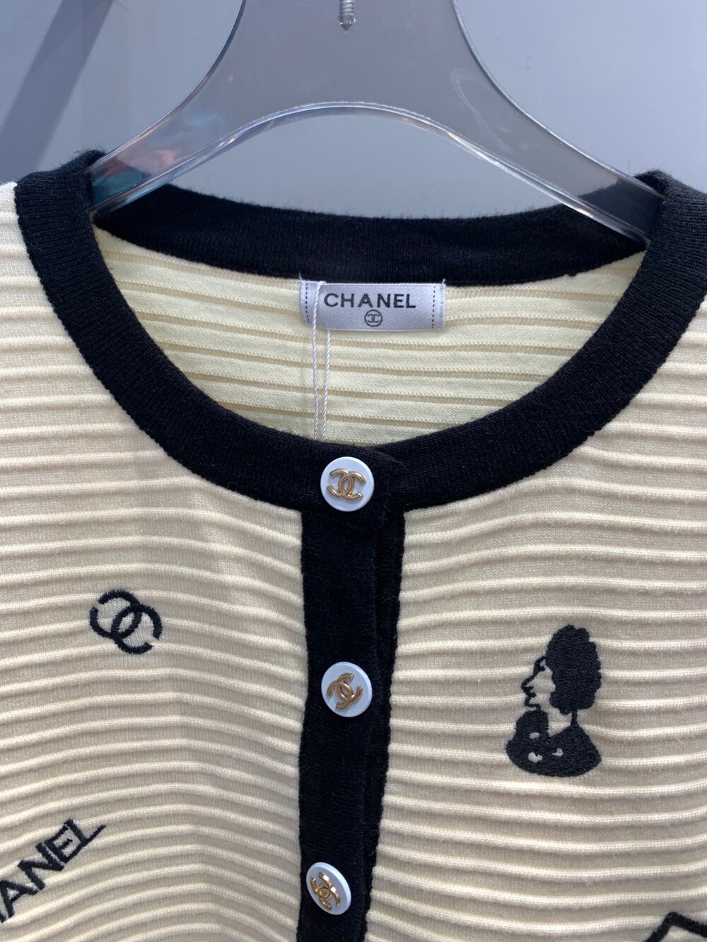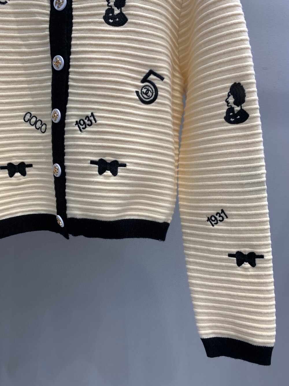 잘 드러나는 귀여운 아이콘들이 수놓아져있는 자수 가디건 입니다 : )