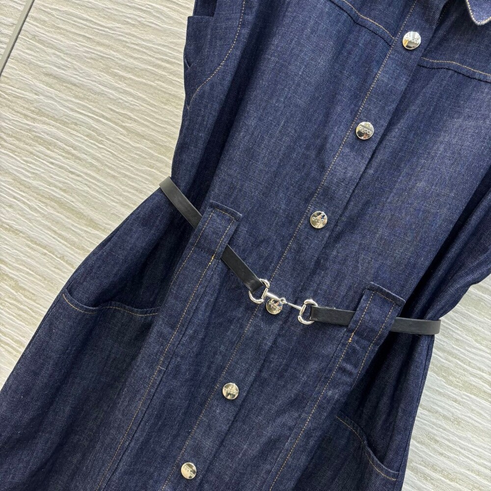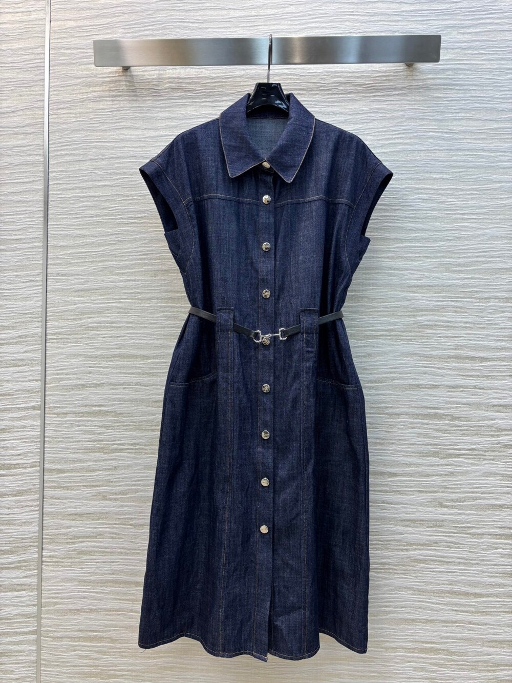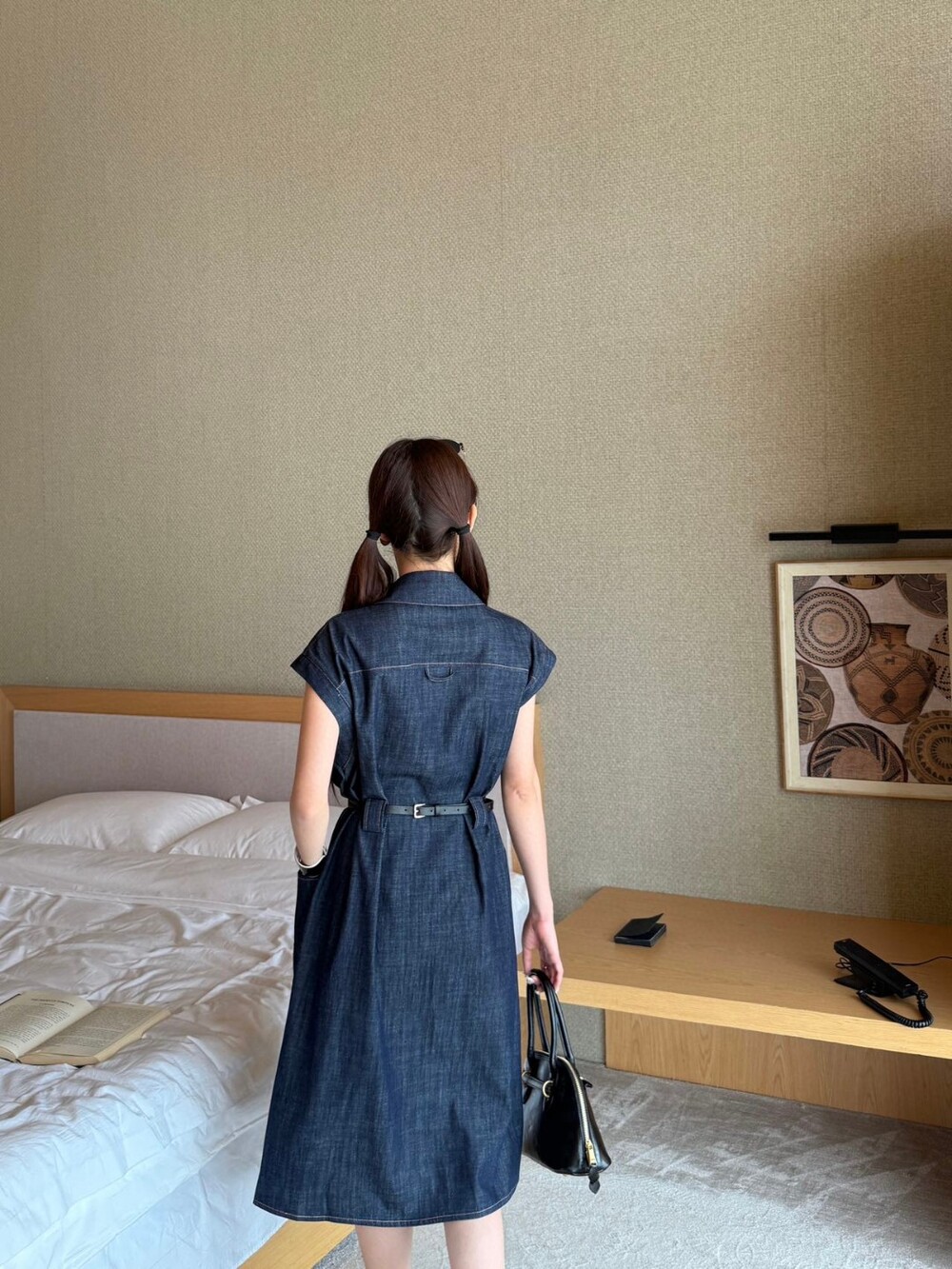 클래식한 진청 컬러의 슬리브 데님 원피스 입니다