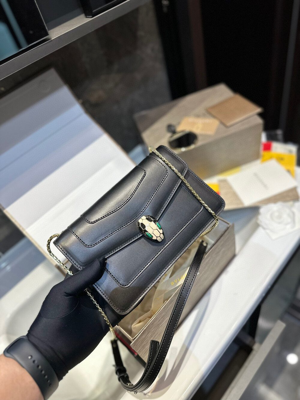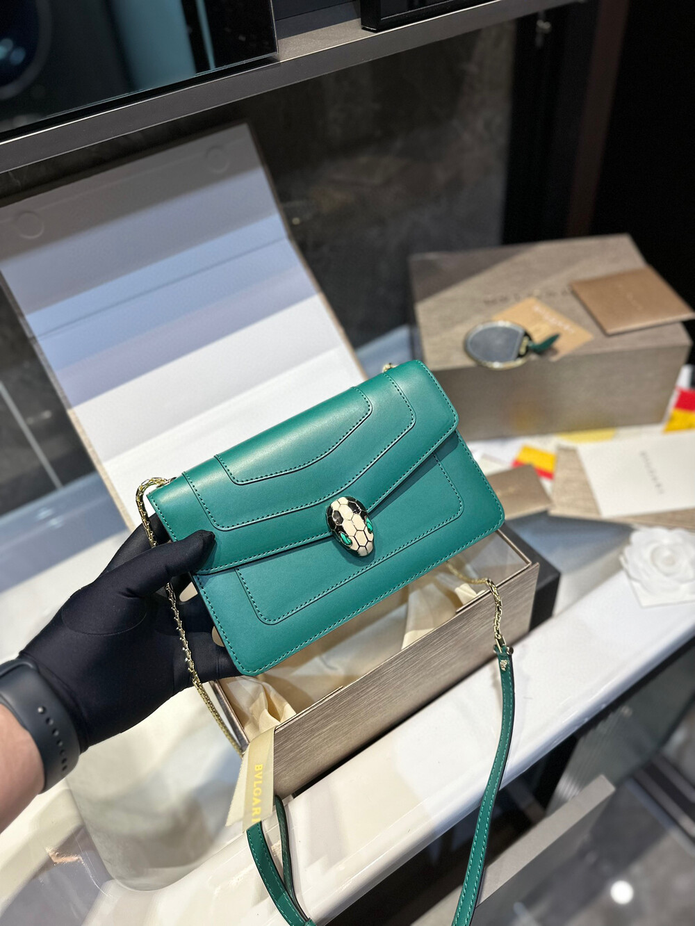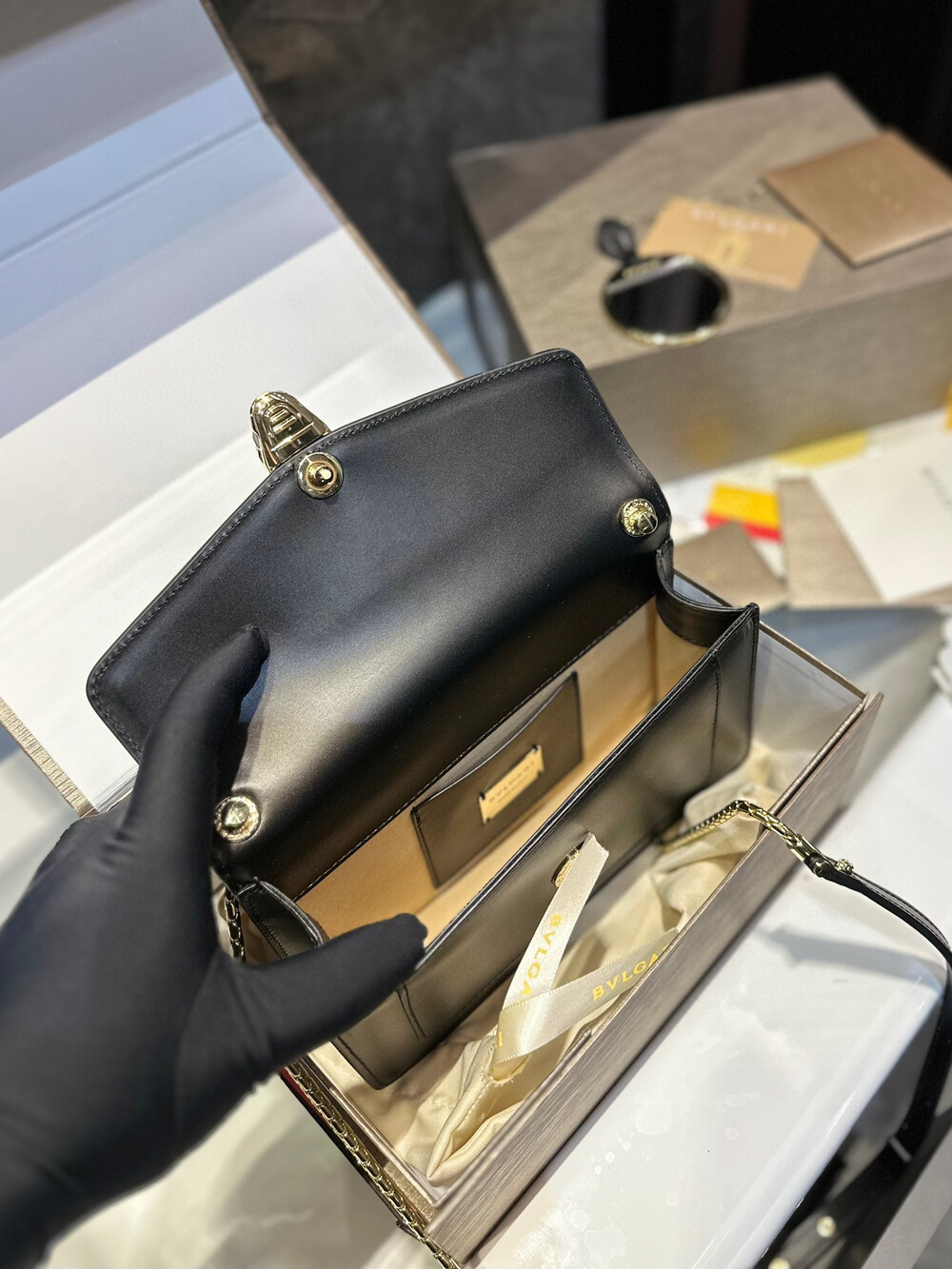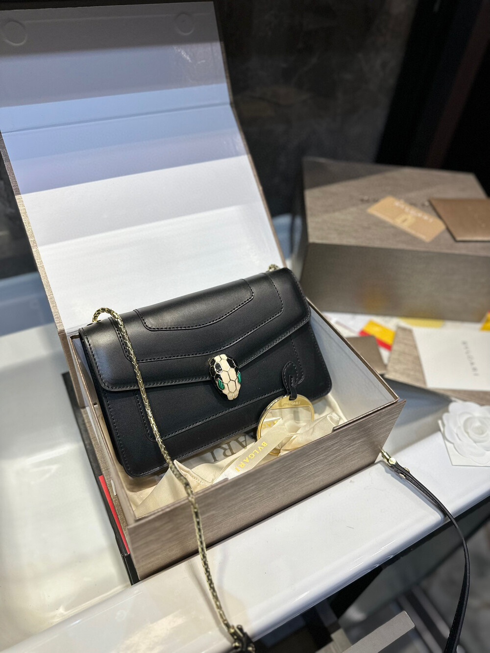[bvlgari membership gift] folded gift box an upgraded version Bvlgari,Original single leather Original single hardware (must ⚠ chain)Quality of cowhide